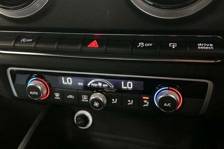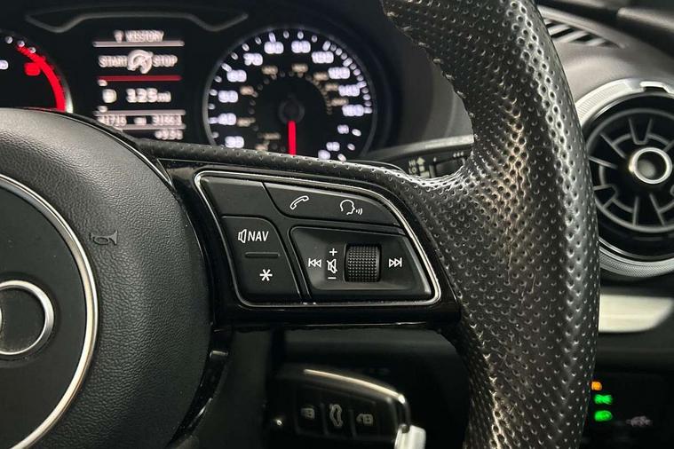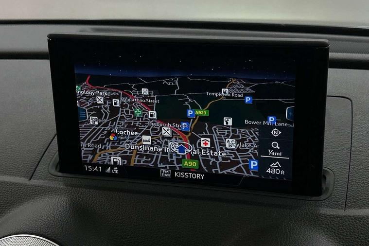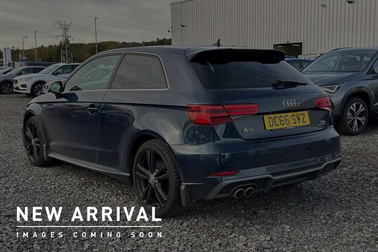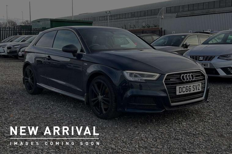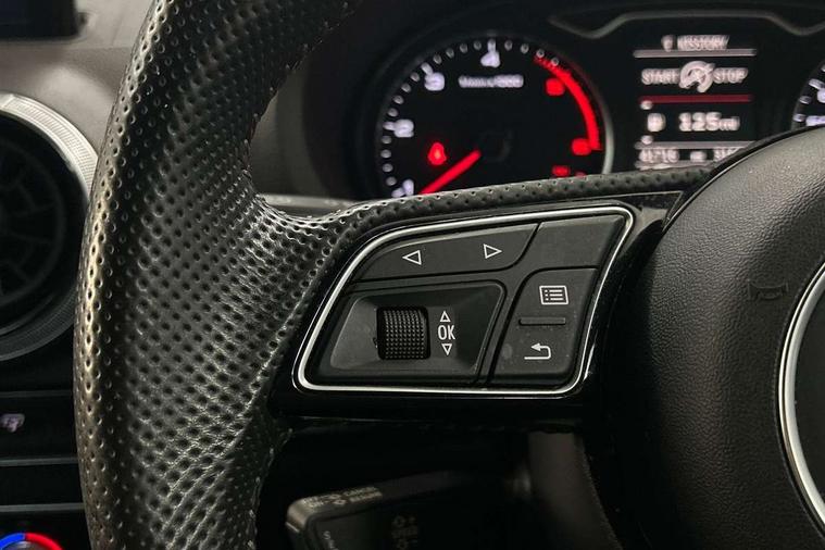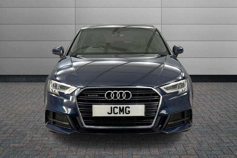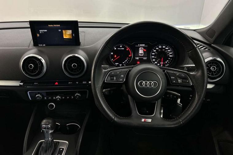 Audi connect, Audi drive select, Audi smartphone interface, Colour driver's information system display, Mobile telephone preparation - bluetooth interface, Service interval indicator, Speed limit display, Voice control system, Diesel particulate filter, 2 USB ports, Audi music interface, Auxiliary input socket, DAB Digital radio, Aluminium window trim, Body colour bumpers, Body colour door mirrors with integral indicators, Body colour roof spoiler, Chrome exhaust tailpipes, Electric front windows, Electric operated/heated door mirrors, Heated windscreen washer jets, LED daytime running lights, Matt black radiator grille, Rear wiper, S Line body styling, Sport specific side air inlet grille and diffuser insert, 3 adjustable rear headrests, 3 spoke flat bottomed multi-function leather steering wheel, 4 lashing points to secure luggage, Adjustable front armrest, Black cloth headlining, Dual zone electronic climate control, Front and rear interior lights with delay, Front passenger seat isofix location point, Front/rear floor mats, Height adjustable front seats, Height/depth adjustable steering column, Illuminated door sills, Illuminated glovebox, ISOFIX child seat preparation+airbag deactivation, Jack and tool kit, Stainless steel pedals, Steering wheel gearshift paddles, Storage compartment in centre console, Storage compartment under front seats, Storage compartments in doors, LED interior light pack - A3/RS3, Light and rain sensor pack - A3 Hatchback/Sportback, Storage and luggage pack - A3/RS3, 3 point seatbelts on all seats, ABS/EBD, Active bonnet, Active front headrests, ASR, Curtain airbags, Driver and passenger side airbags, Driver/Front Passenger airbags, Drivers knee airbag, EDL, Electromechanical parking brake, ESC - Electronic Stability Control + traction control, Front passenger airbag deactivation, Manual rear child locks, Multi-Collision braking, Seatbelt warning, Tyre pressure monitor, Warning triangle and first aid kit, Anti theft alarm, Anti-theft wheel bolts, Remote control central locking, Thatcham category 1 alarm + immobiliser, Aluminium air vent surrounds, Aluminium trim elements, Space saver spare wheel,