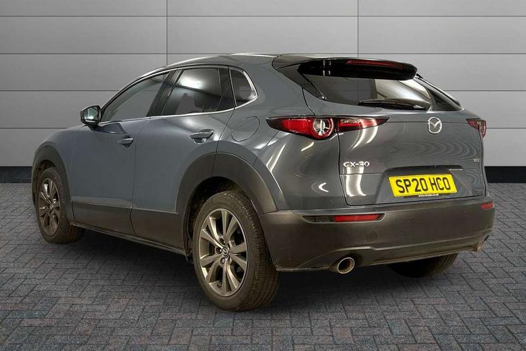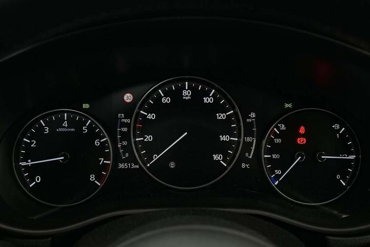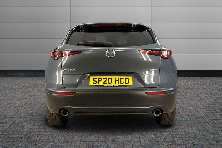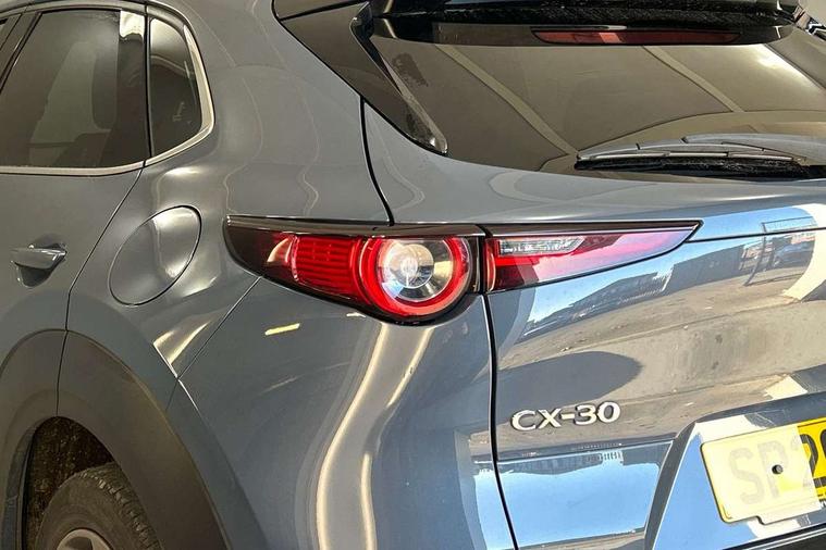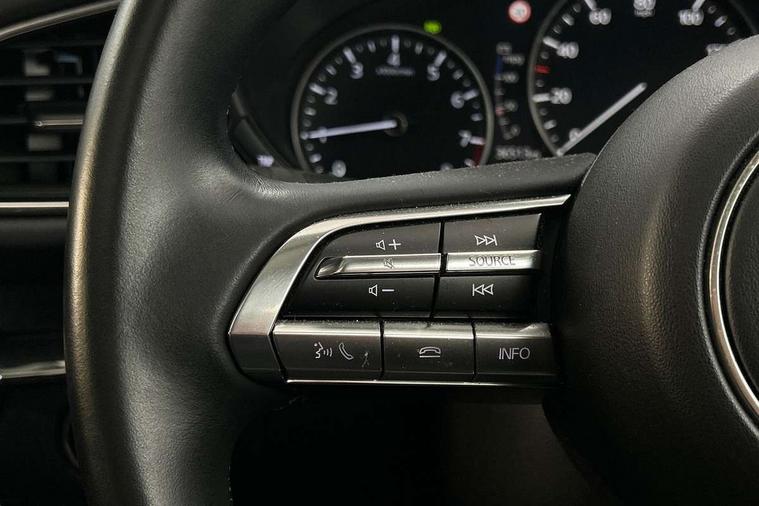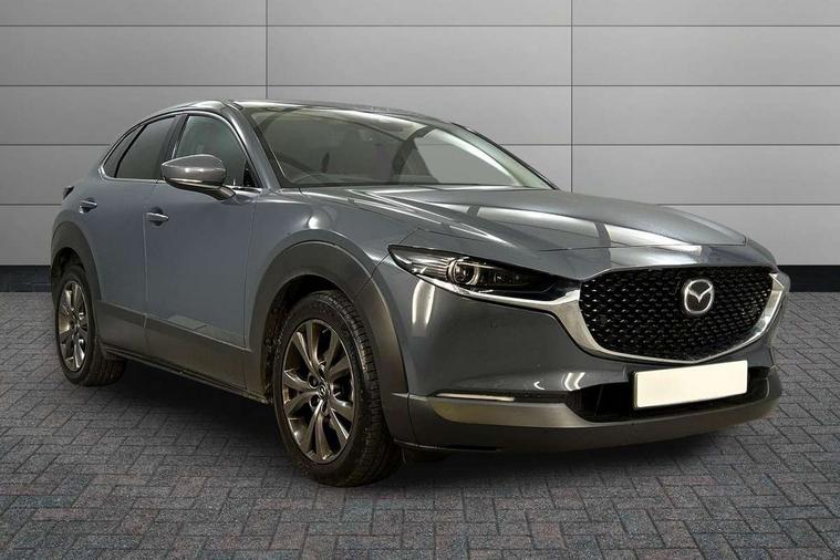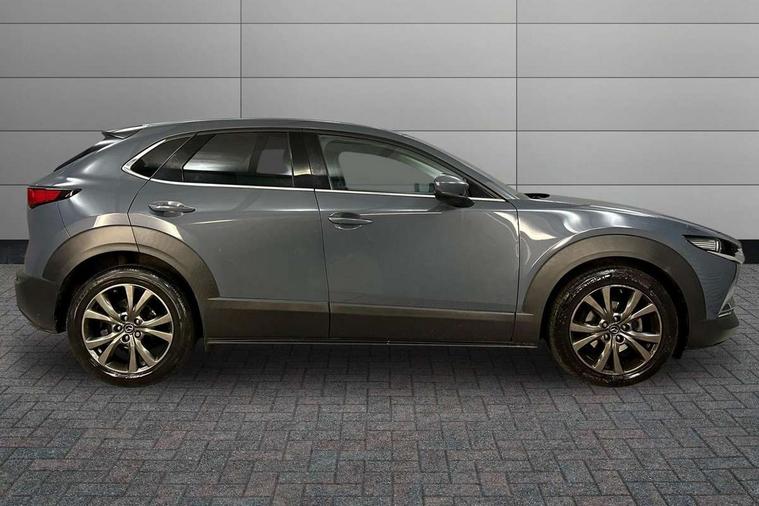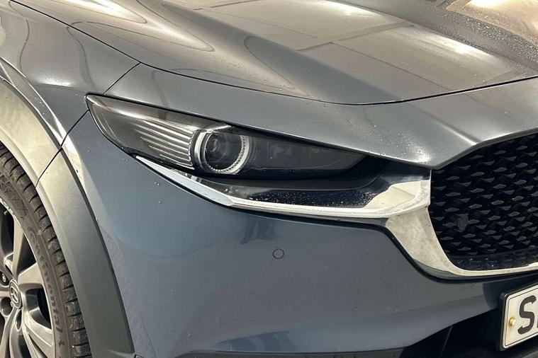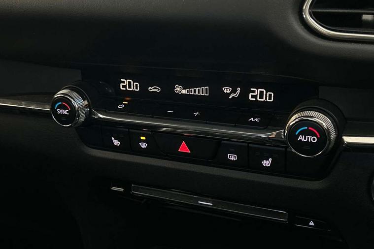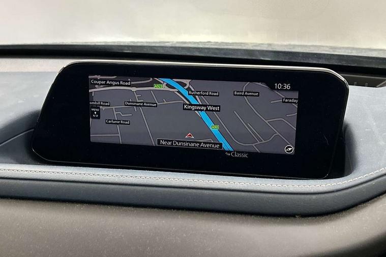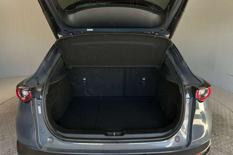 7" TFT Colour driver instrument panel display, 8.8" Colour centre touch screen display with Mazda Connect infotainment, Adaptive cruise control (Mazda radar cruise control) features stop and go, Apple car play/Android Auto, Blind spot monitoring with rear cross traffic alert, Driver attention alert system, E-call with GPS, Emergency stop signalling system, Engine start/stop button, Front and rear parking sensors, Integrated bluetooth, Integrated Mazda navigation system, Intelligent speed assist, Lane keep assist system (LAS) with Lane departure warning system (LDWS), PAS, Power lift gate, Reversing camera, Service indicator, Trip computer, Window projected colour active driving display (head up display) with traffic sign recognition, Cylinder Deactivation, i-stop, 2 USB charging ports, AM / FM / DAB radio with 8 speakers, CD player, Multimedia Commander including separate volume dial, Steering wheel mounted audio/bluetooth controls, Adaptive LED Headlights, Auto dimming driver's door mirror, B-pillar and C-pillar garnishes in gloss black finish, Body coloured, electrically adjustable, heated auto power folding door mirrors with integrated indicators, Coming/leaving home lighting function, Dual chrome exhaust, Dusk sensing headlights, Electric front/rear windows with one touch auto up/down, Frameless auto dimming interior rear view mirror, Front kodo turn signal, Gloss black front grille, Gloss black rear roof spoiler, High beam assist, LED headlamps with auto levelling, Privacy glass (rear side windows and rear screen), Rain sensing front wipers with adjustable speed and intermittent wipe, Rear fog lights, Rear wiper, Signature front LED daytime running lights, Signature LED rear combination lights with LED rear turn lights, 12V power outlet in centre console, 60/40 split fold down rear seats, Chrome horn pad ring, Cloth door panel inserts, Cloth upholstery with interior accents, Dashboard, door cards and front centre armrest in navy blue cloth, Driver and front passenger visors with covered vanity mirror and driver ticket holder, Driver seat manual slide, recline and height adjust, Driver, Front passenger and two rear grab handles with coathooks, Dual zone climate control air conditioning with rear air vents, Folding rear centre armrest with two cup holders, Front and rear (x3) head restraints, Front and rear door pockets, Front and rear LED lighting, Front armrest, Front centre storage with two cupholders, Front passengers seat manual slide, recline and height adjustment, Gear shift indicator, Glovebox illumination, Heated front seats with 3 stage setting, ISOFIX child seat anchorage points attached on outer rear seats, Leather wrapped gear shift knob, Leather wrapped steering wheel with telescopic and tilt adjustment, Luggage compartment light, Rear passenger seat map pockets, Roof mounted sunglasses holder, 3 point ELR front seat belts x2 with pretensioners, 3 point ELR rear seat belts, Anti-lock braking system (ABS), Driver/Front Passenger airbags, Drivers knee airbag, DSC - Dynamic Stability Control, Electronic parking brake with auto disengage function and auto hold function, Front and rear curtain airbags, Front passenger airbag cut-off switch, Front side airbags, Front smart city brake support, G-Vectoring control plus, Hill launch assist, Mild Hybrid system with regenerative braking, Seatbelt reminder for driver/front passenger and rear seats, Traction control system (TCS), Tyre pressure monitoring system (TPMS), Remote central locking with deadlocking and automatic door lock when driving, Smart keyless entry, Thatcham accredited alarm and immobiliser, 18" Silver metallic alloy wheels, Emergency tyre repair kit,