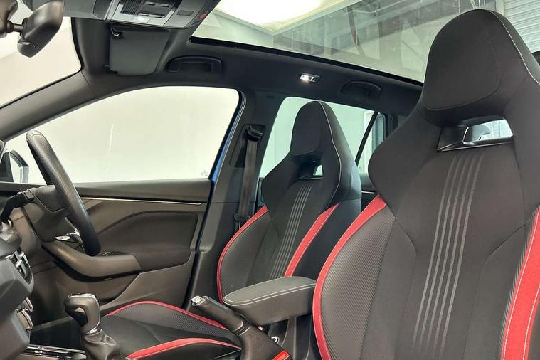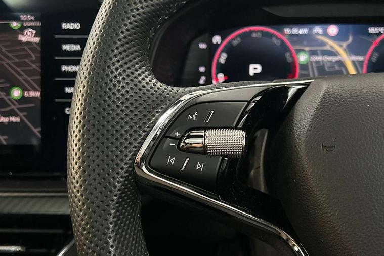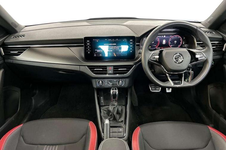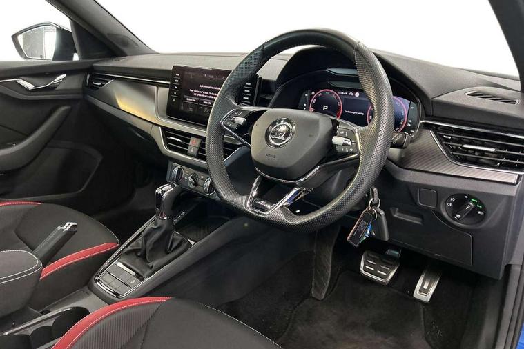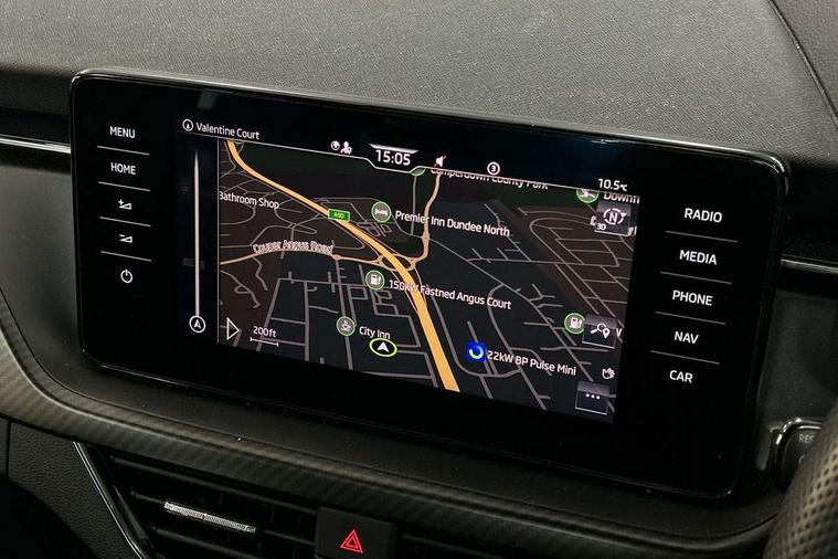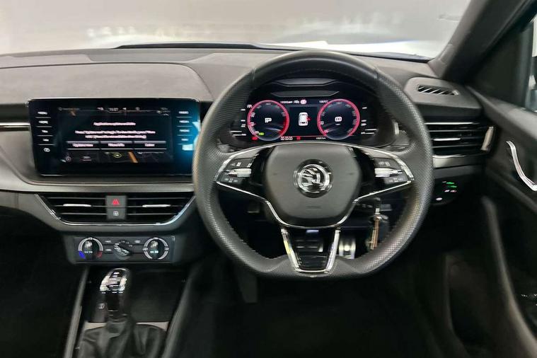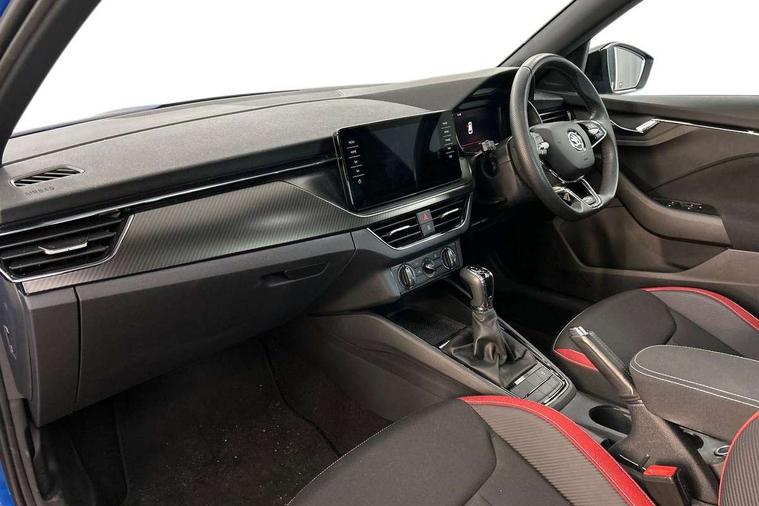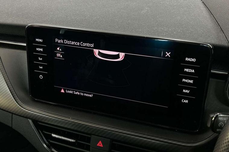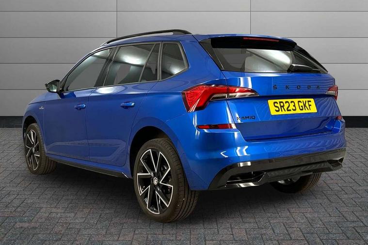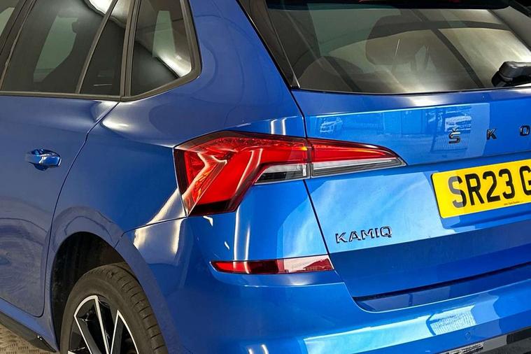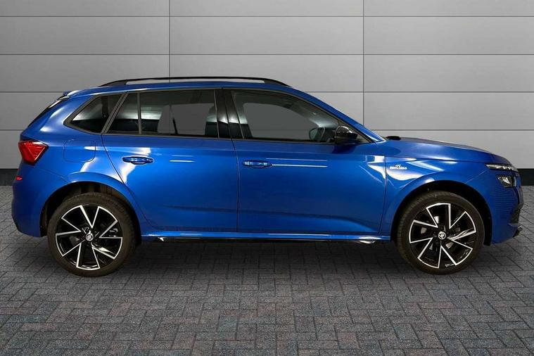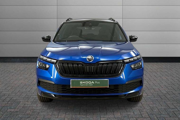 Amundsen satellite navigation with 9.2" glass colour touchscreen display, web radio, voice control and traffic sign recognition, Bluetooth system, E-call, Front assist system, Gesture control, PAS, Service indicator, Speed limiter, Wireless Smartlink for Apple CarPlay (wired for Android Auto), 8 Speakers, Auxiliary input socket, DAB Digital radio, Black door mirrors, Black radiator grille, Black rear diffuser, Body colour bumpers, Body colour door handles, Body colour roof spoiler, Boot lettering in black, Chrome grille surround, Dimming rear view mirror with black surround, Electrically adjustable and heated door mirrors, Fixed panoramic sunroof with black roof rails, Front and rear electric windows, Front sport bumper, Full LED headlights with adaptive front light system, cornering function, fog lights and dynamic indicators, Headlight range control, Heated rear window, High functionality rear led lights with dynamic indicators, KAMIQ Door sills, LED daytime running lights, LED third brake light, Light sensors, Monte carlo plaque, Privacy glass, Rain sensor, Rear fog lights, Rear side wing doors, Rear wiper, 12V Accessory socket in centre console, 3 seat bench in 2nd row, Aluminium pedals, Black ceiling for black/beige interior, Black roof lining, Chrome inner door handles, Cloth upholstery, Front head restraints, Glove compartment with illumination, Ice scraper, Isofix child seat fittings on outer rear seats, ISOFIX on front passenger seat, Leather gear lever, Manual lumbar support for front seats, Rake/reach adjustable steering wheel, Reading lights, Single front passenger seat, Sports seats, Sun visors with illumination on front passenger, Textile floor mats, Third rear headrest, Top tether for front passenger seat, Umbrella in driver's door, 3x3 point rear seatbelts, Airbags - driver and front passenger, ESP, Front passenger airbag deactivation switch, Front side airbags with curtain airbags, Hill hold control, Manual parking brake, Manual rear child locks, One tone horn, Rear disc brakes, Seatbelt reminder for driver an co-driver, Traction control, Tyre pressure monitor, Anti-theft alarm system with interior monitoring, backup horn, towing protection and remote central locking with SAFE system, Anti-theft wheel bolts, Electronic engine immobilizer, Chrome air vent surrounds, 18" Vega alloy wheels in black,