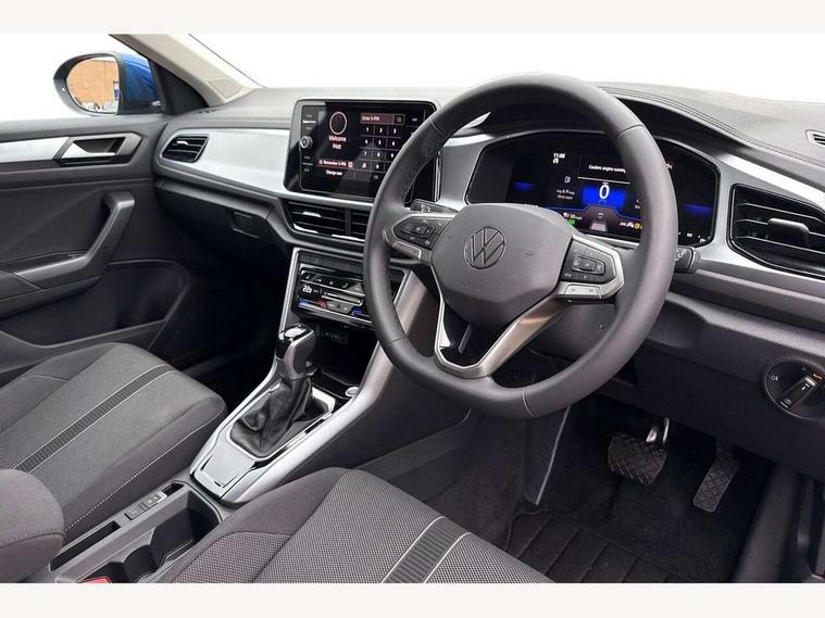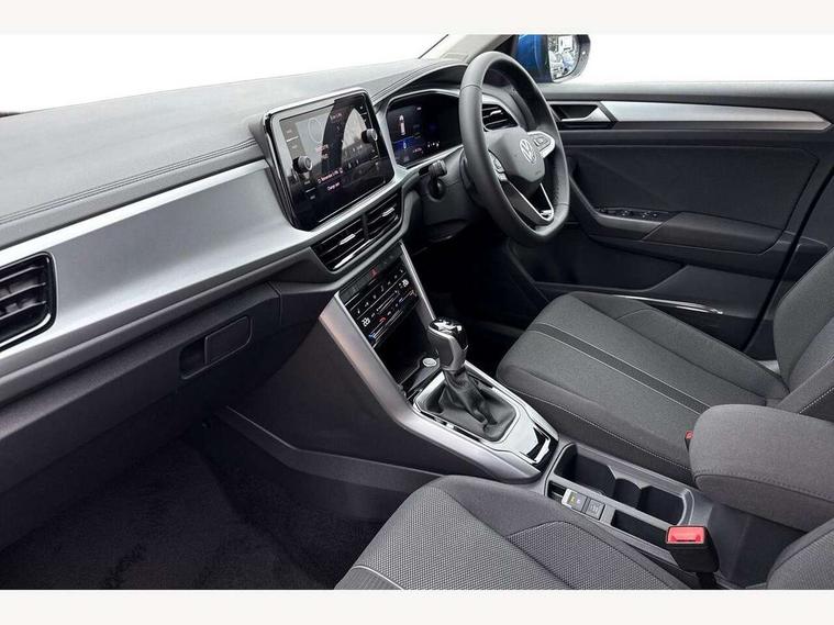 Advanced driver attention and drowsiness monitor, Dynamic road sign display, Emergency call service, Lane keeping system Lane Assist, Mobile phone interface, Modified key software - reduce switch off time for key status change to Long no motion, Online services, Park assist including front and rear parking sensors, Power assisted speed sensitive steering, Rear view camera, Service interval indicator, Tailgate/trunk lid release from outside, Think blue trainer driver tips and journey analysis, Warning sound and light for front seatbelts unfastened, Wireless app connect, Battery regeneration during braking, Front shock absorption, Rear shock absorption chassis with increased ride height, Start/stop function with battery regeneration, DAB Digital radio, Diversity antenna for FM reception, Music playback - MP3, WMA and AAC files, Premium USB cable in choice of either Apple or Android smartphone compatibility, SD card slot, Simultaneous pairing of 2 compatible mobile devices, Title and cover art display, We Connect and We Connect Plus functionality, Auto dimming interior rear view mirror, Automatic hazard lights activation under emergency braking, Automatic headlight control with LED separate daytime running lights with coming/leaving home function, Black roof rails, Body coloured bumpers and radiator grille with chrome trim and front fog lamps with chrome bezel, Body coloured exterior mirror housings and door handles, Electrically adjustable and heated door mirrors, Extended roof spoiler, Exterior mirrors aspherical on driver side, convex on front passenger side, External USB type C socket and charging sockets, Front windscreen wiper with intermittent wipe and 4 position delay, Heated rear window, LED 3rd brake light, LED rear combination lamps, LED rear number plate lights, Power windows with comfort operation and circuit breaker, Privacy glass for rear side windows and rear window, Rain sensor, Rear exhaust tailpipe, Rear fog light on one side and reversing lights on both sides, Rear side wing doors, Rear wash/wipe with intermittent wipe setting, Remote electrically foldable door mirrors, puddle lights and reverse activated passenger's door mirror, 12V power socket in centre console, 3 rear head restraints, 3 seat bench in 2nd row, 4 load lashing points in luggage compartment, Air care climatronic air conditoning system with active combination filter and 2-zone temperature control, Black stitching for floor mats, Ceramique roof liner, Cloth upholstery, Door and side trim panel in cloth, Drawer under drivers seat, Driver/front passenger seat height adjustment, Front centre armrest, Front comfort sports seats, Front cupholders x 2, Front reading light, Front seat back storage pockets, Glove compartment door with light, Instrument lighting, white adjustable panel illumination, Interior ambient lighting and surround lighting, Interior light delay, Isofix child seat preparation, Leather gearshift handle, Load-through provision with cup holder when folded down ('Unsplit rear seat bench, split folding backrest, with centre armrest), Luggage compartment lighting, Lumbar support for driver's and front passengers seat, Non-folding front passenger seat backrest, Single front passenger seat, Storage compartment in left and right luggage area, Storage compartment in rear doors, Storage compartments in driver and front passenger doors, Sunvisors with illuminated vanity mirrors, Variable boot floor, height adjustable and removable, Driver assistance pack without proactive passenger protection - T-Roc Life/Match, 3 point height adj front seatbelts + pretensioners, 3 point seatbelts in outer rear with ECE label, ABS, Child locks on rear doors, City emergency braking and pedestrian monitoring, Driver and front passenger airbag with front passenger airbag deactivation, Driver and front passenger safety-optimised head restraints, Drivers seatbelt reminder, Electronic parking brake, Electronic Stability Control (ESC) inc EDL (Electronic Differential Lock) and ASR (Traction Control), Front and rear passengers curtain airbag system including front side airbags, Front disc brakes, Hill start assist, Predictive pedestrian protection, Rear disc brakes, Two tone horn, Tyre pressure loss indicator, Volkswagen roadside assistance, Alarm with interior protection, Keyless locking and starting system keyless access with safelock, Pewter matt decorative inserts for intrument panel, centre console and door panels at the front, Trims for alloy wheels,