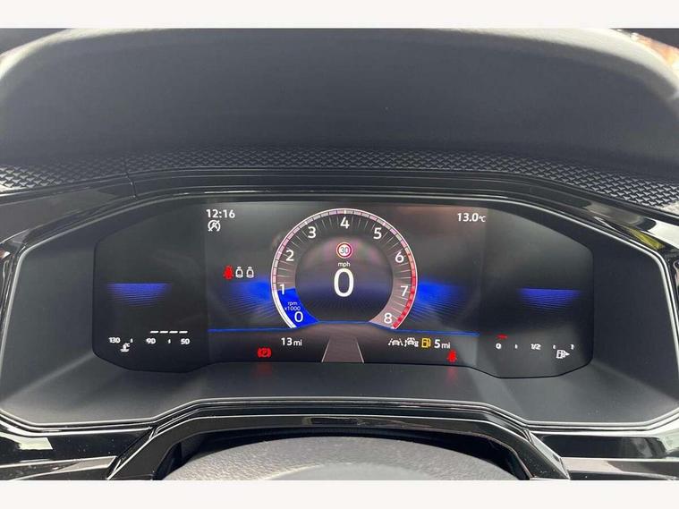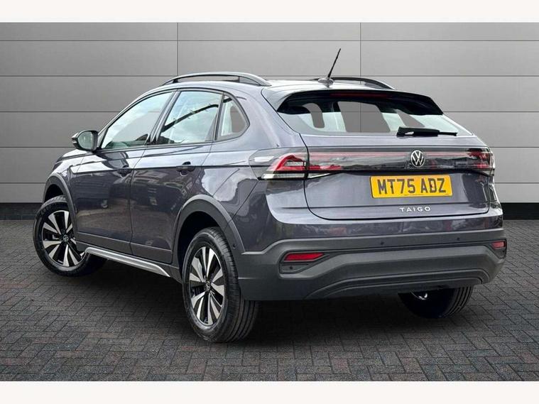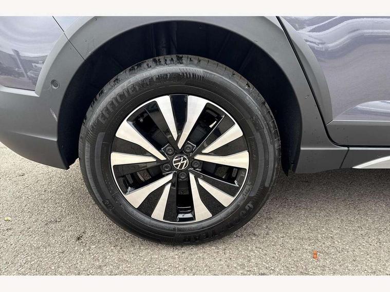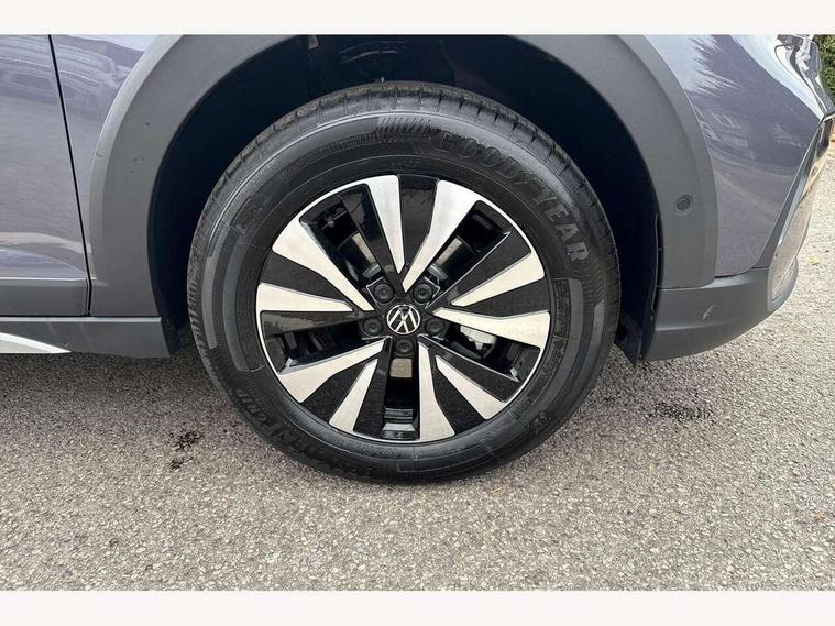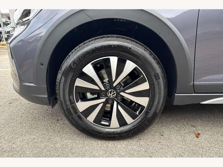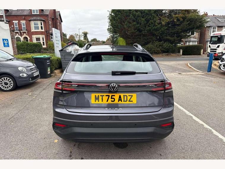 8" Digital cockpit basic display, Advanced driver attention and drowsiness monitor, Dynamic road sign display, e-Call (emergency call), Power Steering, Predictive adaptive cruise control, Travel assist including emergency assist, Washer fluid level indicator, Wireless Charging including Bluetooth, Start-stop system with battery regeneration (recuperation - energy recovery during braking), Digital radio reception (DAB+), WeConnect plus, Ambient lighting with logo projection, Aspherical driver's exterior mirror, Auto headlights, Body coloured bumpers, Body coloured exterior mirror housings and door handles, Electric windows, External USB type C socket and charging sockets, Heat insulating glass windscreen, LED rear combination lamp, LED third brake light, Left convex exterior mirror, Power folding adjustable/heated exterior mirrors and front passenger exterior mirror lowering function, Rear fog light on one side, reversing light on both sides, Rear side wing doors, Rear wash/wipe with intermittent wipe setting, 'Slash/ Austin' Cloth upholstery, 12V socket in centre console, 2 front reading lights, 3 rear head restraints, 3 seat bench in 2nd row, Black carpets, Child seat anchor for child seat system i-Size, 2x top tether and child seat anchor in front on front passenger side, Door and side trim panels in titan black, Driver and front passenger seat height adjustment, Front centre armrest, Handbrake lever handle in leather, Height and reach adjustable steering wheel, Leather trimmed gear knob, Leather wrapped multifunction steering wheel, Luggage compartment floor, Luggage compartment light, Lumbar support for driver's and front passengers seat, Seat covers in titanium black, Single front passenger seat, Split folding backrest with centre armrest and unsplit rear seat bench, Storage compartment under front seats, Sun visors with illuminated vanity mirrors, Chrome Package - Taigo, Drivers assistance pack - Taigo, Light and Sight pack including High beam assist - Taigo, 2 x 3-point seatbelts/outer rear seats with ECE label, 3-point seat belts in front with pretensioner and height adjustment, 3-point seatbelt for centre rear seat, Adaptive driver and front passenger airbags with passenger airbag deactivation function, Driver and front passenger airbags with front passenger airbag de-activation, front side and curtain airbags, Driver and front passenger safety-optimised head restraints, Electronic stability control, Extended and predictive pedestrian/ cyclist protection, Front and rear disc brakes, Front curtain and side airbags with center airbag, Hill start assist, Manual rear child locks, Single tone horn, Tyre pressure loss indicator, Anti-theft alarm system with interior monitoring, backup horn, and towing protection, Lava stone black gloss/matt decorative inserts in dash and front door panels, Low rolling resistance tyres,