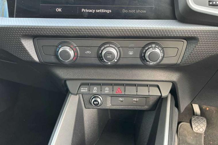 10.25" Digital instrument cluster display classis style instrument dials + speed, odometer, time, outside temperature, telephone menu + fuel level warning, Audi connect safety emergency and service including E-call, Audi drive select - power steering assistance + engine, Audi smartphone interface with connect compatible smartphone via USB directly MMI display + Nav, music, third party apps controlled via MMI controller, Automatic start/stop system, Bluetooth interface, Cruise control, Driver's information system, Electromechanical power steering, Emergency services call system, Lane departure warning system, Service interval indicator, Speed limiter, Voice control system, Washer fluid level indicator, Dynamic suspension, 1 x SDXC card reader, 2 x USB type C connection points, DAB Digital radio, MMI radio plus with 8.8" colour MMI display screen and MMI touch, Auto dimming rear view mirror, Body coloured bumpers, Body coloured door mirrors, Electric front and rear windows, Electrically adjustable, heated, folding door mirrors with integrated LED side indicator, Front side air inlets in grained matt black and C frame in titanium black, Heat insulating glass windscreen and side windows, Heated rear windscreen, High level LED brake light, LED headlights with LED rear lights + dynamic rear indicators + headlight adjustment and high beam, turning light + LED daytime running lights, Radiator grille and rear diffuser in matt titanium black, Radiator protective grille frame in matt aluminium silver, Rain and light sensors, Rear fog lights, Rear side wing doors, Rear wing door, Rear wiper, Side front spoiler lips in grained matt black, 12V socket in centre console with two cup holders, 3 rear seats with headrests, 3 seat bench in 2nd row, 40:60 Split folding rear seat or folded fully, Door sill trims with aluminium inlay, Driver and passenger seat with manual height adjust with forward and backwards adjustment, Front head restraints, Front passenger seat, Front/rear floor mats, Height and reach adjustable steering wheel, ISOFIX child seat mounting for front passenger and outer rear seats including top tether attachment point of outer rear seats, Leather gear knob with aluminium trim, Leatherette handbrake grip, Luggage compartment light with front and rear reading lights, Manually adjustable lumbar support in front seats, Novum cloth upholstery with front sport seats, Titanium grey cloth headlining, Luggage compartment pack - A1, 3x3 point rear seatbelts, Audi pre-sense front with pedestrain and cyclist recognition, Brake assist function, Driver and front passenger airbag with front side and head airbags, Electronic Stability Control including ABS, EBD, ASR and EDL, Front passenger airbag deactivation switch, Hill hold assist, Manual rear child locks, Seatbelt height adjustment for front seats, Seatbelt monitoring, Tyre pressure warning light, Warning triangle and first aid kit, Anti theft alarm, Anti theft wheel bolts and loose wheel warning, Immobiliser, Remote central locking with 2 foldaway keys, Aluminium trim for control switches, air vents and digital instrument cluster, Silver grey accent areas including air vents, door handle recesses and centre console in diamond paint finish, Slate grey inlays polygon structure in fine paint finish,