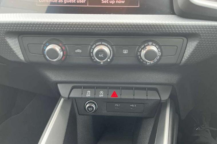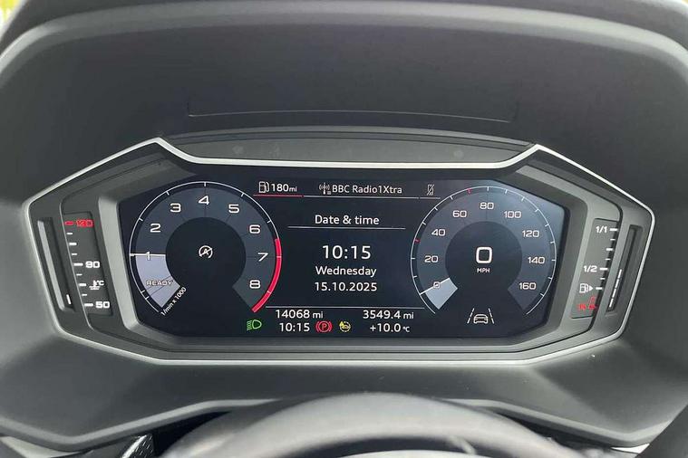 10.25" Digital instrument cluster display classis style instrument dials + speed, odometer, time, outside temperature, telephone menu + fuel level warning, Audi smartphone interface with connect compatible smartphone via USB directly MMI display + Nav, music, third party apps controlled via MMI controller, Automatic start/stop system, Bluetooth interface, Cruise control, Driver's information system, Electromechanical power steering, Emergency e-call, Lane departure warning system, Rear parking sensor, Service interval indicator, Speed limiter, Voice control system, Washer fluid level indicator, Dynamic suspension, 2 x USB type C connection points, 6 passive loudspeakers, DAB Digital radio, MMI radio plus with 10.1" colour MMI display screen and MMI touch, Auto dimming rear view mirror, Body coloured bumpers, Body coloured door mirrors, Electric front and rear windows, Electrically adjustable, heated, folding door mirrors with integrated LED side indicator, Front side air inlets in grained matt black and C frame in anthracite black, Heat insulating glass windscreen and side windows, Heated rear windscreen, High level LED brake light, LED headlights with LED rear lights + dynamic rear indicators + headlight adjustment and high beam, turning light + LED daytime running lights, Radiator grille and rear diffuser in matt anthracite black, Radiator protective grille frame in matt aluminium silver, Rain and light sensors, Rear fog lights, Rear side wing doors, Rear wiper, Side front spoiler lips in grained matt black, 12V socket in centre console with two cup holders, 3 rear seats with headrests, 3 seat bench in 2nd row, 3 spoke leather multifunction plus steering wheel, 40:60 Split folding rear seat or folded fully, Black front and rear floor mats, Door sill trims with aluminium inlay, Driver and passenger seat with manual height adjust with forward and backwards adjustment, Front head restraints, Front passenger seat, Grey cloth headlining, Height and reach adjustable steering wheel, ISOFIX child seat mounting for front passenger and outer rear seats including top tether attachment point of outer rear seats, Leather gear knob with aluminium trim, Leather handbrake grip, Luggage compartment light with front and rear reading lights, Manual air conditioning, Manually adjustable lumbar support in front seats, Novum cloth upholstery with front sport seats, Luggage compartment pack - A1, 3x3 point rear seatbelts, Audi pre-sense front with pedestrain and cyclist recognition, Brake assist function, Driver and front passenger airbag with front side and head airbags, Electronic Stability Control including ABS, EBD, ASR and EDL, Front passenger airbag deactivation switch, Hill hold assist, Manual rear child locks, Seatbelt height adjustment for front seats, Seatbelt monitoring, Tyre pressure warning light, Warning triangle and first aid kit, Anti theft alarm, Anti theft wheel bolts and loose wheel warning, Immobiliser, Remote central locking with 2 foldaway keys, Aluminium trim for control switches, air vents and digital instrument cluster, Black dashboard, Silver grey accent areas including air vents, door handle recesses and centre console in diamond paint finish, Slate grey inlays polygon structure in fine paint finish,