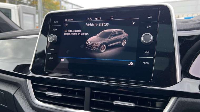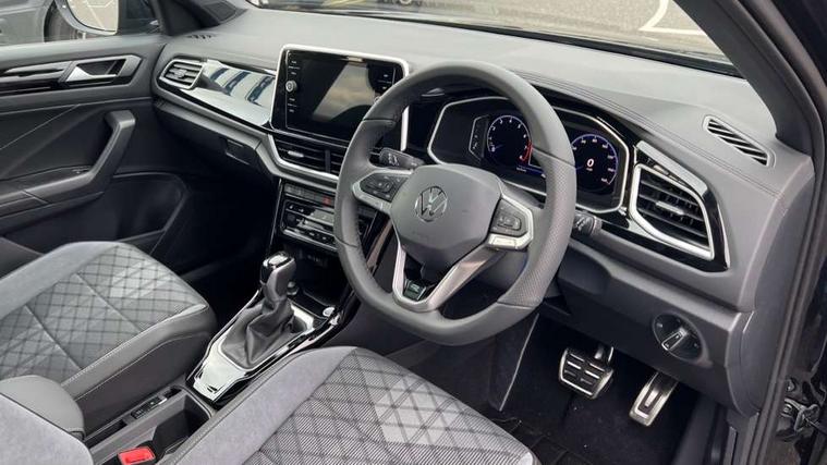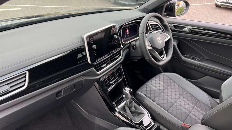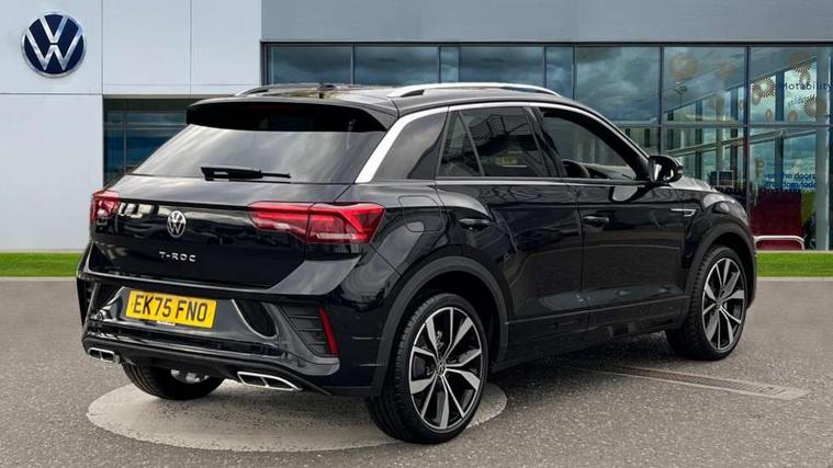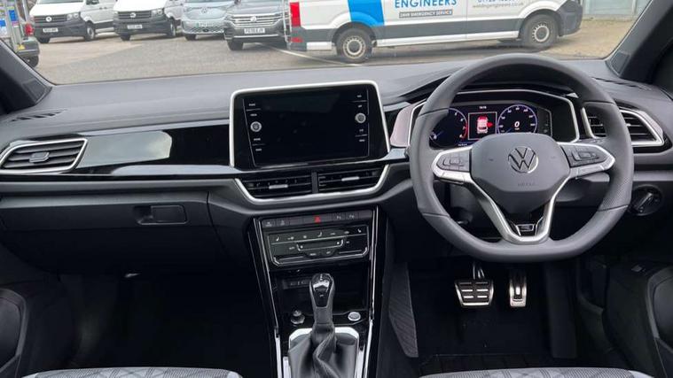 10.25" Digital cockpit pro, Advanced driver attention and drowsiness monitor, Emergency call service, Lane keeping system Lane Assist, Mobile phone interface, Modified key software - reduce switch off time for key status change to Long no motion, Online services, Park assist including front and rear parking sensors, Service interval indicator, Tailgate/trunk lid release from outside, Think blue trainer driver tips and journey analysis, Warning sound and light for front seatbelts unfastened, Wireless app connect, Battery regeneration during braking, Start/stop function with battery regeneration, DAB Digital radio, Diversity antenna for FM reception, Front and rear 6 speakers, Music playback - MP3, WMA and AAC files, Premium USB cable in choice of either Apple or Android smartphone compatibility, SD card slot, Simultaneous pairing of 2 compatible mobile devices, Title and cover art display, We Connect and We Connect Plus functionality, Auto dimming interior rear view mirror, Automatic hazard lights activation under emergency braking, Automatic headlight control with LED separate daytime running lights with coming/leaving home function, Body coloured exterior mirror housings and door handles, Electrically adjustable and heated door mirrors, Extended roof spoiler, Exterior mirrors aspherical on driver side, convex on front passenger side, External USB type C socket and charging sockets, Front windscreen wiper with intermittent wipe and 4 position delay, Heated rear window, LED 3rd brake light, LED rear combination lamps, LED rear number plate lights, Power windows with comfort operation and circuit breaker, Privacy glass for rear side windows and rear window, R-Line design body coloured bumpers, Rain sensor, Rear exhaust tailpipe, Rear fog light on one side and reversing lights on both sides, Rear side wing doors, Rear wash/wipe with intermittent wipe setting, Remote electrically foldable door mirrors, puddle lights and reverse activated passenger's door mirror, 12V power socket in centre console, 3 rear head restraints, 3 seat bench in 2nd row, 4 load lashing points in luggage compartment, Air care climatronic air conditoning system with active combination filter and 2-zone temperature control, Black roof lining, Chrome plated decorative trims, Chrome plated radiator grille inserts, air vent surrounds and light switch surrounds, Door and side trim panel with leatherette insert, Front + rear carpet mats, Front centre armrest, Front cupholders x 2, Front footwell illumination, Front reading light, Front scuff plates with R Line logo, Front seat back storage pockets, Glove compartment door with light, Instrument lighting, white adjustable panel illumination, Interior ambient lighting and surround lighting, Interior light delay, Isofix child seat preparation, Leather gearshift handle, Load-through provision with cup holder when folded down ('Unsplit rear seat bench, split folding backrest, with centre armrest), Luggage compartment lighting, Single front passenger seat, Stainless steel pedals, Storage compartment in left and right luggage area, Storage compartment in rear doors, Storage compartments in driver and front passenger doors, Sunvisors with illuminated vanity mirrors, Variable boot floor, height adjustable and removable, Driver assistance pack without proactive passenger protection - T-Roc, 3 point height adj front seatbelts + pretensioners, 3 point seatbelts in outer rear with ECE label, ABS, Child locks on rear doors, City emergency braking and pedestrian monitoring, Driver and front passenger airbag with front passenger airbag deactivation, Driver and front passenger safety-optimised head restraints, Drivers seatbelt reminder, Electronic parking brake, Electronic Stability Control (ESC) inc EDL (Electronic Differential Lock) and ASR (Traction Control), Front and rear passengers curtain airbag system including front side airbags, Hill start assist, Predictive pedestrian protection, Rear disc brakes, Two tone horn, Tyre pressure loss indicator, Volkswagen roadside assistance, Piano black decorative inserts in dashboard and front door trim panels, Trims for alloy wheels,