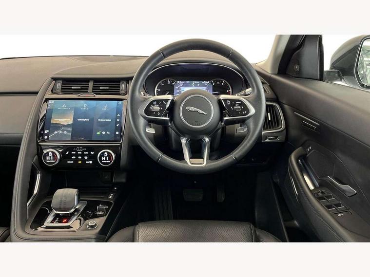 11.4" touchscreen with central ICP, Android Auto, Apple car play, Driver condition monitor, Eco driving style assistant, Electric power assisted steering, Emergency services call system, Front and rear parking aid, InControl remote, Jaguar drive control with adaptive surface response, Jaguar Toggle sport shift selector, Lane keep assist, Outside temperature gauge, Pivi pro connected infotainment system with smart settings and navigation pro, Push button start, Speed proportional steering, Traffic sign recognition with adaptive speed limiter, Trip computer, Voice control system, Diesel particulate filter, Efficient Driveline, Passive suspension, AM/FM DVD MP3 radio, Bluetooth connectivity including audio streaming, DAB digital audio broadcast, Dynamic volume control, 3 flash lane change indicators, 3rd brake light, Approach Illumination, Auto high beam assist, Automatic headlights, Body colour bumpers, Centre high-mounted stop light, Electric front/rear windows with one touch/auto up/down, Embossed leaper for grained and windsor leather, Front grille with foil tips, Heated washer jets, Heated windscreen, Jaguar script and leaper, LED tail lights, Rain sensor windscreen wipers, Rear fog lights, Rear side wing doors, Rear wash wiper, Twin exhaust tailpipe, 3 rear head restraints, 3 seat bench in 2nd row, 40:20:40 rear seat fold, Carpet mats, Centre console with armrest, Elasticated loadspace side-strap, Enhanced ambient lighting, Grained Leather upholstery, Hooks loadspace, ISOFIX on outer rear seats, Loadspace cover, Loadspace light, Loadspace storage net, Luggage tie-downs in loadspace, Multifunction steering wheel, Overhead lighting console, Passive front head restraints, Power sockets, Rear air vents, Rear bench seats, Satin chrome gearshift paddles, Single front passenger seat, Sunvisors with illuminated vanity mirrors, Twin front cupholders, Two zone climate control, 3x3 point rear seatbelts, ABS, All surface progress control (ASPC), Child locks on rear doors, Customer configurable autolock, DSC - Dynamic Stability Control, Electronic brake force distribution, Electronic parking brake, Emergency brake assist, Emergency braking, Front airbags with passenger seat occupant detector, Front and rear curtain airbags, Front and rear seatbelt reminder, Front side airbags, Hill start assist, Low friction launch, Power child locks, Torque vectoring brake, Tyre pressure monitoring system, Intrusion sensor and alarm, Locking wheel nuts,