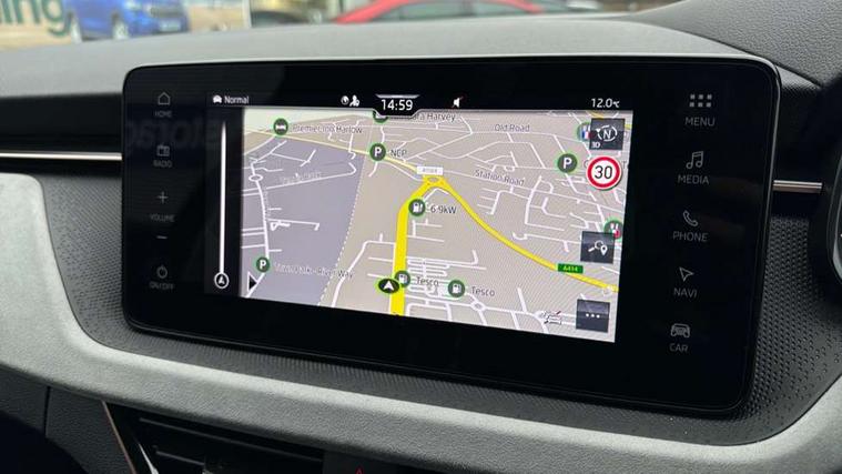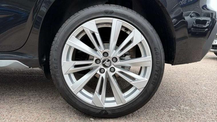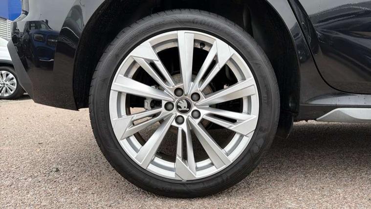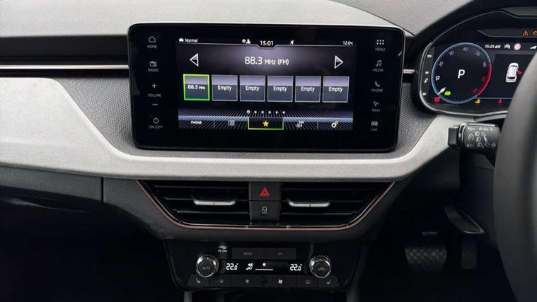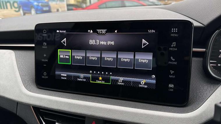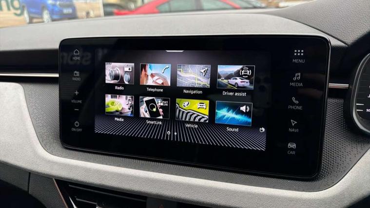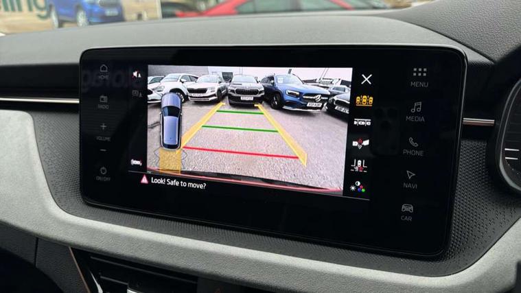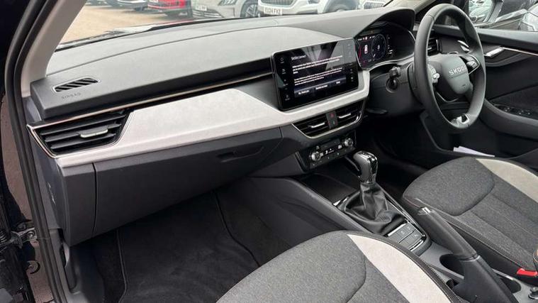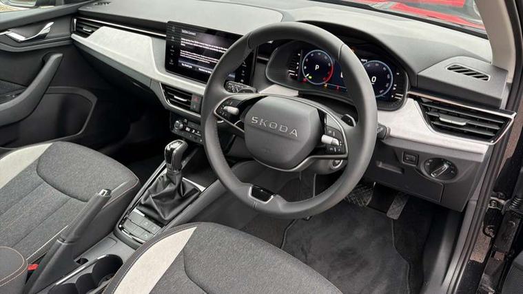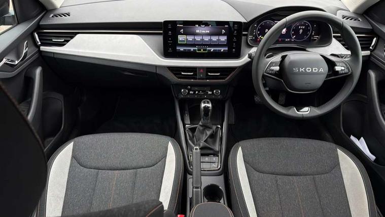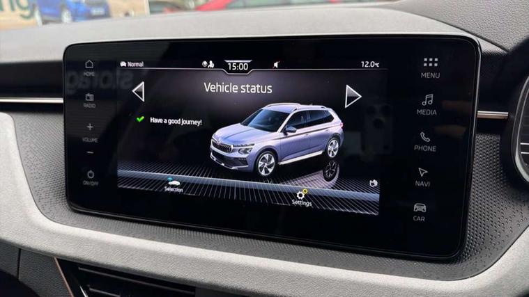 Advanced driver attention and drowsiness monitor, Bluetooth system, E-call, Front assist system, PAS, Rear parking sensors, Rear view camera, Service indicator, Speed limiter, Traffic sign recognition, Virtual cockpit with 10.25" display, Voice control system, Wireless smartlink, 4 USB C ports, 8 Speakers, 9.2" Skoda navigation display, DAB Digital radio, Auto dimming rear view mirror, Automatic headlight control with coming home and leaving home feature, Body colour bumpers, Body colour door mirrors and handles, Chrome grille surround, Chrome roof rails with chrome window surround, Front and rear electric windows, Heated rear window, LED daytime running lights, LED high beam, LED low beam, LED third brake light, Light sensors, Privacy glass, Rear side wing doors, Rear wiper, Ticket holder inside windscreen, 12V socket in luggage compartment, 3 seat bench in 2nd row, Accent black door inserts, Ambient lighting in white/red, Cargo elements, Chrome inner door handles, Copper hotstamping, Driver and passenger sun visors with vanity mirror, Dual zone climate control, Front and rear roof lights, Front centre armrest, Front head restraints, Glove compartment with illumination, Height adjustable driver seat, Height adjustable front passenger seat, Ice scraper, Inner circulation control with pollen filter, ISOFIX on front passenger seat, Isofix preparation for back seats, Leather gearknob and handbrake lever, Lodge cloth upholstery, Manual lumbar support for front seats, Net package and top tether hooks in boot space, Net under rear shelf, Overhead glasses storage compartment, Pocket on the back of both front seats include mobile phone pockets, Rake/reach adjustable steering wheel, Reading lights, Rear centre armrests, Single front passenger seat, Suedia grey decor inserts, Textile floor mats, Third rear headrest, Top tether for front passenger seat, Umbrella in driver's door, Convenience pack - Kamiq, 3x3 point rear seatbelts, Airbags - driver and front passenger, Disc brakes, ESP, Extended and predictive pedestrian/cyclist protection, Front passenger airbag deactivation switch, Front side airbags with curtain airbags, Hill hold control, Manual leather parking brake, Manual rear child locks, One tone horn, Seatbelt reminder for driver an co-driver, Traction control, Tyre pressure monitor, Anti-theft alarm system with interior monitoring, backup horn, towing protection and remote central locking with SAFE system, Anti-theft wheel bolts, Electronic engine immobilizer,