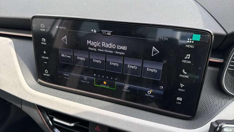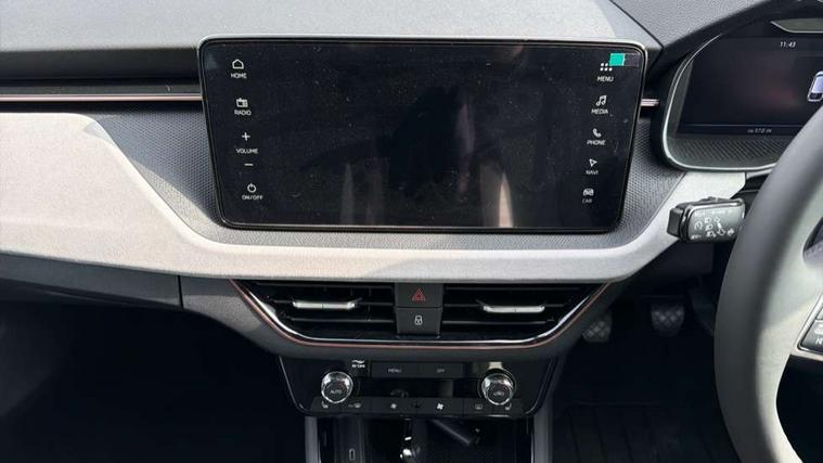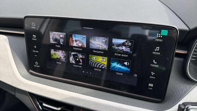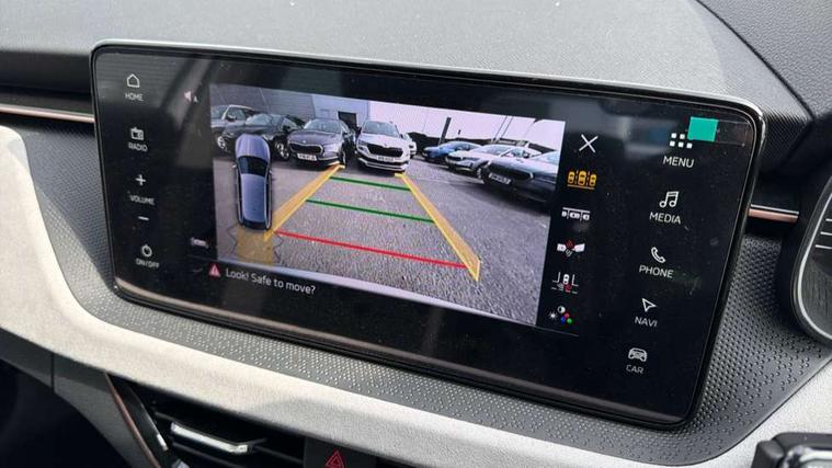 Advanced driver attention and drowsiness monitor, Bluetooth, e-Call (emergency call), Front assist system, PAS, Rear parking sensors, Rear view camera, Speed limiter, Tailgate, Traffic sign recognition, Virtual Cockpit - 10.25" digital display, Voice control system, Wireless smartlink, 4 USB C ports, 8 Speakers, 9.2" Skoda navigation display, DAB radio, Auto dimming rear view mirror, Automatic headlight control with manual coming and leaving home feature, Automatic intermittent wipers, Body colour bumpers, Body colour door mirrors and handles, Chrome moulding around grille, Chrome window frames, Front and rear electric windows, Heated rear window, LED 3rd brake light, LED daytime running lights, LED high beam, LED low beam, Light sensors, Privacy glass, Rear LED fog light, Rear side wing doors, Rear wiper, Tinted windows, Unique dark chrome design logo on alloy wheels, 12V socket in luggage compartment, 3 seat bench in 2nd row, Ambient lighting in white/red, Black / Copper armrest stitching, Cargo elements, Chrome inner door handles, Copper hotstamping, Door inserts in accent black, Driver and passenger sun visors with vanity mirror, Dual zone climate control, Front and rear roof lights, Front centre armrest, Front head restraints, Glasses storage in roof liner, Height adjustable driver seat, Height adjustable passenger seat, Ice scraper, Illuminated glove compartment, Inner circulation control with pollen filter, ISOFIX for front passenger seat, Isofix preparation for back seats, Leather gearknob and handbrake lever, Lodge cloth upholstery, Luggage net under rear parcel shelf, Manual lumbar support for front seats, Net package and top tether hooks in boot space, Pocket on the back of both front seats, incl. mobile phone pockets, Rear centre armrest, Single front passenger seat, Skoda lettering on steering wheel, Textile floor mats, Third rear headrest, Ticket holder, Top tether for front passenger seat, Umbrella in driver's door, Convenience pack without rear camera - Scala, 3x3 point rear seatbelts, ABS, Child locks, Curtain airbags and front side airbags, Disc brakes, Driver and front passenger airbags, ESP, Hill hold control, Manual leather parking brake, One tone horn, Passenger airbag switch off function, Seatbelt reminder for driver and front passenger, Tyre pressure monitoring system, Anti theft alarm system with interior monitoring, backup horn and towing protection, Anti-theft wheel bolts, Remote central locking with 2 remote folding keys, SAFE function for remote central locking, Decorative inserts,