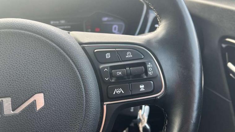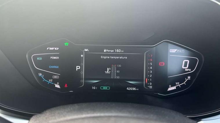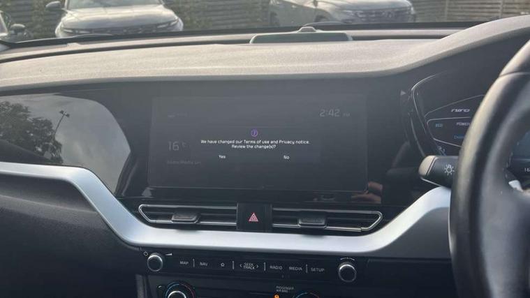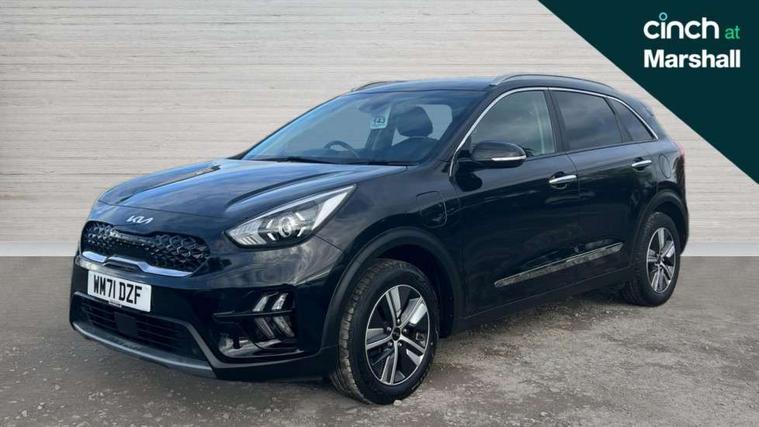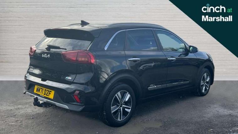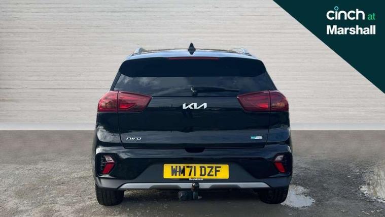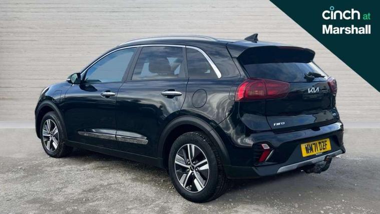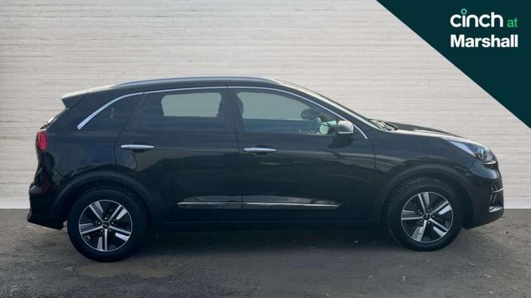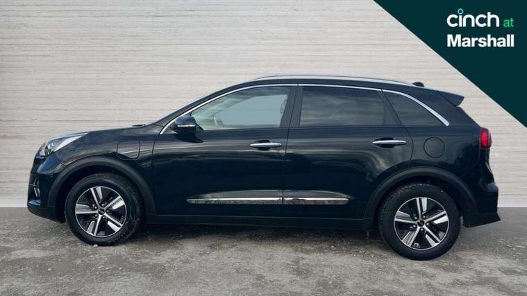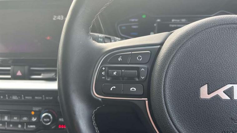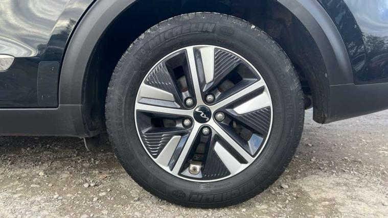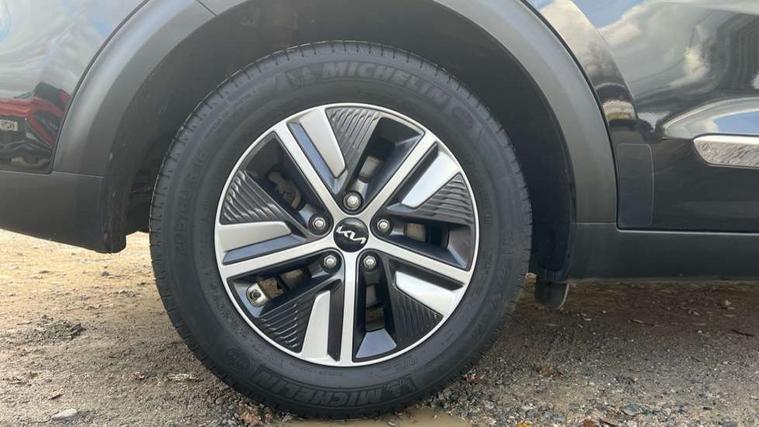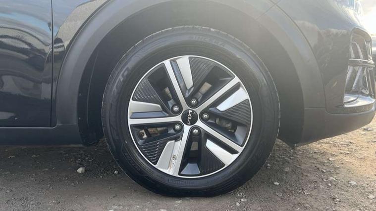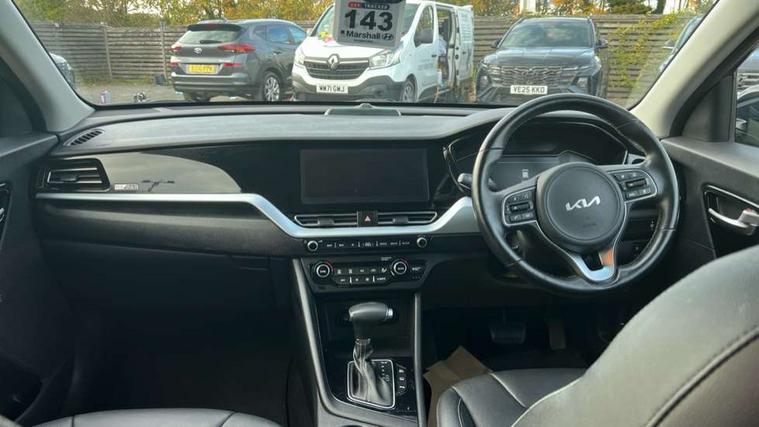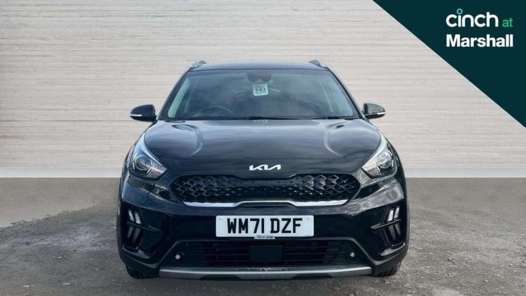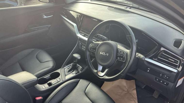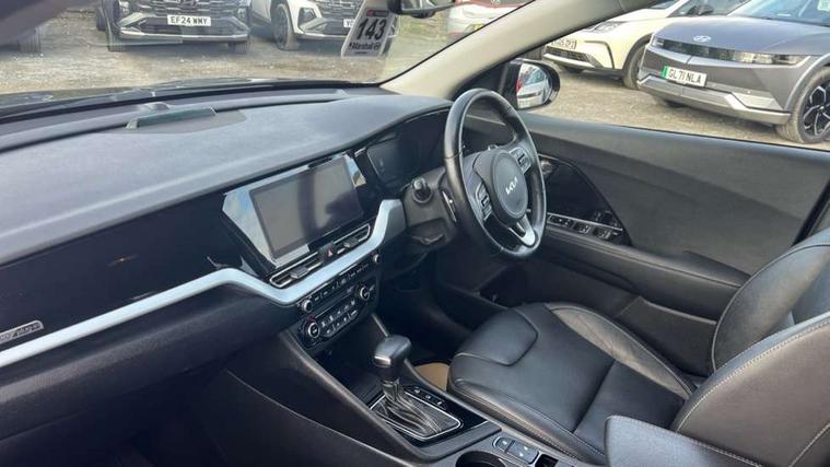 10.25" Touch screen satellite navigation with european mapping and traffic messaging channel, 7" full supervision cluster with TFT colour display, Adaptive smart cruise control function (SCC) with stop and go, Apple car play/Android Auto with voice control, Digital clock, Drive mode selector, Driver attention warning, Emergency call service, Emergency stop signalling system, Forward collision avoidance assist, Front parking sensors, Kia connected services featuring TomTom live, Lane Following Assist (LFA), Lane keep assist, Motor driven power steering, Rear parking sensors, Reversing camera, Speed limiter, Trip computer with distance/fuel consumption/average speed, UVO connect, Wireless Smartphone charger, 'Shark fin' mobile antenna, 6 speakers, Bluetooth with music streaming, DAB Radio with MP3, Steering wheel mounted controls, USB connection located in centre console, USB port, All round electric windows with drivers and front passenger auto up/down function, Auto dimming rear view mirror, Automatic defog system, Automatic headlight control system, Black beltline mouldings, Black side sills, Black wheel arch mouldings, Body colour bumpers, Body coloured/high gloss door mirrors, Chrome door handles, Driver's side wide angle mirror, Electrically folding/adjustable/heated door mirrors with LED indicators, LED daytime running lights, LED fog lights, LED rear combination lights, LED third brake light, Manual headlight levelling, Matt black radiator grille, Privacy glass - Rear windows and tailgate, Projector headlamps, Rain sensing front wipers, Rear side wing doors, Rear spoiler, Rear wiper, Roof rails, Solar glass, Variable front intermittent wipers, Waistline chrome coating, Welcome and follow-me home light functionality, 3 seat bench in 2nd row, 3 x passenger assist grips, 60/40 split/folding 2nd row of seats, 8 way electric adjustable drivers seat, All-round height adjustable headrests, Aluminium door scuff plates, Bulb type overhead console lamp with sunglasses case, Centre console storage box, Centre room lamp, Cupholders in rear armrest, Driver/passenger sunvisors with illuminated vanity mirrors, Drivers seat power lumbar support, Dual zone automatic air conditioning, Front and rear door storage, Front/rear centre armrests, Headlining in Light grey, Heated front seats, Heated steering wheel, High gloss black lower console trim, High gloss black steering wheel trim, Illuminated ignition key hole, Interior door lock/unlock function, ISOFIX Child seat top tethers and anchor fixings, Leather trimmed door armrests, Leather trimmed steering wheel, Leather trimmed steering wheel and gearshift, Leather upholstery, Luggage area lamp, Luggage area load cover, Luggage net hooks, Paddle shifts, Passenger seat height adjuster, Satin finish inner door handles, Seatback pocket - driver, Seatback pocket - front passenger, Single front passenger seat, Tilt/telescopic adjustable steering wheel, Under floor storage box, Ventiliation ducts to rear compartment, Towing pack - Niro, 3 point seatbelts on all seats, ABS, Automatic unlocking of doors in case of impact, Drivers knee airbag, Electric parking brake with auto hold function, Electronic stability control, Front passenger airbag cut-off switch, Height adjustable front seatbelts, Hill start assist control (HAC), Manual child lock in rear doors, Traction control, Twin curtain airbags with roll over sensor, Twin front and side airbags, Tyre pressure monitoring system, Alarm system and engine immobiliser, Deadlocks, Locking wheel nuts, Remote central door locking with fold away key, Speed sensitive auto door locking, Visible vehicle identification number, High gloss black centre fascia, High gloss black door inserts, 16" alloy wheels, Tyre mobility kit,