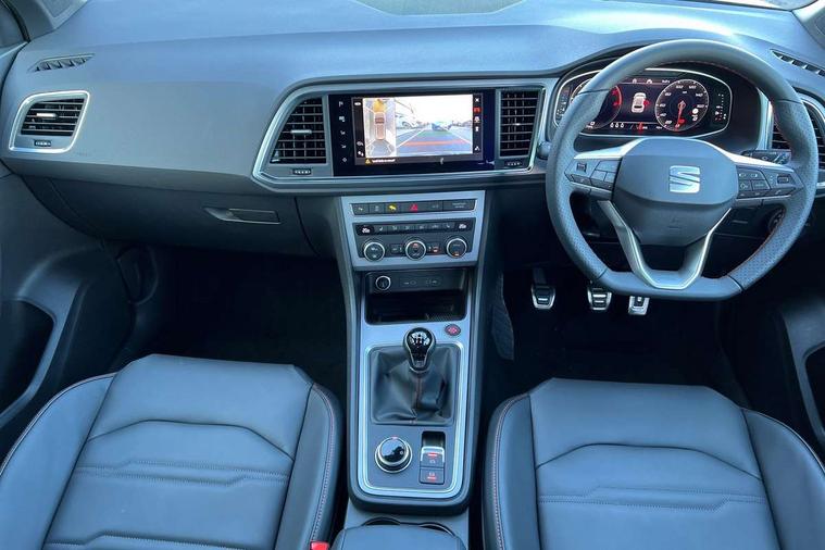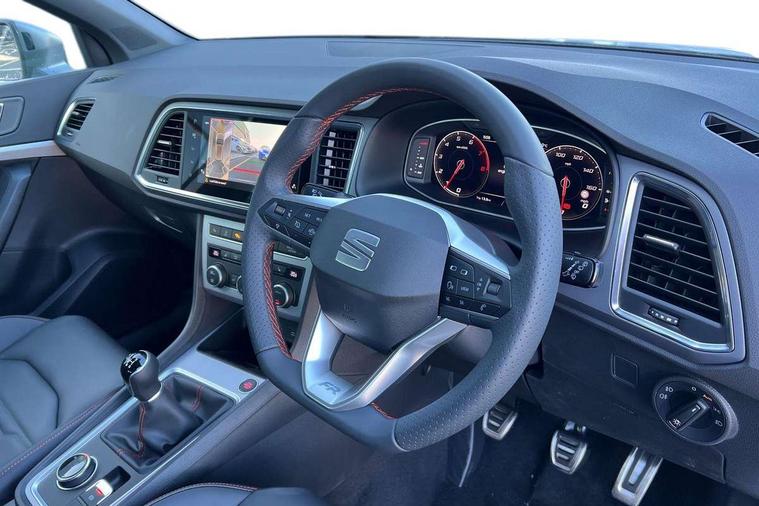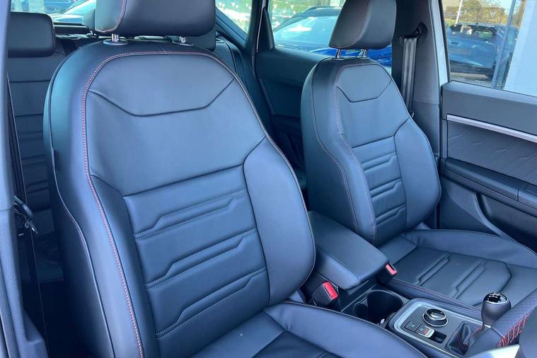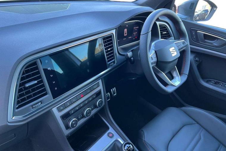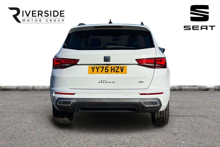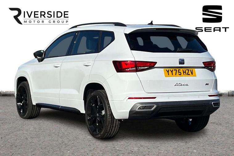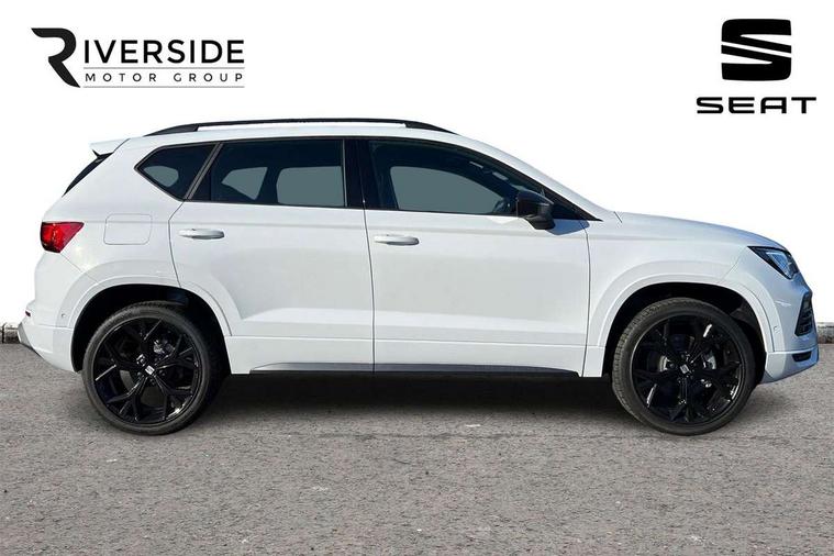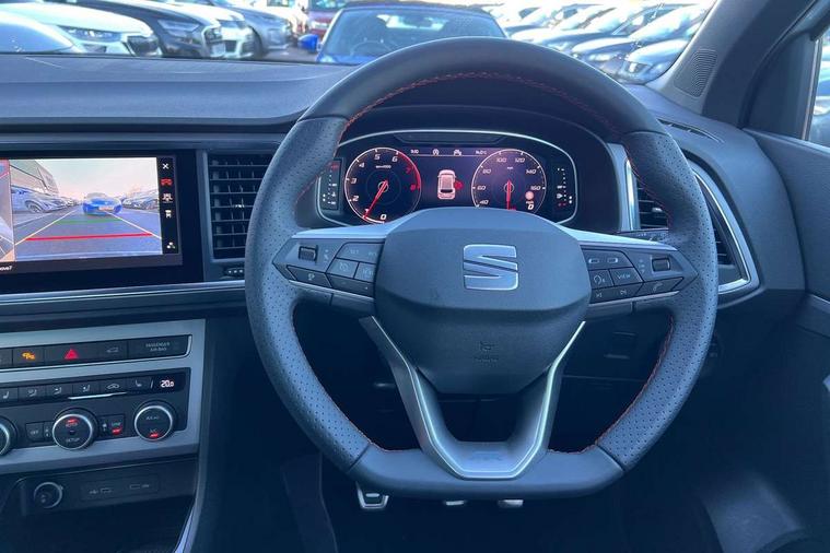 10" Digital cockpit, Bluetooth audio streaming with handsfree system, E-call, Electric tailgate with virtual pedal, Outside temperature gauge, Progressive power assisted steering, SEAT drive profile with driving experience button - Normal, Sport, Eco and Individual mode, steering and throttle response, Self parking functionality (includes front and rear parking sensors), Speed limiter, Start/stop system, Top view camera with rear view camera, Trip computer, wired and wireless full link smartphone integration, Wireless phone charger, Steering wheel mounted audio/phone controls, Black roof rails, Black side window trim, Body colour bumpers, Body coloured wheel arch surrounds, Chrome front grille frame, Dark tinted rear windows, Daytime running lights, Door mirrors with welcome light silhouette, Dynamic headlight range control with self adjusting whilst driving, Electric adjustable/heated/folding door mirrors, Front and rear electric windows, Illuminated aluminium front door sill, LED 3rd brake light, LED headlamps with lens and LED front fog lamps with cornering function, LED rear tail lights with dynamic indicators, Rear exhaust tailpipe, Rear fog lights, Rear side wing doors, Rear spoiler, Rear wash/wipe, Variable front intermittent wipers, 12v socket in front, 3 seat bench in 2nd row, 60/40 split folding rear seat, Aluminium pedals, Black greenhouse interior roof, Dual zone climate control, Electric adjustable driver seat with memory function, Front and rear head restraints, Front centre armrest, Front seat back storage pockets, Heated front seats, Height adjustable passenger seats with lumbar adjustment, ISOFIX points in outer rear seats with top tether anchorage points, Leather sports steering wheel and gear knob, Leather upholstery with front comfort seats, Rear armrest and easy back seat release mechanism from boot, Single front passenger seat, Convenience pack - Ateca, Interior lighting pack - Ateca, Navigation system pack with DAB - Ateca, Safety and driving pack (L) - Ateca, Safety and driving pack with attention and drowsiness assist - Ateca, 3x3 point rear seatbelts, ABS, Traction control system (TCS), Electronic stability control (ESC) and Electronic differential lock system (XDS), Airbags - Driver and front passenger airbag with deactivation, front side, two curtain and driver's knee airbags, Electric parking brake with auto hold function, Front and rear seatbelt reminder, Hill hold control, Manual rear child locks, Single tone horn, Tyre pressure monitoring system, Alarm, Keyless entry, Locking wheel bolts, Remote central locking, Chrome interior detailing, 19" Exclusive alloy whelels 36/10 in glossy black, Tool kit,