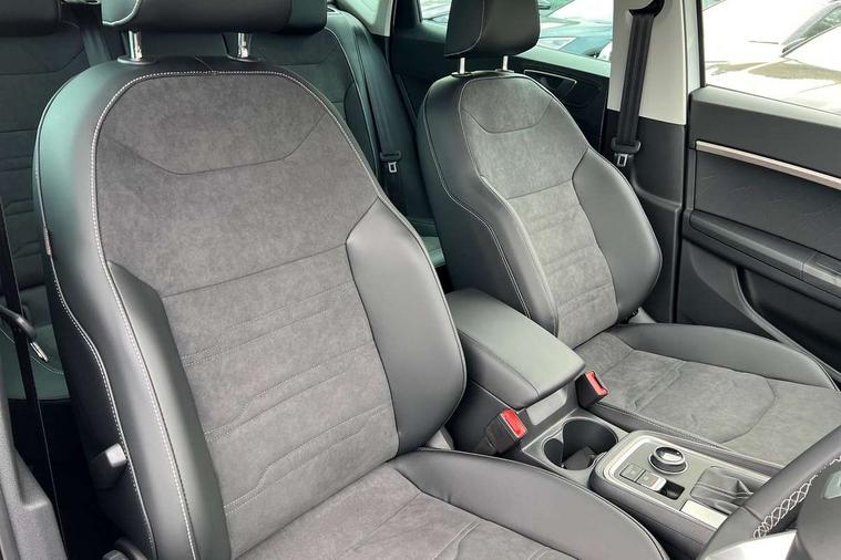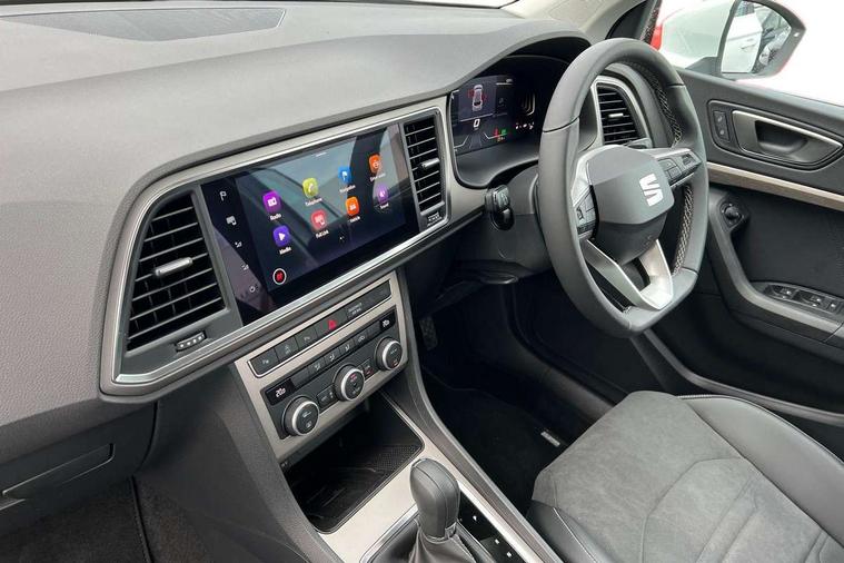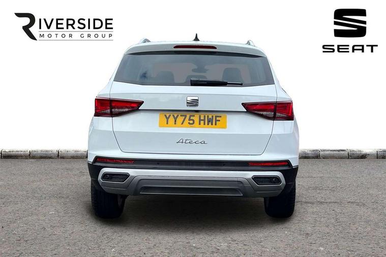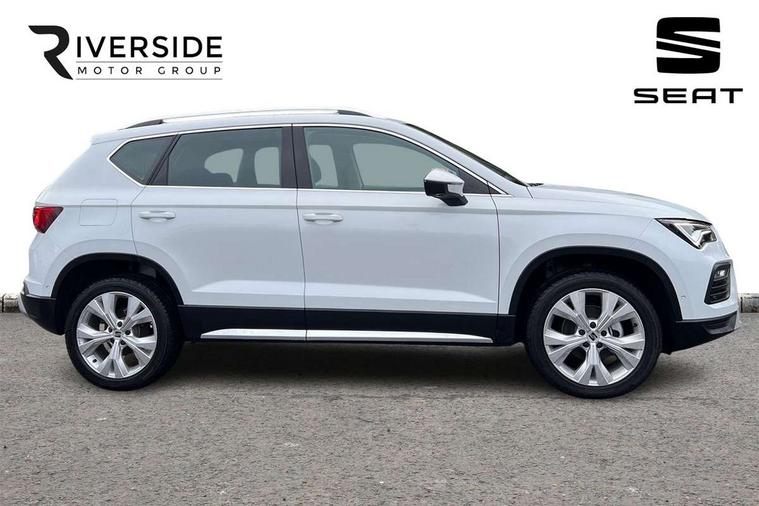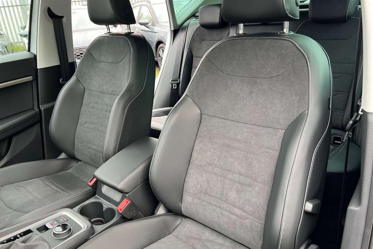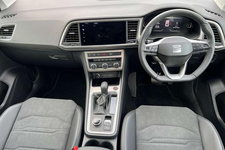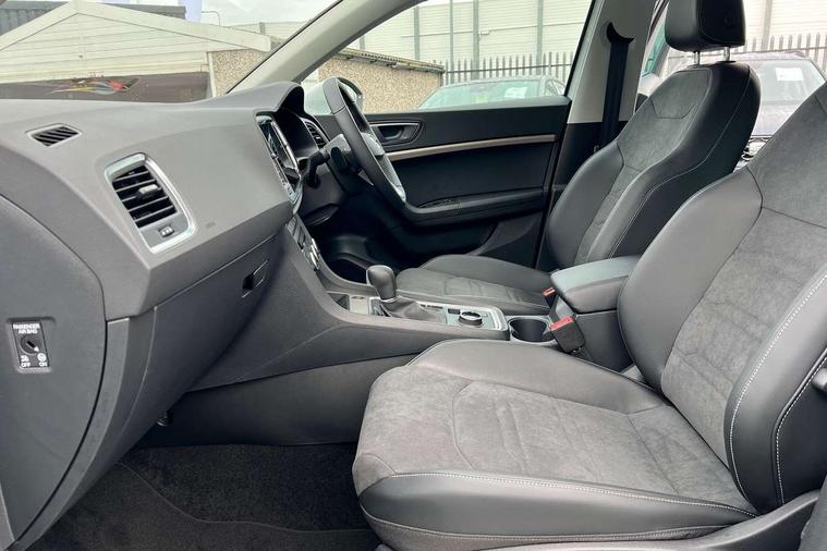 8" Digital cockpit, Colour multi-function on board computer display, E-call, Electric tailgate, Outside temperature gauge, Progressive power assisted steering, Rear view camera, SEAT drive profile with driving experience button - Normal, Sport, Eco and Individual mode, gearshift, steering and throttle response, Self parking functionality (includes front and rear parking sensors), Start/stop system, Trip computer, wired and wireless full link smartphone integration, Wireless phone charger, Steering wheel mounted audio/phone controls, Black wheel arch surrounds, Body colour bumpers, Chrome front grille frame, Chrome roof rails, Chrome side window trim, Dark tinted rear windows, Daytime running lights, Door mirrors with welcome light silhouette, Dynamic headlight range control with self adjusting whilst driving, Electric adjustable/heated/folding door mirrors, Front and rear electric windows, Front grille hot stamping, Full LED headlamps with lens and LED front fog lamps with cornering function, Heat reflecting windscreen, Illuminated aluminium front door sill, LED 3rd brake light, LED rear tail lights with dynamic indicators, Rear exhaust tailpipe, Rear fog lights, Rear side wing doors, Rear wash/wipe, Reflex silver side mouldings, Variable front intermittent wipers, 12v socket in front, 3 seat bench in 2nd row, 60/40 split folding rear seat, Dinamica upholstery with front comfort seats, Drawer under right front seat, Dual zone climate control, Front and rear head restraints, Front centre armrest, Front seat back storage pockets, Height adjustable driver and passenger seat with lumbar adjustment, ISOFIX points in outer rear seats with top tether anchorage points, Leather sports steering wheel and gear knob, Rear armrest and easy back seat release mechanism from boot, Single front passenger seat, Steering wheel mounted gearshift paddles, Convenience pack - Ateca, Interior lighting pack - Ateca, Navigation system pack with DAB - Ateca, Safety and driving pack (M) - Ateca, Safety and driving pack with attention and drowsiness assist - Ateca, 3x3 point rear seatbelts, ABS, Traction control system (TCS), Electronic stability control (ESC) and Electronic differential lock system (XDS), Airbags - Driver and front passenger airbag with deactivation, front side, two curtain and driver's knee airbags, Electric parking brake with auto hold function, Front and rear seatbelt reminder, Hill hold control, Manual rear child locks, Single tone horn, Tiredness recognition system, Tyre pressure monitoring system, Alarm, Keyless entry, Locking wheel bolts, Remote central locking, Chrome interior detailing, 18" Brillaint silver alloy wheels,