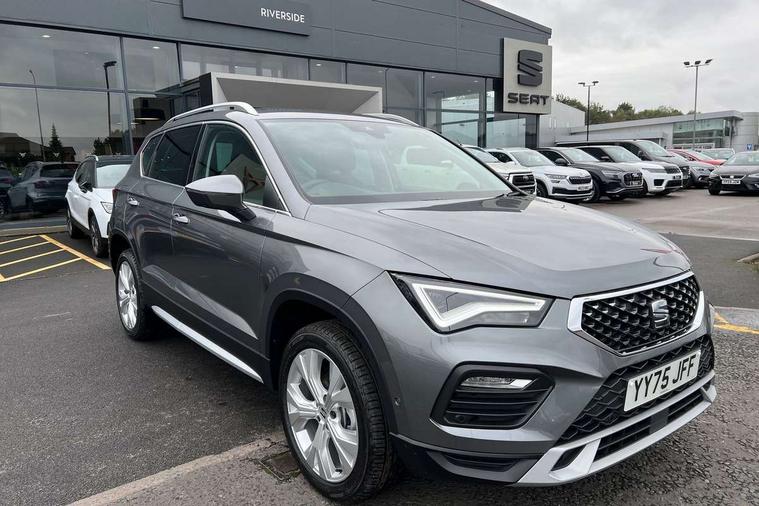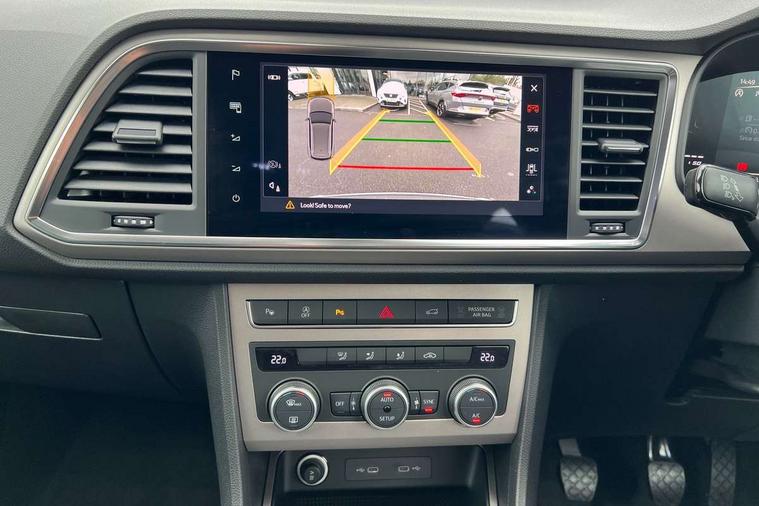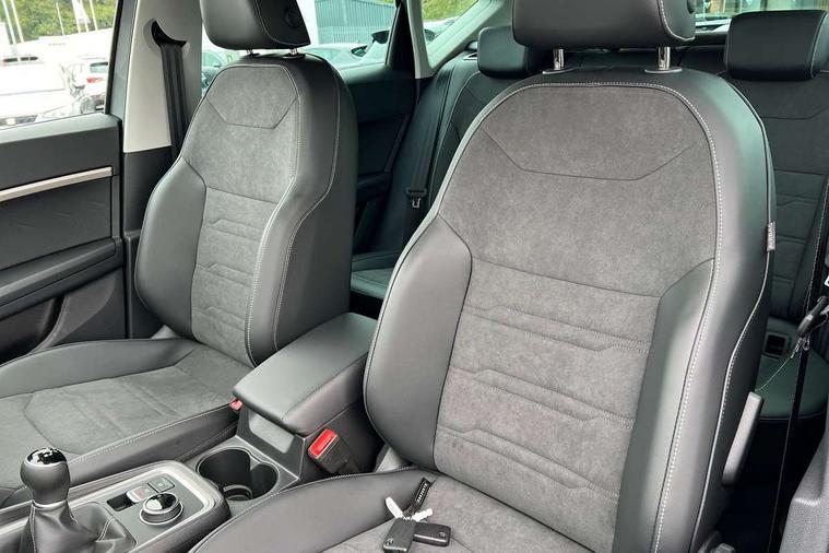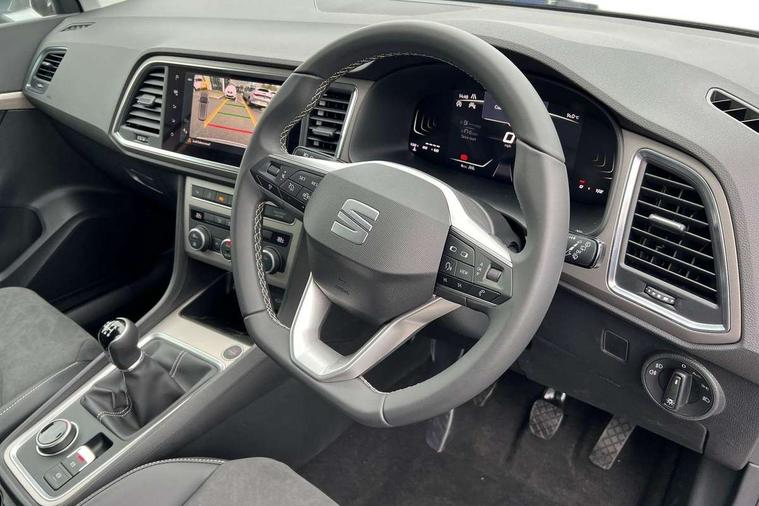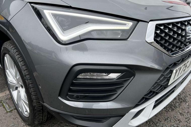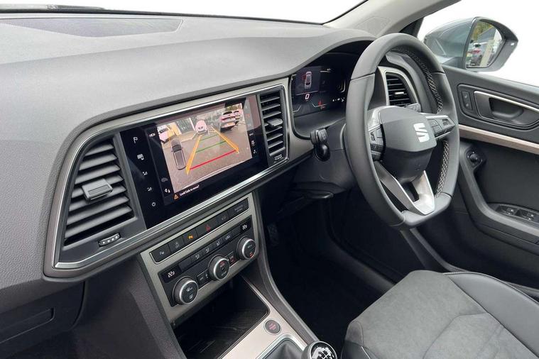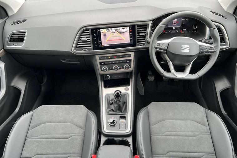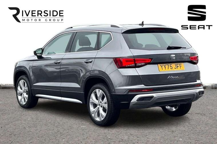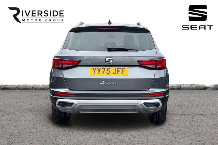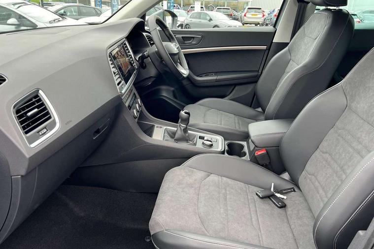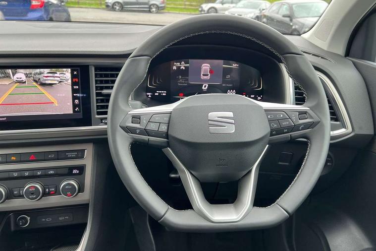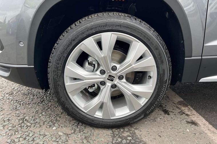 8" Digital cockpit, Colour multi-function on board computer display, E-call, Electric tailgate, Outside temperature gauge, Progressive power assisted steering, Rear view camera, SEAT drive profile with driving experience button - Normal, Sport, Eco and Individual mode, steering and throttle response, Self parking functionality (includes front and rear parking sensors), Start/stop system, Trip computer, wired and wireless full link smartphone integration, Wireless phone charger, Steering wheel mounted audio/phone controls, Black wheel arch surrounds, Body colour bumpers, Chrome front grille frame, Chrome roof rails, Chrome side window trim, Dark tinted rear windows, Daytime running lights, Door mirrors with welcome light silhouette, Dynamic headlight range control with self adjusting whilst driving, Electric adjustable/heated/folding door mirrors, Front and rear electric windows, Front grille hot stamping, Full LED headlamps with lens and LED front fog lamps with cornering function, Heat reflecting windscreen, Illuminated aluminium front door sill, LED 3rd brake light, LED rear tail lights with dynamic indicators, Rear exhaust tailpipe, Rear fog lights, Rear side wing doors, Rear wash/wipe, Reflex silver side mouldings, Variable front intermittent wipers, 12v socket in front, 3 seat bench in 2nd row, 60/40 split folding rear seat, Dinamica upholstery with front comfort seats, Drawer under right front seat, Dual zone climate control, Front and rear head restraints, Front centre armrest, Front seat back storage pockets, Height adjustable driver and passenger seat with lumbar adjustment, ISOFIX points in outer rear seats with top tether anchorage points, Leather sports steering wheel and gear knob, Rear armrest and easy back seat release mechanism from boot, Single front passenger seat, Convenience pack - Ateca, Interior lighting pack - Ateca, Navigation system pack with DAB - Ateca, Safety and driving pack (M) - Ateca, Safety and driving pack with attention and drowsiness assist - Ateca, 3x3 point rear seatbelts, ABS, Traction control system (TCS), Electronic stability control (ESC) and Electronic differential lock system (XDS), Airbags - Driver and front passenger airbag with deactivation, front side, two curtain and driver's knee airbags, Electric parking brake with auto hold function, Front and rear seatbelt reminder, Hill hold control, Manual rear child locks, Single tone horn, Tiredness recognition system, Tyre pressure monitoring system, Alarm, Keyless entry, Locking wheel bolts, Remote central locking, Chrome interior detailing, 18" Brillaint silver alloy wheels,