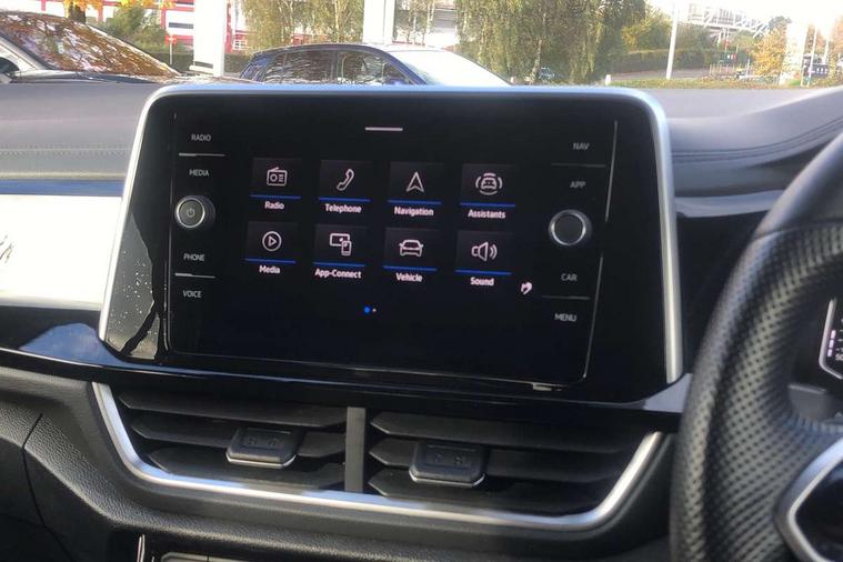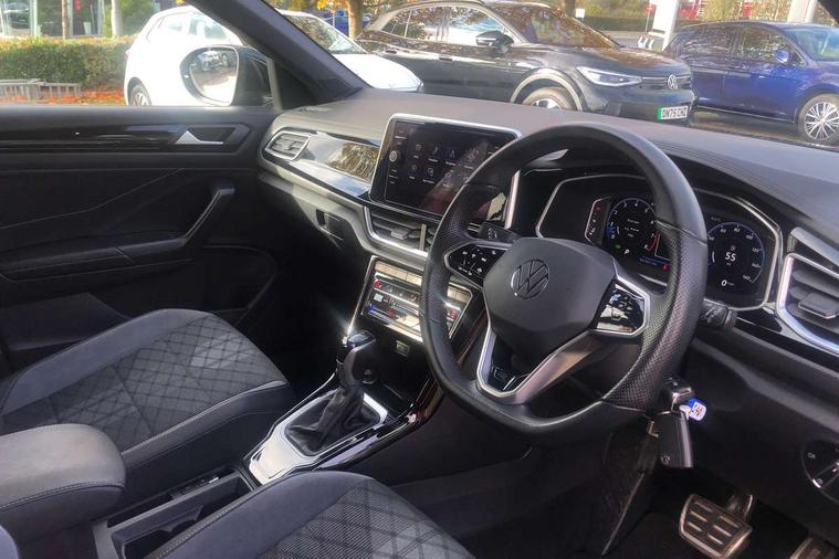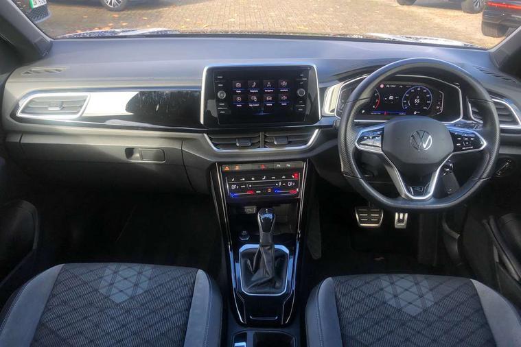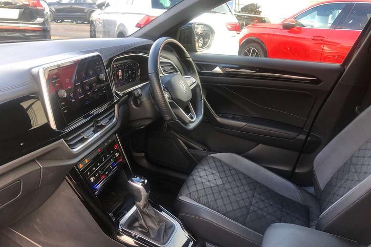 10.25" Digital cockpit pro, Bluetooth mobile phone interface, Driver alert system with fatigue detection, Driver tips and journey analysis, Emergency call service, Lane keeping system Lane Assist, Modified key software - reduce switch off time for key status change to Long no motion, Online services, Park assist including front and rear parking sensors, Service interval indicator, Tailgate/trunk lid release from outside, Think blue trainer driver tips and journey analysis, Warning sound and light for front seatbelts unfastened, Wireless app connect, Battery regeneration during braking, Start/stop function with battery regeneration, Diversity antenna for FM reception, Front and rear 6 speakers, Music playback - MP3, WMA and AAC files, Premium USB cable in choice of either Apple or Android smartphone compatibility, SD card slot, Simultaneous pairing of 2 compatible mobile devices, Title and cover art display, We Connect and We Connect Plus functionality, 3rd brake light, Auto dimming interior rear view mirror, Automatic hazard lights activation under emergency braking, Automatic headlight control with LED separate daytime running lights with coming/leaving home function, Extended roof spoiler, Exterior mirrors aspherical on driver side, convex on front passenger side, External USB type C socket and charging sockets, Front windscreen wiper with intermittent wipe and 4 position delay, Heated rear window, LED Plus headlamps, LED rear combination lamps, LED rear number plate lights, LED tail lamp rear comination lamps, Power windows with comfort operation and circuit breaker, R-Line design body coloured bumpers, Rain sensor, Rear exhaust tailpipe, Rear fog light on one side and reversing lights on both sides, Rear side wing doors, Rear wash/wipe with intermittent wipe setting, Remote electrically foldable door mirrors, puddle lights and reverse activated passenger's door mirror, 12V power socket in centre console, 3 rear head restraints, 3 seat bench in 2nd row, 4 load lashing points in luggage compartment, Air care climatronic air conditoning system with active combination filter and 2-zone temperature control, Black roof lining, Chrome plated radiator grille inserts, air vent surrounds and light switch surrounds, Door and side trim panel with leatherette insert, Drawer under drivers seat, Front + rear carpet mats, Front centre armrest, Front cupholders x 2, Front footwell illumination, Front reading light, Front scuff plates with R logo, Instrument lighting, white adjustable panel illumination, Interior ambient lighting and surround lighting, Interior light delay, Isofix child seat preparation, Leather gearshift handle, Load-through provision with cup holder when folded down ('Unsplit rear seat bench, split folding backrest, with centre armrest), Luggage compartment lighting, Single front passenger seat, Stainless steel pedals, Storage compartment in left and right luggage area, Storage compartment in rear doors, Storage compartments in driver and front passenger doors, Sunvisors with illuminated vanity mirrors, Variable boot floor, height adjustable and removable, Driver assistance pack without proactive passenger protection - T-Roc, 3 point height adj front seatbelts + pretensioners, 3 point seatbelts in outer rear with ECE label, ABS, Child locks on rear doors, Driver and front passenger airbag with front passenger airbag deactivation, Driver and front passenger safety-optimised head restraints, Drivers seatbelt reminder, Electronic parking brake, Electronic Stability Control (ESC) inc EDL (Electronic Differential Lock) and ASR (Traction Control), Front and rear passengers curtain airbag system including front side airbags, Front assist with city emergency braking and pedestrian monitoring, Front seat side impact airbags, Hill start assist, Predictive pedestrian protection, Rear disc brakes, Single tone horn, Tyre pressure loss indicator, Volkswagen roadside assistance, Alarm with interior protection, Anti-theft alarm system with interior monitoring, backup horn, and towing protection, Remote central locking with SAFELOCK, radio remote control with 2 remote control folding keys, Trims for alloy wheels,