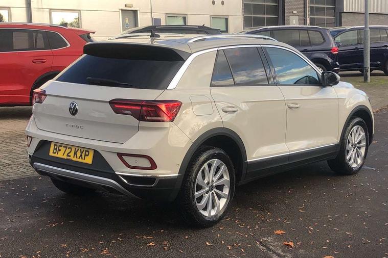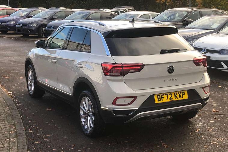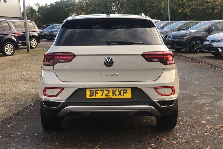 10.25" Digital cockpit pro, Bluetooth mobile phone interface, Driver alert system with fatigue detection, Driver tips and journey analysis, Emergency call service, Lane keeping system Lane Assist, Modified key software - reduce switch off time for key status change to Long no motion, Online services, Park assist including front and rear parking sensors, Service interval indicator, Tailgate/trunk lid release from outside, Think blue trainer driver tips and journey analysis, Warning sound and light for front seatbelts unfastened, Wireless app connect, Battery regeneration during braking, Start/stop function with battery regeneration, Diversity antenna for FM reception, Front and rear 6 speakers, Music playback - MP3, WMA and AAC files, Premium USB cable in choice of either Apple or Android smartphone compatibility, SD card slot, Simultaneous pairing of 2 compatible mobile devices, Title and cover art display, We Connect and We Connect Plus functionality, 3rd brake light, Auto dimming interior rear view mirror, Automatic hazard lights activation under emergency braking, Automatic headlight control with LED separate daytime running lights with coming/leaving home function, Body colour sports bumpers with silver metallic underbody fascia, Dynamic headlight range control with self adjusting whilst driving, Extended roof spoiler, Exterior mirrors aspherical on driver side, convex on front passenger side, External USB type C socket and charging sockets, Front windscreen wiper with intermittent wipe and 4 position delay, Heated rear window, LED Plus headlamps, LED rear combination lamps, LED rear number plate lights, LED tail lamp rear comination lamps, Light mode for poor weather, rain, fog or snow, Power windows with comfort operation and circuit breaker, Rain sensor, Rear exhaust tailpipe, Rear fog light on one side and reversing lights on both sides, Rear side wing doors, Rear wash/wipe with intermittent wipe setting, Remote electrically foldable door mirrors, puddle lights and reverse activated passenger's door mirror, 12V power socket in centre console, 3 rear head restraints, 3 seat bench in 2nd row, 4 load lashing points in luggage compartment, Air care climatronic air conditoning system with active combination filter and 2-zone temperature control, Chrome plated radiator grille inserts, air vent surrounds and light switch surrounds, Door and side trim panel with leatherette insert, Drawer under drivers seat, Front + rear carpet mats, Front centre armrest, Front comfort sports seats, Front cupholders x 2, Front footwell illumination, Instrument lighting, white adjustable panel illumination, Interior ambient lighting and surround lighting, Interior light delay, Isofix child seat preparation, Leather gearshift handle, LED interior light with switch off delay/dimmer and 2 front/rear LED reading lights, Load-through provision with cup holder when folded down ('Unsplit rear seat bench, split folding backrest, with centre armrest), Luggage compartment lighting, Non-folding front passenger seat backrest, Single front passenger seat, Storage compartment in left and right luggage area, Storage compartment in rear doors, Storage compartments in driver and front passenger doors, Sunvisors with illuminated vanity mirrors, Variable boot floor, height adjustable and removable, Driver assistance pack without proactive passenger protection - T-Roc, 3 point height adj front seatbelts + pretensioners, 3 point seatbelts in outer rear with ECE label, ABS, Child locks on rear doors, Driver and front passenger airbag with front passenger airbag deactivation, Driver and front passenger safety-optimised head restraints, Drivers seatbelt reminder, Electronic parking brake, Electronic Stability Control (ESC) inc EDL (Electronic Differential Lock) and ASR (Traction Control), Front and rear passengers curtain airbag system including front side airbags, Front assist with city emergency braking and pedestrian monitoring, Front seat side impact airbags, Predictive pedestrian protection, Rear disc brakes, Single tone horn, Tyre pressure loss indicator, Volkswagen roadside assistance, Alarm with interior protection, Anti-theft alarm system with interior monitoring, backup horn, and towing protection, Remote central locking with SAFELOCK, radio remote control with 2 remote control folding keys, Trims for alloy wheels,