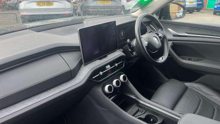 13" satellite navigation touchscreen display, Blind spot detection with door exit warning, Bluetooth system, ChatGPT functionality, Drive mode selector, Driver alert with fatigue sensor, Driver drowsiness alert system, Dry display cleaner, e call+, Front cross traffic assist, Lane assist, PAS, Rear traffic assist, Tailgate unlocking from outside, Traffic sign recognition, USB C Port x 2 in front centre console, Virtual Cockpit - 10.25" digital display, Voice control system, Wireless charging for two smartphones (15W) with cooling function, Wireless SmartLink for Apple CarPlay and Android Auto, Stop/start function, 2x USB-C in the rear, DAB Digital radio, Aero front windscreen wipers with intermittent function, Auto dimming rear view mirror, AWL (all weather lighting) and all weather light with cornering function, Black wheel arch surrounds, Body colour bumpers, Body colour door mirrors and handles, Cornering light and poor weather light, Electric folding /adjustable/separted heated/folding door mirrors, auto dimming with boarding sports and memory function, Electric front and rear windows, Exterior black decorative trims, Heat insulating glass in windshield, Heated rear window, Ice scraper in fuel tank cap, Invisible tailpipe, LED daytime running lights, LED rear fog light, LED third brake light in rear spoiler, Light assistant with automatic headlight control and coming home feature, Logo projection in door mirrors, Privacy glass, Rear side wing doors, Rear spoiler, Rear window wiper, Red decorative strip between rear LED lights, Safety reflectors on front and rear doors, Window control switches with black trim, Windscreen wipers with rain sensor, Without engine designation, 1.5l bottle holder points in all door, 12V socket in boot, 1x centre rear reading light, 2 seat bench in 3rd row, 3 configurable smart dials with 32mm coloured display, 3 seat bench in 2nd row, 4 foldable roof handles with rear coat hooks, Ambient interior lighting - Dashboard, front-door stowage compartments, front and rear door panels and footwell lighting, Automatic gear selector on steering wheel, Chrome interior door handles, Driver/front passenger reading lights, Fabric headlining, Fixed bench 40:60:40 split folding backrests, Front and rear floor mats, Front centre armrest with jumbo box storage compartment, cup holder and 12V socket, Front courtesy lights, Height adjustable front headrests, Isofix child seat fittings in outer middle row rear seats and front passenger with top tether, Manually adjustable steering column, Pollen filter, Rear centre armrest with cupholders, Rear seat boot backrest release, Retractable luggage compartment cover, Single front passenger seat, Sliding trunk cover, Small Bags on the inner sides of the front backrests, Storage pocket including mobile phone pockets on the backs of the front seats, Sunvisors with illuminated vanity mirrors, Three rear height adjustable headrests, Ticket holder on A Pillar, Tri zone climate control, Umbrella in door panel x1 made from sustainable materials, Upper and lower glovebox with card holder and coin compartment, USB C port by rear view mirror for charging only (15W), Exterior styling pack - Kodiaq, Auto door release and activation of warning lights in the event of an accident, Driver and front passenger airbag with knee airbag and front passenger airbag deactivation, Electric child locks, Electronic parking brake, ESC (incl. ABS+EMD+MSR+ASR+EDL+HBA+DSR+RBS+ESBS+MCB+TSA+XDS), Front assist with braking reaction to vehicles, pedestrians and cyclists, Front disc brakes, Fuel cut off safety device, Height adjustable front 3 point seatbelts + pretensioners, Hill hold control, Junction assist with automatic emergency braking, Rear disc brakes, Safety vest holder in door, Seat belt reminder for all seats, Three point rear seat belts, Two tone horn, Tyre pressure monitor, Anti-theft wheel bolts, Immobiliser, Remote central locking with 2 keys, Breakdown kit,