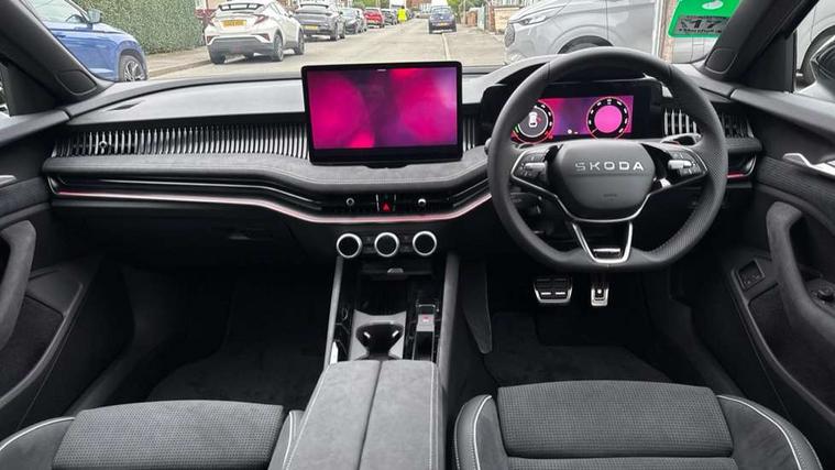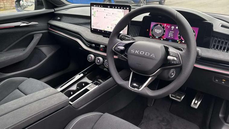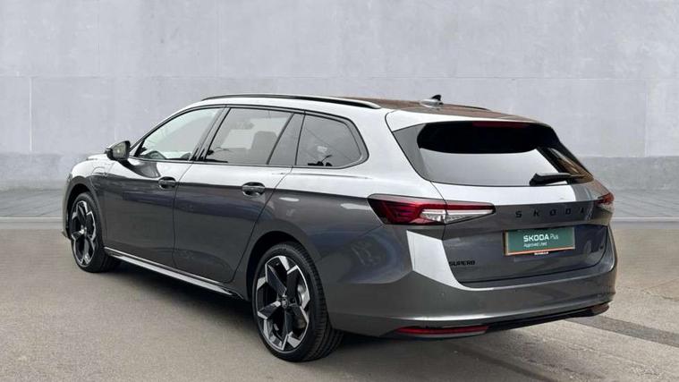 13" touchscreen display with satellite navigation, 4x USB-C ports (2x in front centre console and 2x in rear) (45W), Adaptive cruise control with speed assist, lane assist plus and traffic tram assist, Blind spot detection with door exit warning, Bluetooth system, CareConnect and Emergency Call, ChatGPT functionality, Drive mode selection, Driver fatigue sensor, Front assist with extended predictive pedestrian protection, Front cross traffic assist, PAS, Quick start all heating software functionality, Stop/start engine system, Traffic sign recognition, Turn assist with evasive assistance, Virtual Cockpit - 10.25" digital display, Voice control system, Washer for rear camera, Wireless charging for one smartphone (15W) with cooling function, Wireless smartlink apple carplay, SmartLink+ android auto, Dynamic chassis control plus with progressive dynamic steering, Mode 3 charging cable, DAB Digital radio, Display cleaner, FM radio connection, Web radio connection, Acoustic side windows and interior noise suppression, Backdrop lighting, Black exterior styling window and grille surrounds, Black roof rails, Body colour door handles, Dynamic range control with poor weather light and integrated fog light, Electrically adjustable, heated, folding and driver side auto-dimming door mirrors with memory function, integrated indicators and logo projection, Frameless auto-dimming rear view mirror with USB-C, Gloss black door mirrors, Ice scraper in fuel tank cap, LED 3rd brake light, Light assist with High beam control, Light assistant (coming/leaving home/tunnel light), Privacy glass, Rear fog lights (x2), Rear roof spoiler, Rear side wing doors, Rear windscreen wiper, Skoda lettering in black, Sportline badging, Sports bumpers, Windscreen wipers with rain sensor, 12V socket 1x centre console 1x boot, 14-way electrically adjustable, memory, front seats with 4-way pneumatic lumbar support, and extendable thigh support with smart comfort entry aid, 2x cargo elements in boot, 2x light in boot, 3 seat bench in 2nd row, 4x foldable bag hooks in boot, 60:40 Split folding rear seats, Aluminium pedals, Bottle holders in the front doors 1.5 litre bottle and rear 1.5 litre bottle, Cup holder in front with easy open mat, Front armrest with storage box, Front sports seats, Heated and ventilated front seats, Height adjustable front and rear head restraints, Illuminated glovebox, Interior lights with control switches, Isofix child seat fittings in outer rear and front passenger seats, LED front and rear reading lights, Single front passenger seat, Skoda lettering on steering wheel, Storage compartment with cover, Storage pockets on back of front seats, Sun visors with illuminated vanity mirrors, Ticket holder on A Pillar, Tri zone climate control, Umbrella in driver's door, Light and view package - Superb, Transport package - Superb Estate, 3 rear seatbelts, 8 Airbags - Front driver and passenger, front side driver and passenger, centre, curtain front and rear, drivers knee, Crew protect assist, Driver and passenger seatbelts with warning light, Electronic parking brake, ESC including ABS, EBV, MSR, ASR, EDS, HBA, DSR, RBS, CBC, multi-collision brake (MKB) and Auto hold, Hill hold assist, Power operated child lock in rear doors, Alarm with interior monitoring tilt sensor and back up horn, Backrest remote release from trunk, Electronic engine immobiliser, Keyless start/stop, Remote central locking with SAFE system, Third key, Walk away locking, Decorative front door sills, 19" Torcular polished black alloy wheels with anti theft wheel bolts, Tyre repair kit,