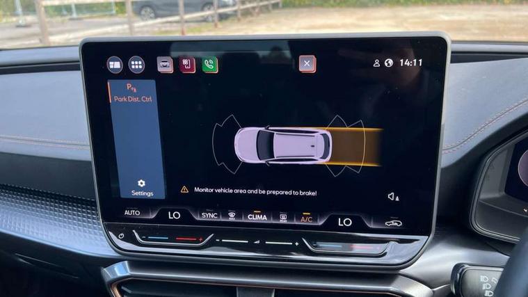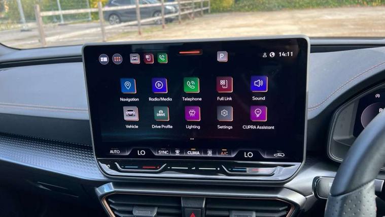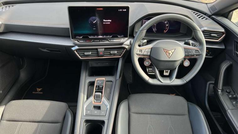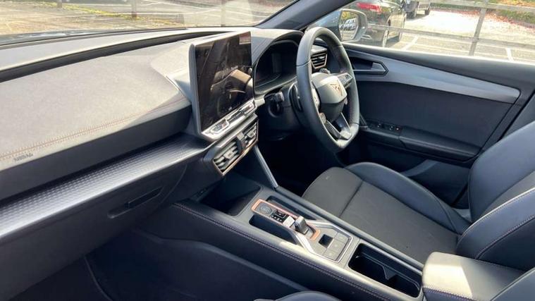 Adaptive cruise control with follow-to-stop and speed limiter, CUPRA drive profile selection with (Comfort/Sport/Individual), throttle response and gearshift mode, Digital cockpit, Dynamic road sign display, E-call, Four x USB Type C ports (2 in front and 2 in rear), Front and rear parking sensors, Front assist with forward collision warning braking reaction to vehicles, pedestrians and cyclists, Full link smartphone integration with Mirror Link, wireless Apple CarPlay and wired Google Android Auto, Lane assist, Lockable tailgate, PAS, RPM, trip computer, outside temp gauge, instrument light brightness, low fuel warning light, lights on reminder, gearshift indicator, Service interval indicator, Start/stop system with regenerative braking, Virtual pedal with electric tailgate, Wireless phone charger, 7 speakers, Auxiliary input socket, Auto dimming rear view mirror, Body colour door handles, Body coloured bumpers, Cupra sports bumpers, Dark tinted rear windows, Electric front/rear windows, Electrically adjustable, heated and folding door mirrors, Gloss black roof rails, High beam assist, LED front fog lamps with cornering function, LED headlights with dynamic turn signals, tail lights, rear fog lights with rear coast to coast lighting, LED rear fog lamp, Rain sensing wipers, Rear side wing doors, Rear wash/wipe, Separate daytime running light with automatic headlight control and coming home feature, Third brake light, Welcome light with logo projector in door mirrors, 12v power supply in centre console, 3 seat bench in 2nd row, 5 headrests, 60/40 split rear bench seat with armrest, Ambient lighting with glovebox, footwell and single monocolour, Black headlining, Cloth/PVC upholstery, Cupra sports pedals, CUPRA Supersports, heated steering wheel with satellite buttons, Driver and passenger seat with manual height and lumbar adjustment, Front and rear reading lights X 4, Front centre armrest, Height/reach adjust steering wheel, Illuminated interior front door sills, ISOFIX points in outer rear seats with top tether anchorage points, Single front passenger seat, Sliding boot cover, Storage pockets on rear of front seats, Sunvisors with illuminated mirror, Three zone climate control, Media system plus with 12.9" display + navigation pack - Leon Cupra, 3 point seatbelts on all rear seats, ABS, Brake control system - ESC and brake booster, Child proof door locks, Cupra black brake calipers, Driver and front passenger airbags with front passenger airbag de-activation, front side and curtain airbags, Electronic parking brake, Hill hold control, Rear disc brakes, Seat belt reminder for front and rear seats, Tiredness recognition system, Tyre pressure monitoring system, Anti theft alarm system with interior monitoring in cab, backup horn and towing protection, Central locking system Keyless Go, Locking wheel bolts, Chrome and copper interior detailing, 18" Windstorm machined sport black matt and silver alloy wheel with 92Y XL tyres, Tool kit,