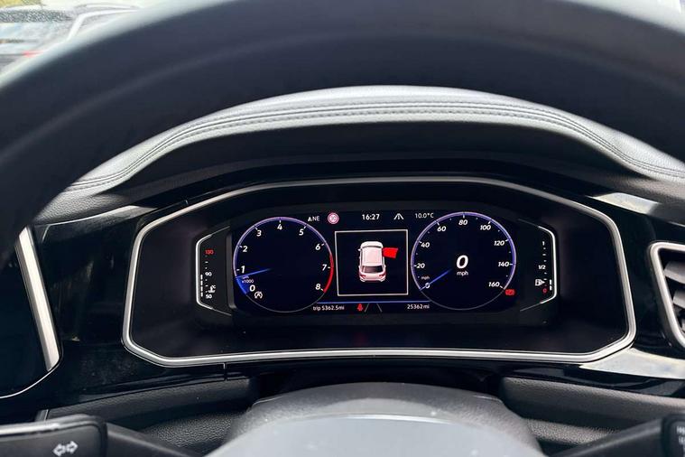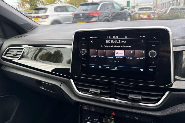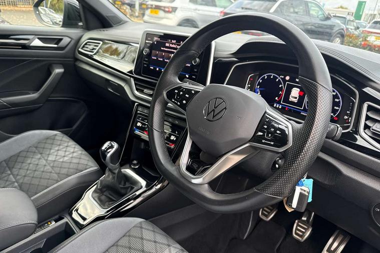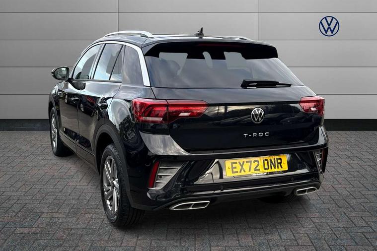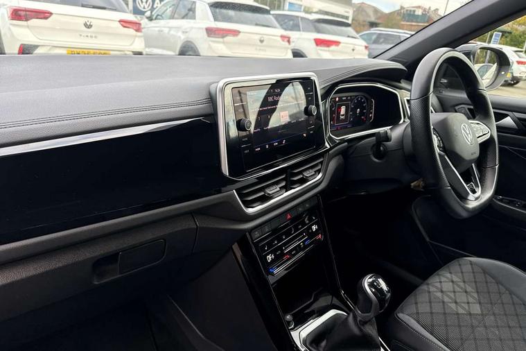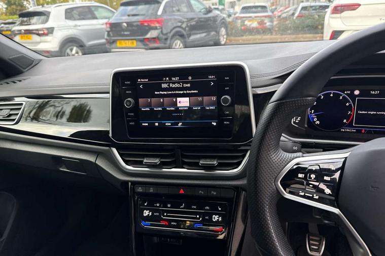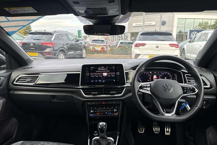 10.25" Digital cockpit pro, Bluetooth mobile phone interface, Driver alert system with fatigue detection, Driver tips and journey analysis, Emergency call service, Lane keeping system Lane Assist, Modified key software - reduce switch off time for key status change to Long no motion, Online services, Park assist including front and rear parking sensors, Service interval indicator, Tailgate/trunk lid release from outside, Think blue trainer driver tips and journey analysis, Warning sound and light for front seatbelts unfastened, Wireless app connect, Battery regeneration during braking, Start/stop function with battery regeneration, Diversity antenna for FM reception, Front and rear 6 speakers, Music playback - MP3, WMA and AAC files, Premium USB cable in choice of either Apple or Android smartphone compatibility, SD card slot, Simultaneous pairing of 2 compatible mobile devices, Title and cover art display, We Connect and We Connect Plus functionality, 3rd brake light, Auto dimming interior rear view mirror, Automatic hazard lights activation under emergency braking, Automatic headlight control with LED separate daytime running lights with coming/leaving home function, Extended roof spoiler, Exterior mirrors aspherical on driver side, convex on front passenger side, External USB type C socket and charging sockets, Front windscreen wiper with intermittent wipe and 4 position delay, Heated rear window, LED Plus headlamps, LED rear combination lamps, LED rear number plate lights, LED tail lamp rear comination lamps, Power windows with comfort operation and circuit breaker, R-Line design body coloured bumpers, Rain sensor, Rear exhaust tailpipe, Rear fog light on one side and reversing lights on both sides, Rear side wing doors, Rear wash/wipe with intermittent wipe setting, Remote electrically foldable door mirrors, puddle lights and reverse activated passenger's door mirror, 12V power socket in centre console, 3 rear head restraints, 3 seat bench in 2nd row, 4 load lashing points in luggage compartment, Air care climatronic air conditoning system with active combination filter and 2-zone temperature control, Black roof lining, Chrome plated radiator grille inserts, air vent surrounds and light switch surrounds, Door and side trim panel with leatherette insert, Drawer under drivers seat, Front + rear carpet mats, Front centre armrest, Front cupholders x 2, Front footwell illumination, Front reading light, Front scuff plates with R logo, Instrument lighting, white adjustable panel illumination, Interior ambient lighting and surround lighting, Interior light delay, Isofix child seat preparation, Leather gearshift handle, Load-through provision with cup holder when folded down ('Unsplit rear seat bench, split folding backrest, with centre armrest), Luggage compartment lighting, Single front passenger seat, Stainless steel pedals, Storage compartment in left and right luggage area, Storage compartment in rear doors, Storage compartments in driver and front passenger doors, Sunvisors with illuminated vanity mirrors, Variable boot floor, height adjustable and removable, Driver assistance pack without proactive passenger protection - T-Roc, 3 point height adj front seatbelts + pretensioners, 3 point seatbelts in outer rear with ECE label, ABS, Child locks on rear doors, Driver and front passenger airbag with front passenger airbag deactivation, Driver and front passenger safety-optimised head restraints, Drivers seatbelt reminder, Electronic parking brake, Electronic Stability Control (ESC) inc EDL (Electronic Differential Lock) and ASR (Traction Control), Front and rear passengers curtain airbag system including front side airbags, Front assist with city emergency braking and pedestrian monitoring, Front seat side impact airbags, Hill start assist, Predictive pedestrian protection, Rear disc brakes, Single tone horn, Tyre pressure loss indicator, Volkswagen roadside assistance, Alarm with interior protection, Anti-theft alarm system with interior monitoring, backup horn, and towing protection, Remote central locking with SAFELOCK, radio remote control with 2 remote control folding keys, Trims for alloy wheels,