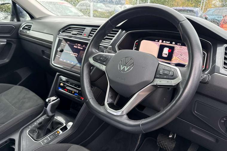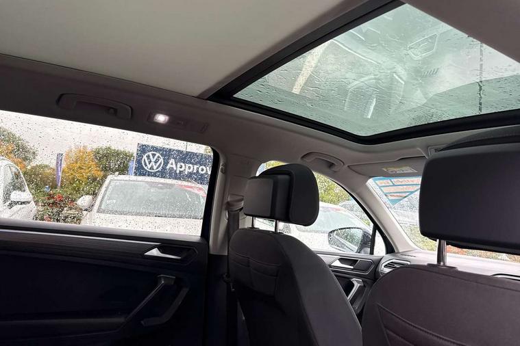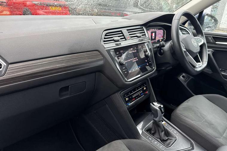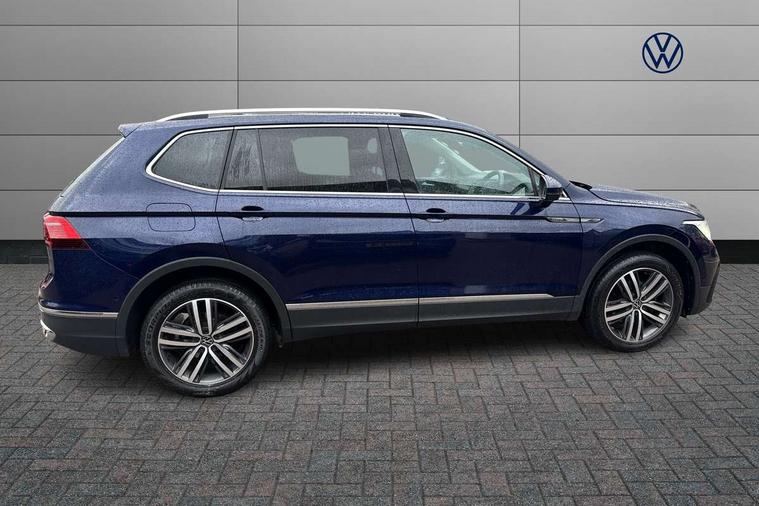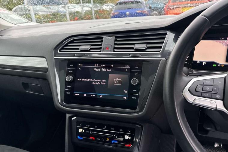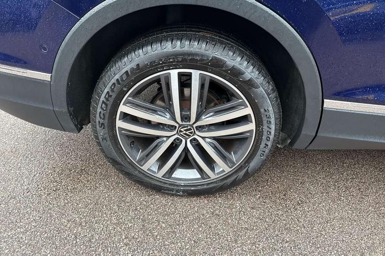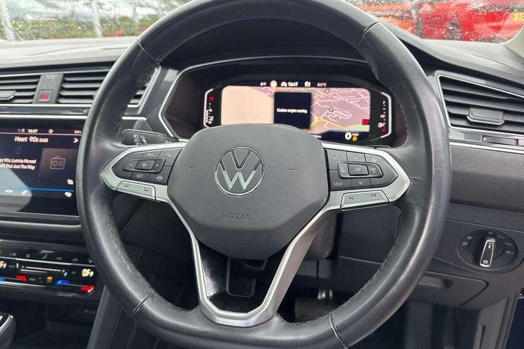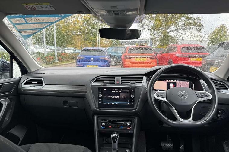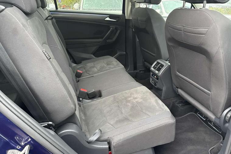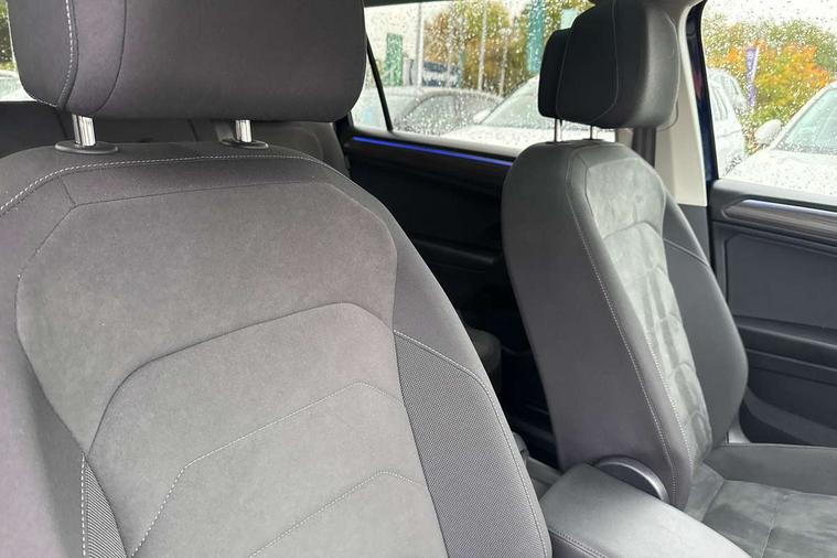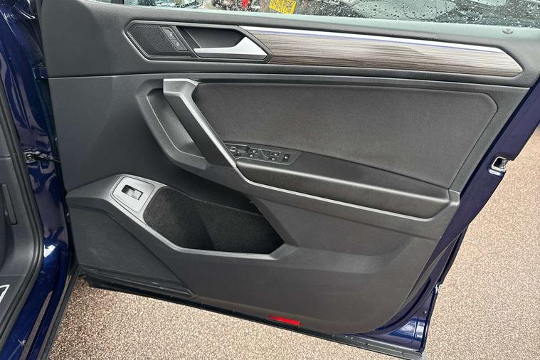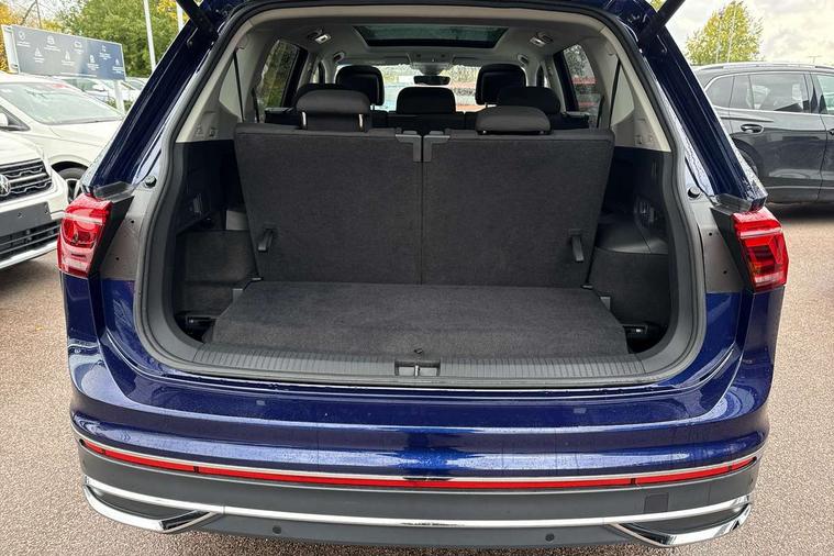 Adaptive cruise control, App-Connect, Digital cockpit pro, Driver alert system, Driver profile selection, Dynamic road sign display, eCall emergency call service, Electric boot lid, Lane change system side assist and rear traffic alert, Lane keeping system Lane Assist, Mobile phone interface comfort with inductive charging feature, Multifunction front facing camera, Power assisted speed sensitive steering, Speedo and rev counter, electronic odometer, trip, service interval display and exterior temperature gauge, Front wheel drive, Start-stop system with battery regeneration (recuperation - energy recovery during braking), 2 USB-C ports in the front, 1 USB-C charging socket on the center console in the rear, DAB Digital radio, Diversity antenna for FM reception, Auto dimming interior rear view mirror, Automatic headlight control system, Body coloured comfort bumpers, Chrome mouldings on side window, Coming/leaving home lighting function, Exterior badge deletion, Exterior mirror housings painted in silver, Heated windscreen washer jets, IQ light adv HBC, dyn light assist LED matrix headlamps, DH range, dark red LED rear combo light, poor weather, CL, LED headlamp with LED DRL and DCL - PXC, Privacy glass, Rain sensor, Rear fog light, Rear side wing doors, Rear wiper, Silver roof rails, Third brake light, Tilting and sliding panoramic sunroof, 12-volt outlet in centre console rear and luggage compartment, 12V socket in centre console, 3 head restraints in rear, 3 individual folding 2nd row seats, 3rd row 2 individual seats, Air Care Climatronic 3 zone automatic climate control with enhanced air filter and controls in the rear, Door and side trim panel, Drawers under front seats, Driver and front passenger seat height adjustment, Foldable front passenger seat backrest, Front + rear carpet mats, Front centre armrest, Front footwell illumination, Heated front seats, Illuminated scuff plates, ISOFIX anchorage points for mounting 2 child seats on rear seats and i-Size child seats, Leather gearshift handle, Leather-wrapped heated multi-function steering wheel with paddle shift, LED interior light with switch off delay/dimmer and 2 front/rear LED reading lights, Sun visors with illuminated vanity mirrors, Ambience pack - Tiguan Allspace, Easy open and close pack with safelock - Tiguan Allspace, 3 point seat belt for centre rear seat, 3 rear three point seatbelts, ABS+EBD+Brake assist, Driver and front passenger safety-optimised head restraints, Driver's and front passenger's airbag with front passenger's airbag deactivation switch, Electronic parking brake, Electronic Stability Control (ESC) inc EDL (Electronic Differential Lock) and ASR (Traction Control), Height adjustable front 3 point seatbelts + pretensioners, Manual rear child locks, Pedestrian monitoring, PreCrash preventive occupant protection Front and rear, Rear disc brakes, Side airbag in front and rear with curtain airbag, Two tone horn, Warning buzzer for seatbelts if unfastened, Anti theft alarm system with interior monitoring, backup horn and towing protection, Anti-theft wheel bolts, Electronic steering lock, Remote central locking with 2 remote folding keys, Chequered flag tinanium decorative inserts,