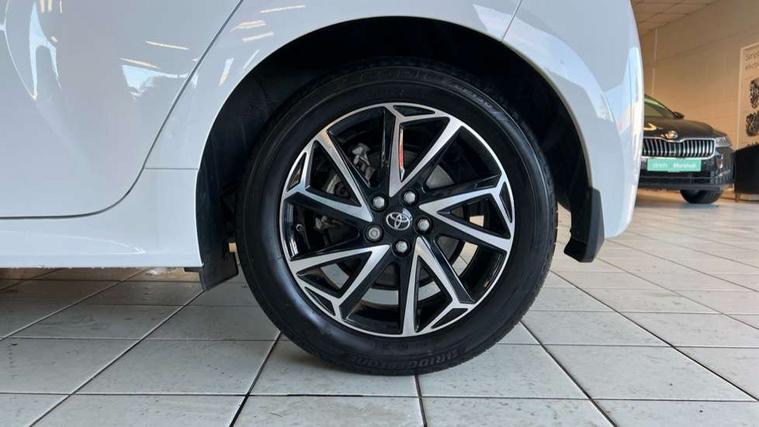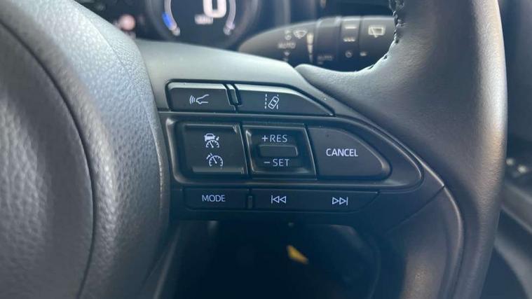 Adaptive cruise control, Adjustable speed limit with speed warning, Bluetooth connectivity, Colour binocular inspired displays with digital speedometer, E-call, Electric power steering, Hybrid energy display, Multi information display switches on steering wheel, Reversing camera, Smartphone integration with Apple CarPlay and Android auto, Tailgate, Voice recognition, Vehicle Stability Control (VSC), 4 speakers, 8" Multimedia display touch screen, USB connection, Acoustic windscreen glass, Auto windscreen wipers, Automatic headlights, Body coloured door mirrors, Electric adjustable heated door mirrors, Follow me home headlights, Front auto power windows with anti jam protection, Full LED rear lights, LED daytime running lights, LED front fog lights, LED front light guide, LED Headlights, LED High mounted stop lamp, LED Indicators, LED rear light guide, Manual headlight levelling, Painted chequered front grille, Rain sensor, Rear auto power windows with anti jam protection, Rear privacy glass, Rear side wing doors, Rear spoiler, Rear wiper, Shark fin antenna, Turning signal integrated indicators in door mirrors, Variable front intermittent wipers, 3 adjustable rear headrests, 3 spoke leather steering wheel, 60/40 split folding rear seat, Active headrests, Adjustable boot height, Auto air conditioning, Coat hooks in rear grab handles, Cup holders (2 front & door), Data Communication Module (DCM) connected services, Fabric upholstery, Front armrest, Glovebox, Grey roof lining, Height adjustable driver's seat, Isofix seat fixing, Leather gearshift, Pollen filter, Shopping bag hooks, Single front passenger seat, Tilt/telescopic steering column, 3 point seatbelts on all rear seats, ABS+EBD+Brake assist, Electronic parking brake, Emergency brake light system (EBS), Front passenger airbag on/off switch, Front seatbelt reminder, Hill start assist control (HAC), Rear child proof door locks, Rear seat belt reminder, Supplemental Restraint System (SRS) 8 airbags: Driver & passenger's airbags, dual side curtain airbags, side impact airbags, front centre airbag, Toyota Safety Sense 2, Precollison + Night time Pedestrian & Cyclist Detection, Lane Trace Assist, Auto High Beam, Intelligent ACC & Road Sign Assist, Tyre pressure warning system, 2x Master key, Alarm/immobiliser, Remote powered central double locking doors, Soft touch instrument panel, Space saver spare wheel,