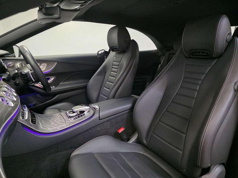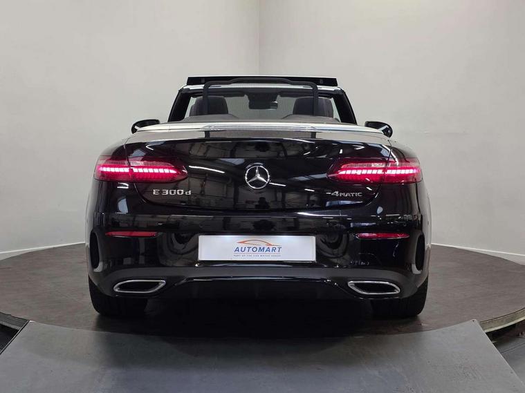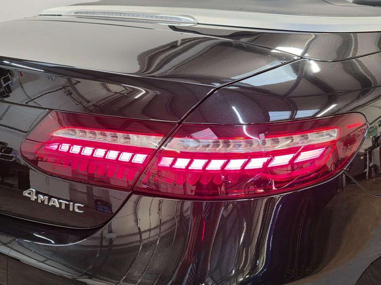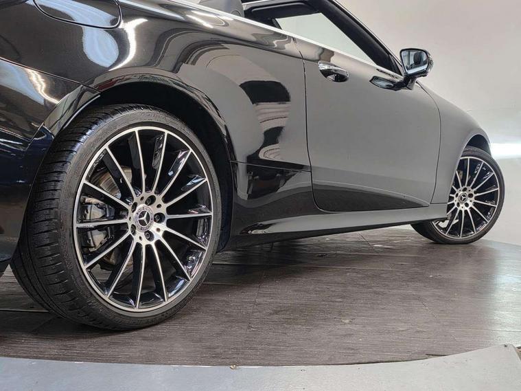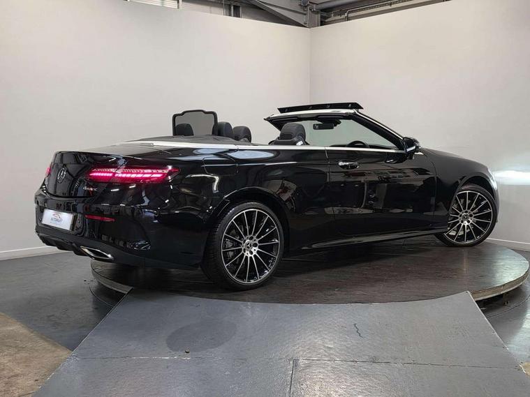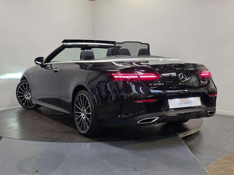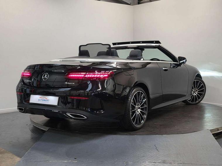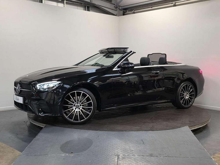 360 degree parking camera, Active parking assist including front and rear parking sensors, Analogue clock, Attention assist, Automatic boot separator, Brake wear warning display, Cockpit display 12.3" widescreen digital instrument cluster, Collision prevention assist plus, Direct steer speed sensitive steering, DYNAMIC SELECT with a choice of driving modes (ECO, Comfort, Sport, Sport+ and Individual), E-call, ECO start/stop function, High resolution 12.3" multimedia colour display, MBUX voice control activated by keywords "Hey Mercedes", Mercedes connect me, Outside temperature display, Pre-installation for Vehicle Monitoring, Pre-installation for Vehicle Setup, Remote boot release, Service indicator (ASSYST), Status display for rear seat belts in instrument cluster, Touchpad with controller, Traffic sign assist, Trip computer in multifunction display showing current fuel consumption, Wireless charging, 14 litre AdBlue tank, 66 litre fuel tank, 9G TRONIC 9 speed automatic transmission, Agility control sports suspension with selective damping system, Diesel particulate filter, Incorrect fuelling protection, 2 USB ports in centre console, 2 USB ports in the rear, Burmester surround sound system with 13 speakers and a 9 channel amplifier with total output of 590 watts, MBUX multimedia system with DAB digital radio and touchpad including satellite navigation, Smartphone integration via Android Auto/Apple CarPlay, Media Interface, USB and Bluetooth interface and touchpad with control wheel, Acoustic soft-top with enhanced climate and noise comfort, Adaptive brake lights, Adaptive high beam assist, AIRCAP wind deflector and draught stop, AMG bodystyling front and rear aprons in polished aluminium, Body colour door handles, Body coloured bumpers, Electric windows with one touch opening/closing and obstruction sensors, Exterior mirrors heated and electronically adjustable, High gloss black exterior mirror housing, High gloss black front apron, High gloss black rear bumper with chrome trim, Illuminated front door sill panels with Mercedes-Benz lettering, LED 3rd brake light, LED daytime running lights, LED high performance headlamps, Magic Vision Control heated windscreen wiper system, Radiator grille with integral star and 2 louvres in matt iridium silver with chrome trim, Radio aerial integrated into rear window, Rain sensing windscreen wipers, Rear boot, Rear LED lights, Top surround of side windows in polished aluminium, Visible twin pipe exhaust system integrated into bumper, Waistline in polished aluminium, 2 seat bench in 2nd row, 3-spoke flat bottom multifunction AMG steering wheel with Touch Control buttons, trimmed in black nappa leather, 50/50 split folding rear seat, Airscarf - neck level heating, Artico man-made leather upper dashboard and beltlines with contrast stitching, Automatic child seat recognition sensor, Belt feeder driver and front passenger seat belt automatically positioned within easier reach, Black door pins, Black roof lining, Central stowage compartment with 12 V socket in centre console, Central stowage compartment with USB socket for use with Android Auto and Apple CarPlay, Centre armrest and door handle illumination, Centre console in grey open-pore ash wood, Floor mats with AMG lettering, Front and rear door pockets, Front centre armrest with stowage compartment, Front footwell lights, Glasses compartment in overhead control panel, Glove compartment - lockable, air conditioned and illuminated, Head restraints for driver and front passenger (four-way adjustability) and in rear (two-way), Heated front seats with partial electric adjustment and electro-pneumatic four-way lumbar support, Interior lighting - 64 colour Ambient lighting, Interior rear light/integral reading lights, Isofix rear child seat fastenings, Multi contour front sports seats, Seat occupancy sensor for front passenger seat, Single front passenger seat, Sports pedals in brushed stainless steel with black rubber studs, Steering column electrically adjustable for height and reach, Steering wheel gearshift paddles, Sunvisors with illuminated vanity mirrors, THERMOTRONIC automatic climate control system with 3 climate zones, Memory pack - E Class, Mirror pack - E Class, Night package - E Class, Stowage pack - E Class, 2 x 3-point rear seatbelts, Active bonnet pedestrian safety measure which detects an impact and raises bonnet, Adaptive brake system with HOLD function and brake drying in the wet, Adaptive driver and front passenger airbags, Airbags - sidebag for driver and front passenger with combined thorax/pelvis bag, Anti-lock braking system (ABS), Drivers knee airbag, Electric parking brake, Electronic Stability Programme, Front and rear window airbags, Head airbags, Hill hold function, Perforated front brake discs with "Mercedes-Benz" lettering, Seatbelt warning, Tyre pressure monitoring system, Warning triangle and first aid kit, Alarm system/interior protection/immobiliser, Central locking with interior switch, automatic locking and crash sensor with emergency opening function, Chrome surround in electric key, Keyless Go entry and starting function, Open-pore grey ash wood trim, 20" AMG multi spoke design alloy wheels painted in high gloss black with high sheen finish, Summer tyres, TIREFIT with tyre inflation compressor,