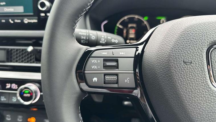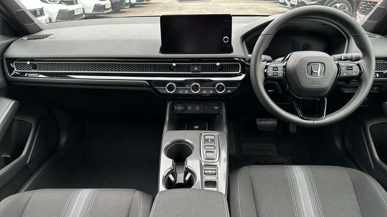 7" Multi information display screen, Adaptive cruise control, Adaptive motion for electric power steering, Adjustable speed limiter, Agile handling assist, BLIS (Blind Spot Information System) with Cross Traffic Monitor, Bluetooth hands free telephone connection, Driving modes, Economy mode, Electric power steering wheel with variable gear ratio steering, Emergency call service, Emergency stop signalling system, Forward collision warning, Front and rear parking sensors, Honda CONNECT with Navigation 9" touchscreen, AM/FM/DAB, Apple Carplay and Android Auto, live traffic info, Honda sensing, Idle stop, Intelligent speed limiter, Lane departure warning system, Lane keep assist, Low speed following, Power meter, Rear parking camera, Road departure mitigation, Tailgate, Traffic jam assist, Traffic sign recognition, Wireless apple carplay, Vehicle stability assist, 'Shark fin' mobile antenna, 2x USB Front socket (1 data & 1 charge), 8 Speakers, Digital Audio Broadcast (DAB) Tuner, Front tweeters, Steering wheel mounted audio controls, Aspherical driver door mirrors, Auto headlight adjuster, Auto headlights, Automatic coming/leaving home lighting function, Automatic rain sensing wipers, Body colour door handles, Chrome window garnish, Electric adjustable heated door mirrors, Electric front and rear windows, Electrically folding door mirrors, Headlight extension black, High beam assist, High level LED brake light, LED daytime running lights, LED front turn type, LED Headlights, LED rear lights, Material finish grille, Pop up hood, Privacy glass, Rear side wing doors, Rear wiper, Single hidden exhaust pipe, Variable front intermittent wipers, 3 seat bench in 2nd row, 60/40 split folding rear seat, Cargo accessory power socket, Cargo net hooks, Driver and front passenger seat armrests, Driver's electric lumbar adjustment, Driver's seat height adjustment, Dual climate control air conditioning system, Fabric upholstery, Front accessory power socket, Front map lights, Front/rear courtesy lights, Glovebox light, Heated front seats, Hybrid emblem, Isofix points/i size, Leather steering wheel, Meter Illumination white, Passenger seat back pocket, Platinum chrome interior door handles, Rear head restraints, Rear reading lights, Rear seat centre armrest, Single front passenger seat, Sunvisors with illuminated vanity mirrors, Tilt/telescopic adjustable steering wheel, Tonneau cover, Trunk light, USB Rear number 2 x charge, White ambient roof light, 3x3 point rear seatbelts, ABS+EBD+Brake assist, Airbags - driver and front passenger, Airbags - Knee (AS), Airbags - Knee (DR), Anti-whiplash front headrests, Brake hold function, Collision mitigation braking system, Collision mitigation throttle control, Deflation detection system, Driver SRS airbag (single stage inflation), Electronic parking brake with auto hold, Front and rear curtain airbags, Front and rear seat belts with emergency locking retractor (ELR), Front centre airbag, Front side airbags, Hill start assist, Low speed brake system, Manual child lock in rear doors, Passenger airbag deactivate switch, Rear airbags, Regenerative braking/deceleration paddle control, Immobiliser, Mirrors and windows key fob, Remote central locking with 2 jack knife keys, Security alarm, Selectable door unlock, Smart entry + Smart start, Superlocking, Tilt sensors, Ultrasonic security sensor, 17" 2 tone diamond cut alloy wheels, Tyre repair kit,