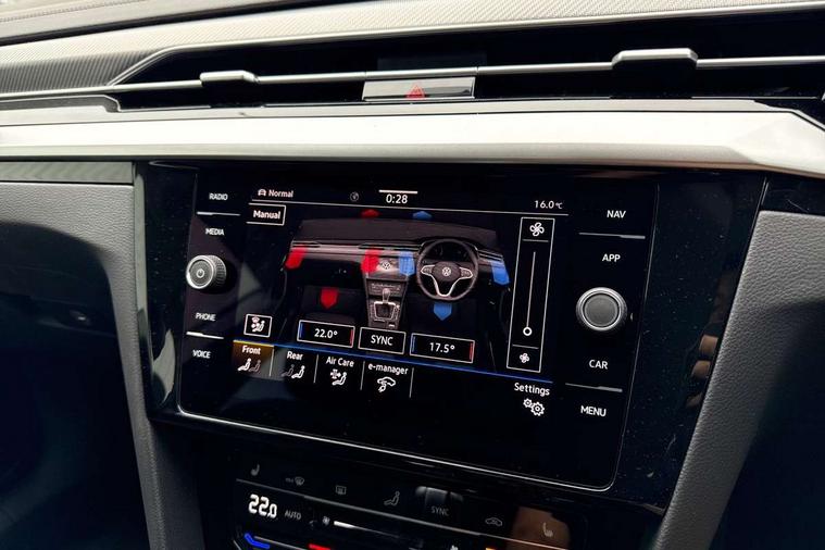 Adaptive cruise control (ACC) with speed limiter, front assist (reacting vehicles pedestrian and cyclists) and follow to stop, App connect including wireless Apple CarPlay, Camera for warning system, Digital cockpit with 10.25" high resolution TFT display screen with customisable menus and information, Driver alert system with fatigue detection, Driver profile selection including ECO function, Dynamic road sign display, eCall - Emergency call service for SOS calls to emergency response, Emergency assist, Hands free boot opening, Press and drive key, Progressive steering, Side scan lane change assist including rear cross traffic alert, Speedo and rev counter, electronic odometer, trip, service interval display and exterior temperature gauge, Tailgate, Travel assist - Lane keeping assist and traffic jam assist, Voice activation for telephone and navigation, 10 amp mode 2 charging cable, 16 amp mode 3 charging cable, Dynamic Chassis Control (DCC) - Adjustable dampers lowered by 15mm, Start/stop function with battery regeneration, 8 Speakers, Premium USB cable in choice of either Apple or Android smartphone compatibility, Auto dimming interior rear view mirror, Automatic headlights, Body colour door handles, bumpers and side skirts, Body coloured top and matt black lower door mirrors with integrated indicators, Chrome plated radiator grille inserts and light switch surrounds, Chrome side window surrounds, Dynamic headlight range control, Electric folding door mirror, adjustable, heated with front passenger exterior mirror lowering function, External USB-C data socket with increased charging performance in front, Front and rear electric windows, Front and rear stainless steel door sill protection, Front windscreen washers and wipers with 4x interval delay, Heat insulating glass windscreen, Heat insulating side and rear windows, Heated rear windscreen, Heated windscreen washer jets, LED 3rd brake light, LED rear combination lamp with dynamic indicators, LED rear number plate lights, Rain sensor, Rear boot spoiler, Rear fog lamp on one side and reversing lamp on both sides, Rear side wing doors, Rear wash/wipe, Tailpipes behind rear bumper, 12V socket in front centre console, 12V socket on rear of front centre armrest, 3 rear head restraints, 3 seat bench in 2nd row, 6 way electric adjustable ergoComfort driver seat with electric adjustable backrest, 60:40 split folding rear seat backrests with centre armrest, Air care climatronic 3 Zone electronic air conditioning with automatic air recirculation, Art velour vienna leather upholstery, Chrome trim on upper and lower air vents extending across cockpit, Driver and front passenger sunvisor with vanity mirror, Front + rear carpet mats, Front cupholders x 2, Front footwell illumination, Front sports comfort seats, Glovebox, Heated front seats, Height/reach adjust steering wheel, Isofix child seat preparation easy fit for two outer rear seats, Luggage compartment lighting, Power adjustable lumbar support on right front seat, Removable luggage compartment cover, Single front passenger seat, Split folding front seat backrest with front centre armrest, Stainless steel pedals, Two LED front reading light, 3 rear three point seatbelts, ABS+EBD+Brake assist, Child locks on rear doors, Driver airbag and front passenger airbags with deactivation switch including driver knee airbags, Drivers and front passengers safety optimised head restraints, Electronic parking brake, Electronic stability control (ESC) and Electromechanical brake booster, Front disc brakes, Front precrash preventive occupant protection, Front side airbags with curtain airbags, Hill start assist, Pro active occupant protection to detect critical situations with elevated accident potential from the front, Rear disc brakes, Three point height adjust front seatbelts + pretensioners, Two tone horn, Tyre pressure loss indicator, Warning buzzer for seatbelts if unfastened, Warning triangle, Alarm with interior protection with deactivation via infotainment system, Electronic engine immobiliser, Keyless entry system including start/stop button on centre console, Remote central locking, Aluminium decorative inserts, Chrome trim on lower doors in front and rear, Leatherette insert on door and side trim panel in foam film, Piano black decorative inserts in centre console, Tyre mobility kit,