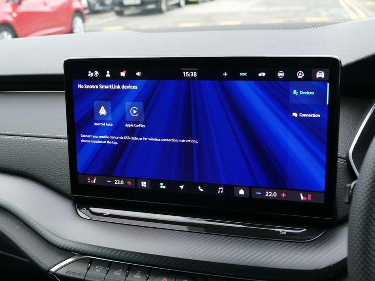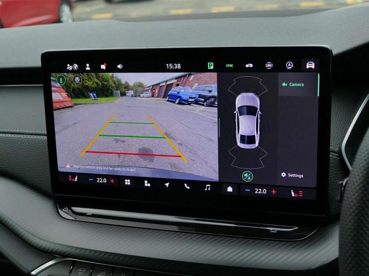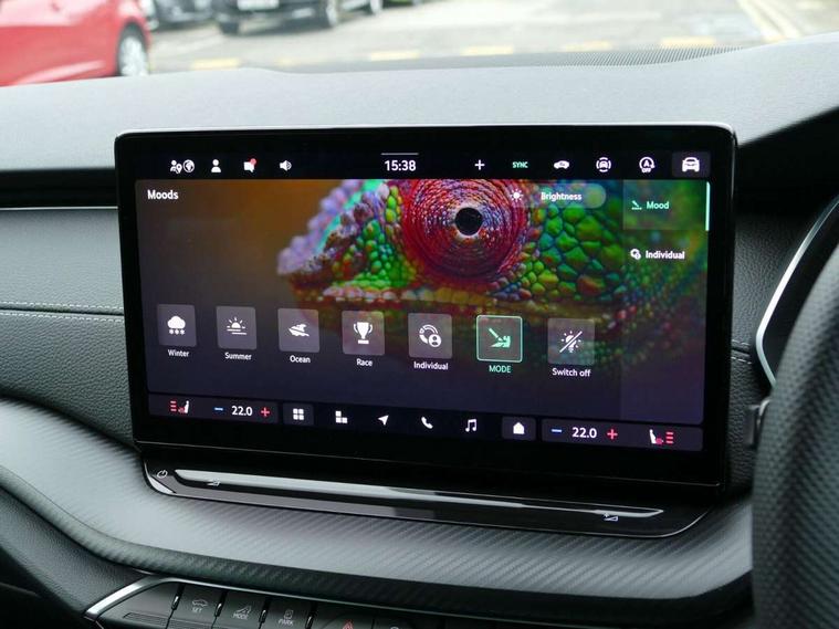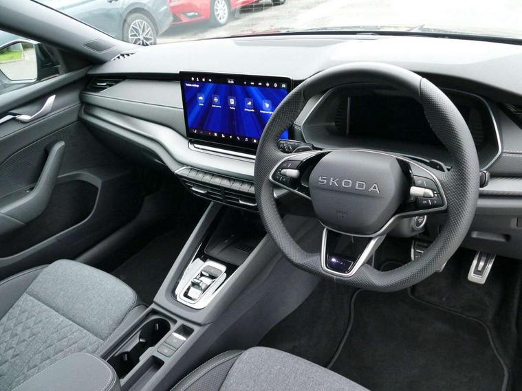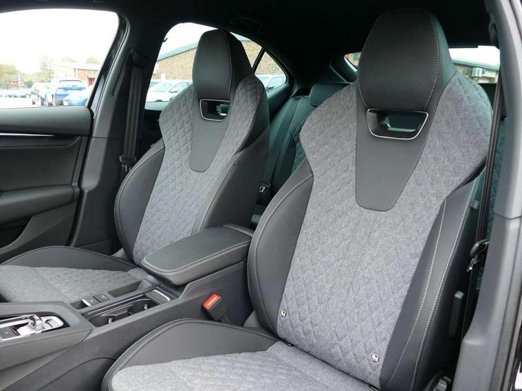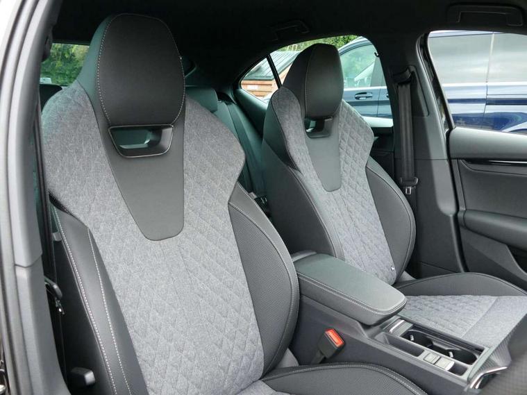 1x USB Typc C port in rear view mirror, 4x USB Type C ports - 2x in front centre console and 2x in rear (45W), Drive mode selection, Driver fatigue sensor, eCall emergency system, Front assist system, Progressive dynamic steering, Traffic sign recognition, Turn Assist, Virtual Cockpit - 10.25" digital display, Voice control system, Wireless charging (15W) with cooling function, Wireless SmartLink for Apple CarPlay and Android Auto, Sports suspension with 15mm lower, 13" touchscreen display with navigation, DAB Digital radio, Aero front windscreen wipers with intermittent function, Auto dimming rear view mirror, Body colour bumpers, Body colour door handles, Chrome strip in lower front bumper, Electric front and rear windows, Exterior gloss black sports styling including front grille, window surrounds, door mirrors and badging, Gloss black diffuser, Gloss black spoiler, Heated rear windscreen, High beam control, High level third brake light, Ice scraper in fuel cap, LED daytime running lights, Logo projection in front doors, Rain and light sensors, Rear fog light on one side and reversing lights on both sides, Rear privacy glass, Rear side wing doors, Rear wiper, 12 volt socket in boot, 3 rear headrests, 3 seat bench in 2nd row, 4 foldable roof handles, Aluminium pedals, Boot net programme, Electric auxiliary air heater, Front head restraints, Front sport seats, Heated front seats, Illuminated glovebox, Interior door handles in dark chrome, Jumbo Box storage, Luggage compartment lighting x2 lights, Mechanical rear seat release from boot, Parcel shelf - folding, Single front passenger seat, Steering wheel in black leather with black stitching, Storage compartment under passenger seat, Storage compartments in left and right of boot, Sun visors with mirrors, Sunglasses storage, Three spoke leather sports multifunction steering wheel with paddles, Ticket holder, Umbrella in door panel, Unsplit rear bench seat, split folding backrest with centre armrest with cupholder, SportLine Design Selection pack - Octavia, 3x3 point rear seat belts, Alarm with interior monitoring, tilt sensor and back up horn, Curtain airbags and front side airbags, Driver and front passenger airbags, Drivers knee airbag, Electronic parking brake, ESC including ABS, EBV, MSR, ASR, EDS, HBA, DSR, Front central airbag, Hill hold assist, ISOFIX on front passenger seat and outer rear seats, Passenger airbag deactivate switch, Three point seat belts in front and rear, Two tone horn, Tyre pressure monitor, Visual and acoustic seat belt reminder, Warning reflectors in front door, Anti-theft wheel bolts, Keyless entry and start/stop, Remote central locking, Gloss black air vent surrounds,