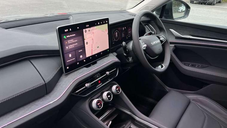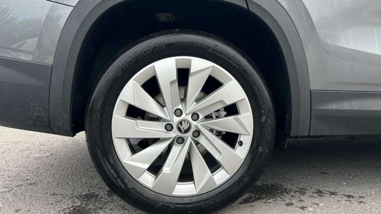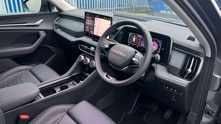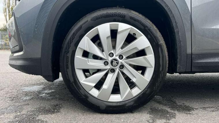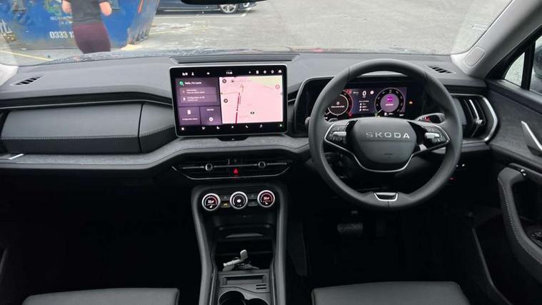 13" satellite navigation touchscreen display, Blind spot detection with door exit warning, Bluetooth system, ChatGPT functionality, Driver alert - Fatigue and drowsiness monitor, Dry display cleaner, Emergency call, Front and rear parking sensors, Front cross traffic assist, Lane assist, PAS, Rear traffic assist, Tailgate unlocking from outside, Traffic sign recognition, USB C Port x 2 in front centre console, Virtual Cockpit - 10.25" digital display, Voice control system, Wireless charging for two smartphones (15W) with cooling function, Wireless SmartLink for Apple CarPlay and Android Auto, Stop/start function, 2x USB-C in the rear, DAB Digital radio, Aero front windscreen wipers with intermittent function, Auto dimming rear view mirror, AWL (all weather lighting) and all weather light with cornering function, Black wheel arch surrounds, Body colour bumpers, Body colour door mirrors and handles, Cornering light and poor weather light, Electric folding /adjustable/separted heated/folding door mirrors, auto dimming with boarding sports and memory function, Electric front and rear windows, Exterior black decorative trims, Front grille with horizontal light strip, Heat insulating glass in windshield, Heated rear window, Ice scraper in fuel tank cap, Invisible tailpipe, LED daytime running lights, LED matrix headlights with AFS and LED fog lights, LED rear light with welcome effect and dynamic turn signals, LED third brake light in rear spoiler, Light assistant with automatic headlight control and coming home feature, Logo projection in door mirrors, Multiple matrix beam, Privacy glass, Rear roof spoiler, Rear side wing doors, Rear window wiper, Red decorative strip between rear LED lights, Safety reflectors on front and rear doors, Unique dark chrome design logo on alloy wheels, Window control switches with black trim, Windscreen wipers with rain sensor, Without engine designation, 1.5l bottle holder points in all door, 1x centre rear reading light, 2 seat bench in 3rd row, 2 spoke multi-function leather heated steering wheel with paddle shift, 3 configurable smart dials with 32mm coloured display, 3 seat bench in 2nd row, 4 foldable roof handles with rear coat hooks, Ambient interior lighting - Dashboard, front-door stowage compartments, front and rear door panels and footwell lighting, Automatic gear selector on steering column, Chrome interior door handles, Driver/front passenger reading lights, Fabric headlining, Fixed bench 40:60:40 split folding backrests, Front and rear floor mats, Front centre armrest with jumbo box storage compartment, cup holder and 12V socket, Height adjustable front headrests, Isofix child seat fittings in outer middle row rear seats and front passenger with top tether, Manually adjustable steering column, Pollen filter, Rear centre armrest with cupholders, Rear seat boot backrest release, Single front passenger seat, Skoda lettering on steering wheel, Storage pocket including mobile phone pockets on the backs of the front seats, Sunvisors with illuminated vanity mirrors, Three rear height adjustable headrests, Ticket holder on A Pillar, Tri zone climate control, Umbrella in door panel x1 made from sustainable materials, Upper and lower glovebox with card holder and coin compartment, USB C port by rear view mirror for charging only (15W), Exterior styling pack - Kodiaq, Auto door release and activation of warning lights in the event of an accident, Driver and front passenger airbag with knee airbag and front passenger airbag deactivation, Electric child locks, Electronic parking brake, ESC (incl. ABS+EMD+MSR+ASR+EDL+HBA+DSR+RBS+ESBS+MCB+TSA+XDS), Front assist with braking reaction to vehicles, pedestrians and cyclists, Front disc brakes, Fuel cut off safety device, Height adjustable front 3 point seatbelts + pretensioners, Hill hold assist, Junction assist with automatic emergency braking, Rear disc brakes, Safety vest holder in door, Seat belt reminder for all seats, Three point rear seat belts, Two tone horn, Tyre pressure monitor, Anti-theft wheel bolts, Immobiliser, Remote central locking with 2 keys,