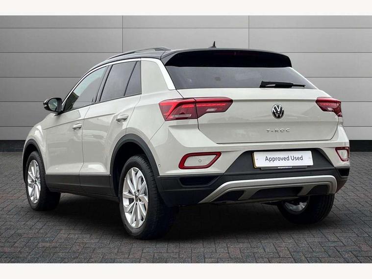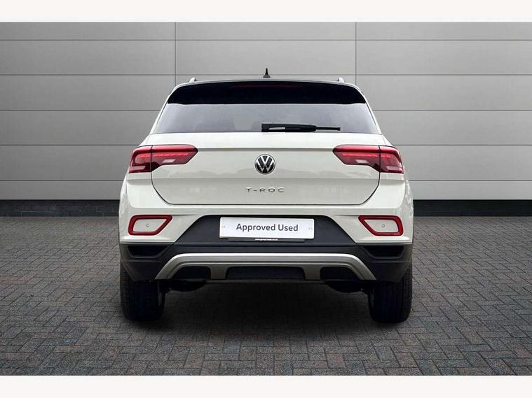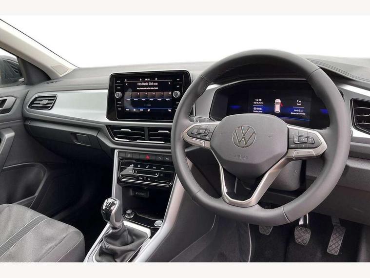 Advanced driver attention and drowsiness monitor, Dynamic road sign display, Emergency call service, Lane keeping system Lane Assist, Mobile phone interface, Modified key software - reduce switch off time for key status change to Long no motion, Online services, Park assist including front and rear parking sensors, Power assisted speed sensitive steering, Rear view camera, Service interval indicator, Tailgate/trunk lid release from outside, Think blue trainer driver tips and journey analysis, Warning sound and light for front seatbelts unfastened, Wireless app connect, Battery regeneration during braking, Front shock absorption, Rear shock absorption chassis with increased ride height, Start/stop function with battery regeneration, DAB Digital radio, Diversity antenna for FM reception, Music playback - MP3, WMA and AAC files, Premium USB cable in choice of either Apple or Android smartphone compatibility, SD card slot, Simultaneous pairing of 2 compatible mobile devices, Title and cover art display, We Connect and We Connect Plus functionality, Auto dimming interior rear view mirror, Automatic hazard lights activation under emergency braking, Automatic headlight control with LED separate daytime running lights with coming/leaving home function, Black roof rails, Body coloured bumpers and radiator grille with chrome trim and front fog lamps with chrome bezel, Body coloured exterior mirror housings and door handles, Electrically adjustable and heated door mirrors, Extended roof spoiler, Exterior mirrors aspherical on driver side, convex on front passenger side, External USB type C socket and charging sockets, Front windscreen wiper with intermittent wipe and 4 position delay, Heated rear window, LED 3rd brake light, LED rear combination lamps, LED rear number plate lights, Power windows with comfort operation and circuit breaker, Privacy glass for rear side windows and rear window, Rain sensor, Rear exhaust tailpipe, Rear fog light on one side and reversing lights on both sides, Rear side wing doors, Rear wash/wipe with intermittent wipe setting, Remote electrically foldable door mirrors, puddle lights and reverse activated passenger's door mirror, 12V power socket in centre console, 3 rear head restraints, 3 seat bench in 2nd row, 4 load lashing points in luggage compartment, Air care climatronic air conditoning system with active combination filter and 2-zone temperature control, Black stitching for floor mats, Ceramique roof liner, Cloth upholstery, Door and side trim panel in cloth, Drawer under drivers seat, Driver/front passenger seat height adjustment, Front centre armrest, Front comfort sports seats, Front cupholders x 2, Front reading light, Front seat back storage pockets, Glove compartment door with light, Instrument lighting, white adjustable panel illumination, Interior ambient lighting and surround lighting, Interior light delay, Isofix child seat preparation, Leather gearshift handle, Load-through provision with cup holder when folded down ('Unsplit rear seat bench, split folding backrest, with centre armrest), Luggage compartment lighting, Lumbar support for driver's and front passengers seat, Non-folding front passenger seat backrest, Single front passenger seat, Storage compartment in left and right luggage area, Storage compartment in rear doors, Storage compartments in driver and front passenger doors, Sunvisors with illuminated vanity mirrors, Variable boot floor, height adjustable and removable, Driver assistance pack without proactive passenger protection - T-Roc Life/Match, 3 point height adj front seatbelts + pretensioners, 3 point seatbelts in outer rear with ECE label, ABS, Child locks on rear doors, City emergency braking and pedestrian monitoring, Driver and front passenger airbag with front passenger airbag deactivation, Driver and front passenger safety-optimised head restraints, Drivers seatbelt reminder, Electronic parking brake, Electronic Stability Control (ESC) inc EDL (Electronic Differential Lock) and ASR (Traction Control), Front and rear passengers curtain airbag system including front side airbags, Front disc brakes, Hill start assist, Predictive pedestrian protection, Rear disc brakes, Two tone horn, Tyre pressure loss indicator, Volkswagen roadside assistance, Alarm with interior protection, Keyless locking and starting system keyless access with safelock, Pewter matt decorative inserts for intrument panel, centre console and door panels at the front, Trims for alloy wheels,