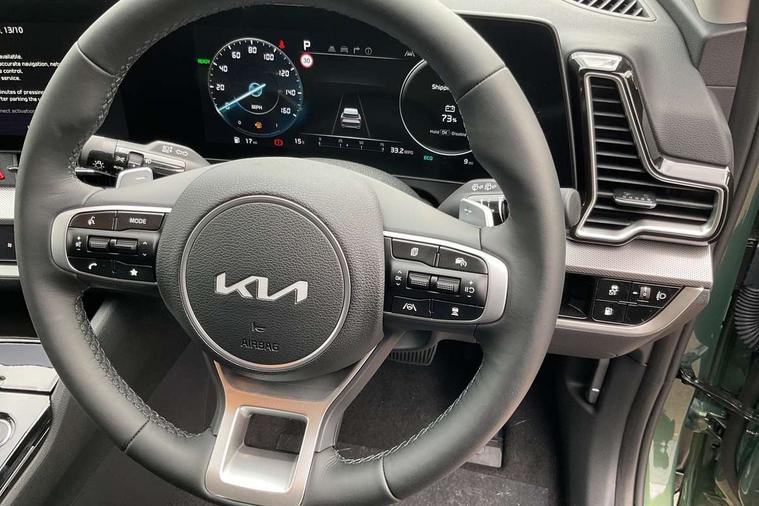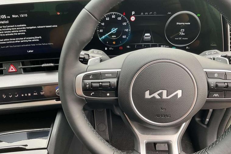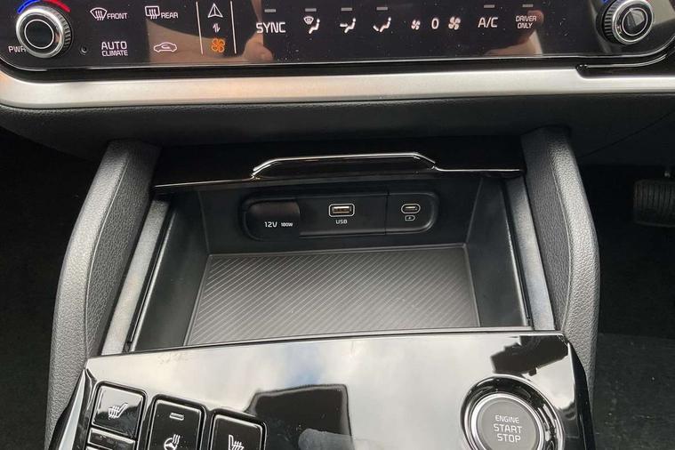 12.3" Driver display screen, 12.3" Touchscreen navigation system, 2 rear USB-C ports, Apple car play/Android Auto, Drive mode selector, Driver attention warning, E-call, Emergency stop signalling system, Forward collision avoidance assist (FCA) - city/pedestrian/cyclist/junction covering, Front and rear parking sensors, Highway Driving Assist (HDA), Intelligent speed limit assist, Kia Connect (UVO), Lane Following Assist (LFA), Lane keep assist, Low washer fluid warning, Motor driven power steering, Rear view monitor, Reversing camera system integrated into centre fascia screen, Smart cruise control with stop and go functionality, Speed limiter, Tailgate, Trip computer, Windscreen washer level indicator, Terrain mode select (Mud, Snow, Sand), 1x USB-C port in front, 6 speaker audio system, Bluetooth audio streaming, DAB Radio with MP3, Steering wheel mounted audio controls, USB C type charging ports on centre console, USB port for connection of a media device, All round electric windows with drivers and front passenger auto up/down function, Auto dimming rear view mirror, Automatic headlight control system, Automatic window defogger, Black bumpers with silver accents, Black radiator grille with silver surround, Black side sill and wheel arch body mouldings, Body colour door mirrors, Body colour exterior door handles, Electrically adjustable/heated/folding door mirrors with LED indicators, Heated rear window, High beam assist, Interior electrochromic mirror, LED daytime running lights, LED front fog lamps, LED headlamps (low and high beam - MFR type), LED High mounted stop light, LED rear combination lamp, Rain sensing wipers with aero blades, Rear fog lamp, Rear privacy glass, Rear side wing doors, Rear spoiler, Rear wiper, Satin finished beltline, Silver front and rear skid plate, Silver roof rack, Silver window surround, Tinted rear glass, Trailer stability assist, 12V power socket in front centre fascia and luggage compartment, 2nd row personal lamps, 3 seat bench in 2nd row, 3 x passenger assist grips, 40/20/40 split folding rear seat, All-round height adjustable headrests, Automatic air conditioning, Centre console storage box, Cloth/artificial leather upholstery, Cupholders in rear armrest, Door courtesy lamps, Drink holder at centre armrest, Driver and front passenger side sunvisors with illuminated vanity mirrors, Drivers seat power lumbar support, Electric height adjustable front seats, Front and rear door storage, Front cabin, rear & luggage compartment lights, Front seat and rear pockets, Gear shift indicator, Glovebox illumination, Heated front and outer rear seats, Heated steering wheel, ISOFIX Child seat top tethers and anchor fixings outer rear seats, Leather steering wheel, Luggage area load cover, Luggage area parcel shelf, Luggage board, Luggage compartment under floor storage, Luggage net with hooks, Manual adjust steering wheel, Metal paint interior door handles, Overhead console lamp, Paddle shift controls, Rear air conditioning, Rear cabin light, Rear coat hooks, Single front passenger seat, Ventilation ducts to rear compartment, Active front headrests, All round 3-point seatbelts, Anti-lock braking system (ABS), Dual front side airbags, Dual horn, Dynamic brake control, Electronic parking brake with auto hold function, Electronic stability control with downhill brake control, Front passenger airbag cut-off switch, Front seatbelt pretensioners + load limiters, Height adjustable front seatbelts, Hill start assist control (HAC), Impact sensing auto door unlocking, Multi collision brake assist, Rear airbags, Rear door child safety locks, Rear seat alert system, Seatbelt reminder warning, Traction control, Twin curtain airbags, Twin front airbags, Tyre pressure monitoring system, Vehicle stability management, Customisable automatic door locking, Customisable automatic door unlocking, Door deadlocks, Engine Start/Stop Button with Smart Entry System, Locking wheel nuts, Smart key with motion sensor, Speed sensitive auto door locking, Thatcham category 2 security alarm and immobiliser, Visible vehicle identification number, Aluminium pattern finish centre fascia and door garnish, 19" Alloy wheels, Tyre mobility kit,