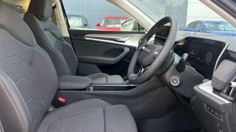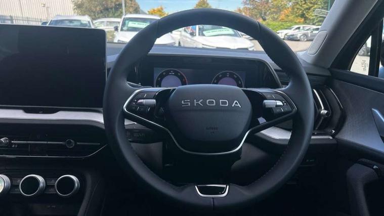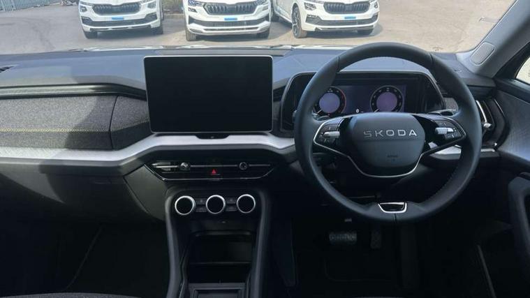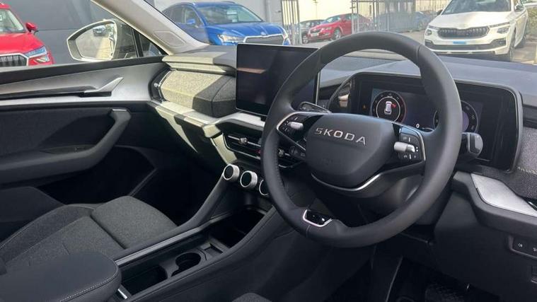 13" satellite navigation touchscreen display, Blind spot detection with door exit warning, Bluetooth system, ChatGPT functionality, Driver alert - Fatigue and drowsiness monitor, Dry display cleaner, Emergency call, Front and rear parking sensors, Front cross traffic assist, Lane assist, PAS, Rear traffic assist, Rear view camera, Tailgate unlocking from outside, Traffic sign recognition, USB C Port x 2 in front centre console, Virtual Cockpit - 10.25" digital display, Voice control system, Wireless charging for two smartphones (15W) with cooling function, Wireless SmartLink for Apple CarPlay and Android Auto, Stop/start function, 2x USB-C in the rear, 8 Speakers, DAB Digital radio, Aero front windscreen wipers with intermittent function, All weather light, Auto dimming rear view mirror, Black wheel arch surrounds, Body colour bumpers, Body colour door mirrors and handles, Cornering light and poor weather light, Electric folding /adjustable/separted heated/folding door mirrors, auto dimming with boarding sports and memory function, Electric front and rear windows, Exterior black decorative trims, Heat insulating glass in windshield, Heated rear window, Ice scraper in fuel tank cap, Invisible tailpipe, LED daytime running lights, LED front fog lamps, LED Headlights, LED rear fog light, LED rear lights, LED third brake light in rear spoiler, Light assistant with automatic headlight control and coming home feature, Logo projection in door mirrors, Rear roof spoiler, Rear side wing doors, Rear window wiper, Safety reflectors on front and rear doors, Unique dark chrome design logo on alloy wheels, Window control switches with black trim, Windscreen wipers with rain sensor, Without engine designation, 1.5l bottle holder points in all door, 1x centre rear reading light, 2 seat bench in 3rd row, 3 configurable smart dials with 32mm coloured display, 3 seat bench in 2nd row, 4 foldable roof handles with rear coat hooks, Ambient interior lighting - Dashboard, front-door stowage compartments, front and rear door panels and footwell lighting, Automatic gear selector on steering column, Chrome interior door handles, Driver/front passenger reading lights, Fabric headlining, Fixed bench 40:60:40 split folding backrests, Front and rear floor mats, Front centre armrest with jumbo box storage compartment, cup holder and 12V socket, Height adjustable front headrests, Isofix child seat fittings in outer middle row rear seats and front passenger with top tether, Manual height adjustment for front passenger seats and thigh support extender, Manual lumbar support for front passenger seat, Manually adjustable steering column, Pollen filter, Rear centre armrest with cupholders, Rear seat boot backrest release, Single front passenger seat, Skoda lettering on steering wheel, Storage pocket including mobile phone pockets on the backs of the front seats, Sunvisors with illuminated vanity mirrors, Three rear height adjustable headrests, Ticket holder on A Pillar, Tri zone climate control, Umbrella in door panel x1 made from sustainable materials, Upper and lower glovebox with card holder and coin compartment, USB C port by rear view mirror for charging only (15W), Variable boot floor, Auto door release and activation of warning lights in the event of an accident, Driver and front passenger airbag with knee airbag and front passenger airbag deactivation, Electric child locks, Electronic parking brake, ESC (incl. ABS+EMD+MSR+ASR+EDL+HBA+DSR+RBS+ESBS+MCB+TSA+XDS), Front assist with braking reaction to vehicles, pedestrians and cyclists, Front disc brakes, Fuel cut off safety device, Height adjustable front 3 point seatbelts + pretensioners, Hill hold assist, Junction assist with automatic emergency braking, Rear disc brakes, Safety vest holder in door, Seat belt reminder for all seats, Three point rear seat belts, Two tone horn, Tyre pressure monitor, Alarm with interior monitoring and tilt sensor with safe function, Anti-theft wheel bolts, Immobiliser, Remote central locking with 2 keys, Breakdown kit, Tool kit,