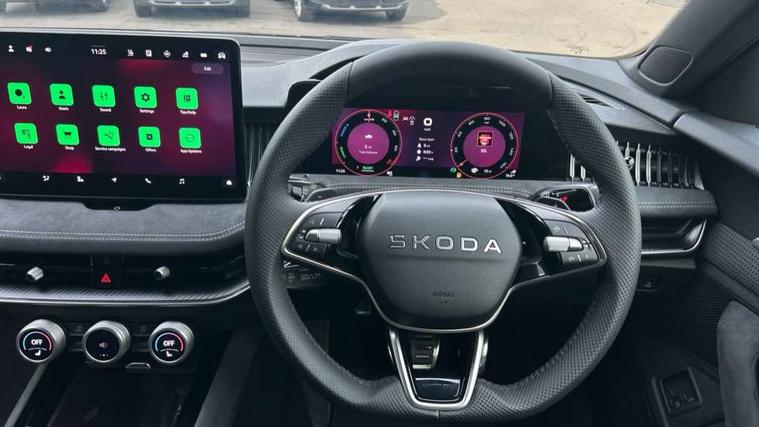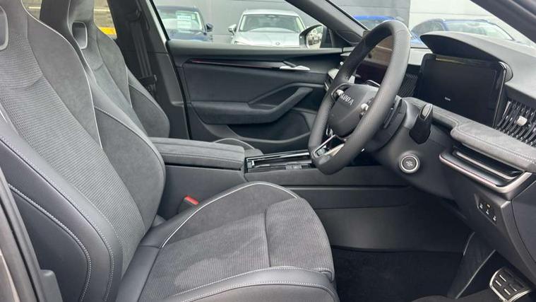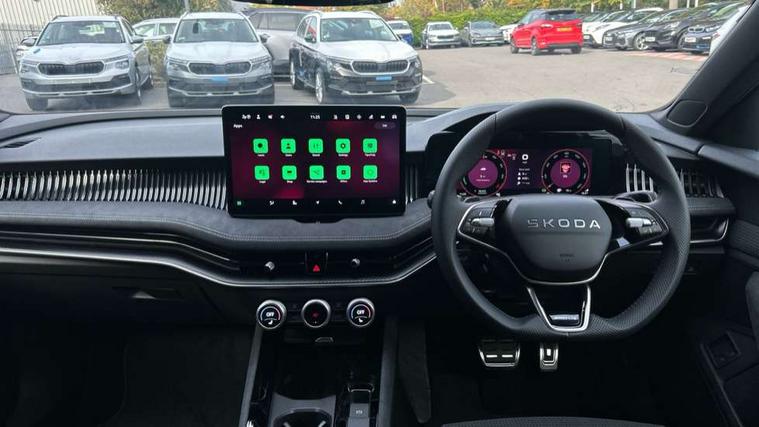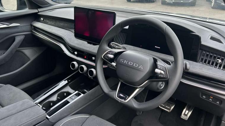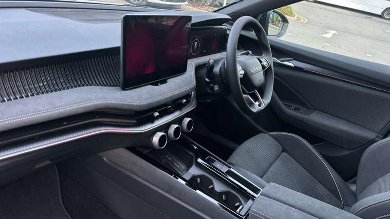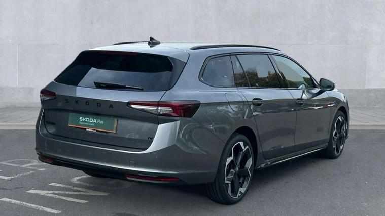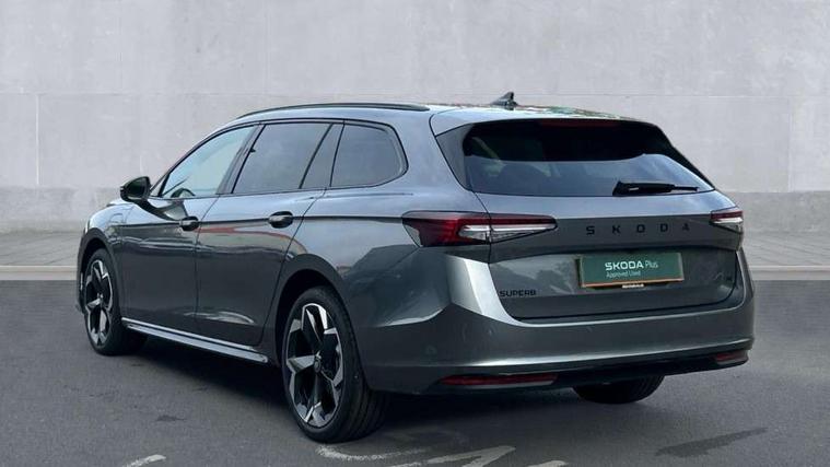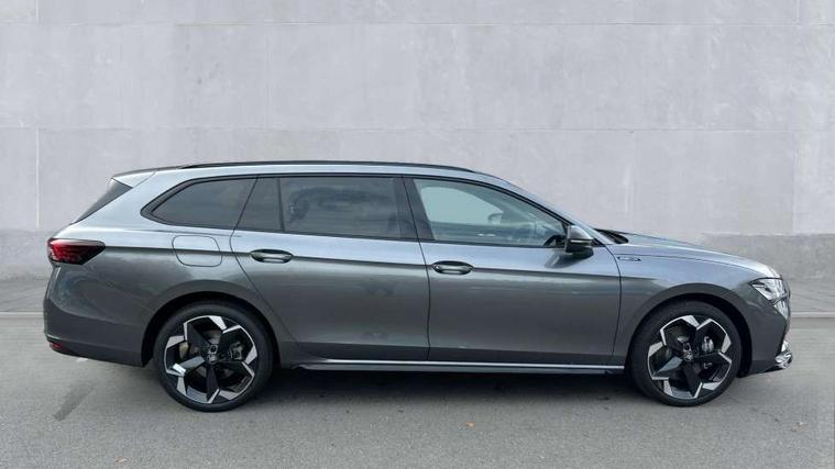 13" touchscreen display with satellite navigation, 4x USB-C ports (2x in front centre console and 2x in rear) (45W), Adaptive cruise control with speed assist, lane assist plus and traffic tram assist, Blind spot detection with door exit warning, Bluetooth system, CareConnect and Emergency Call, ChatGPT functionality, Drive mode selection, Driver fatigue sensor, Front assist with extended predictive pedestrian protection, Front cross traffic assist, PAS, Quick start all heating software functionality, Stop/start engine system, Traffic sign recognition, Turn assist with evasive assistance, Virtual Cockpit - 10.25" digital display, Voice control system, Washer for rear camera, Wireless charging for one smartphone (15W) with cooling function, Wireless smartlink apple carplay, SmartLink+ android auto, Dynamic chassis control plus with progressive dynamic steering, Mode 3 charging cable, DAB Digital radio, Display cleaner, FM radio connection, Web radio connection, Acoustic side windows and interior noise suppression, Backdrop lighting, Black exterior styling window and grille surrounds, Black roof rails, Body colour door handles, Dynamic range control with poor weather light and integrated fog light, Electrically adjustable, heated, folding and driver side auto-dimming door mirrors with memory function, integrated indicators and logo projection, Frameless auto-dimming rear view mirror with USB-C, Gloss black door mirrors, Ice scraper in fuel tank cap, LED 3rd brake light, Light assist with High beam control, Light assistant (coming/leaving home/tunnel light), Privacy glass, Rear fog lights (x2), Rear roof spoiler, Rear side wing doors, Rear windscreen wiper, Skoda lettering in black, Sportline badging, Sports bumpers, Windscreen wipers with rain sensor, 12V socket 1x centre console 1x boot, 14-way electrically adjustable, memory, front seats with 4-way pneumatic lumbar support, and extendable thigh support with smart comfort entry aid, 2x cargo elements in boot, 2x light in boot, 3 seat bench in 2nd row, 4x foldable bag hooks in boot, 60:40 Split folding rear seats, Aluminium pedals, Bottle holders in the front doors 1.5 litre bottle and rear 1.5 litre bottle, Cup holder in front with easy open mat, Front armrest with storage box, Front sports seats, Heated and ventilated front seats, Height adjustable front and rear head restraints, Illuminated glovebox, Interior lights with control switches, Isofix child seat fittings in outer rear and front passenger seats, LED front and rear reading lights, Single front passenger seat, Skoda lettering on steering wheel, Storage compartment with cover, Storage pockets on back of front seats, Sun visors with illuminated vanity mirrors, Ticket holder on A Pillar, Tri zone climate control, Umbrella in driver's door, Light and view package - Superb, Transport package - Superb Estate, 3 rear seatbelts, 8 Airbags - Front driver and passenger, front side driver and passenger, centre, curtain front and rear, drivers knee, Crew protect assist, Driver and passenger seatbelts with warning light, Electronic parking brake, ESC including ABS, EBV, MSR, ASR, EDS, HBA, DSR, RBS, CBC, multi-collision brake (MKB) and Auto hold, Hill hold assist, Power operated child lock in rear doors, Alarm with interior monitoring tilt sensor and back up horn, Backrest remote release from trunk, Electronic engine immobiliser, Keyless start/stop, Remote central locking with SAFE system, Third key, Walk away locking, Decorative front door sills, 19" Torcular polished black alloy wheels with anti theft wheel bolts, Tyre repair kit,