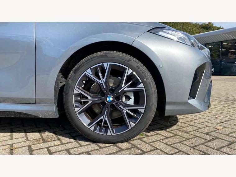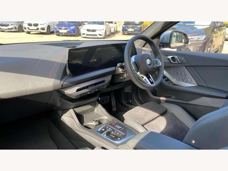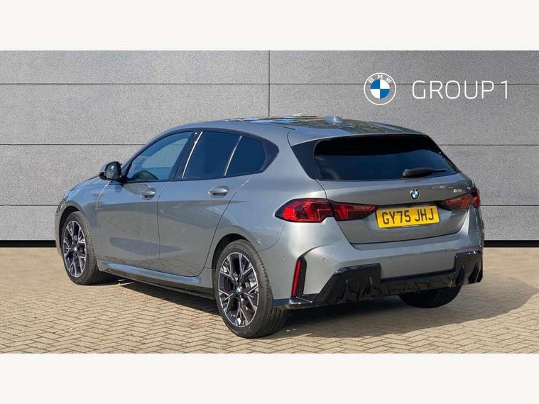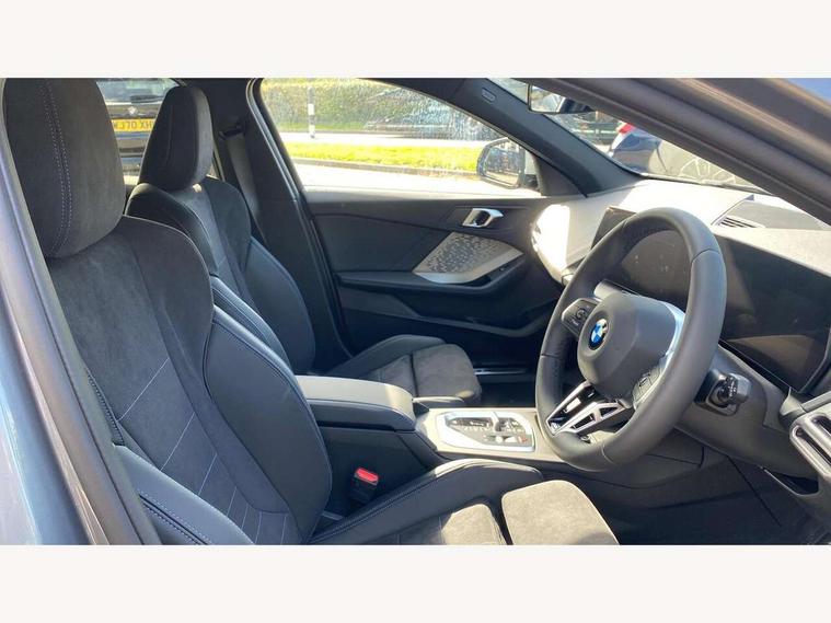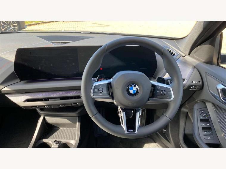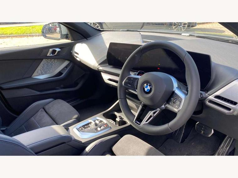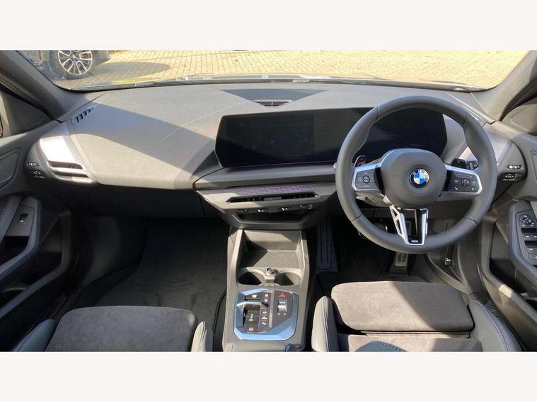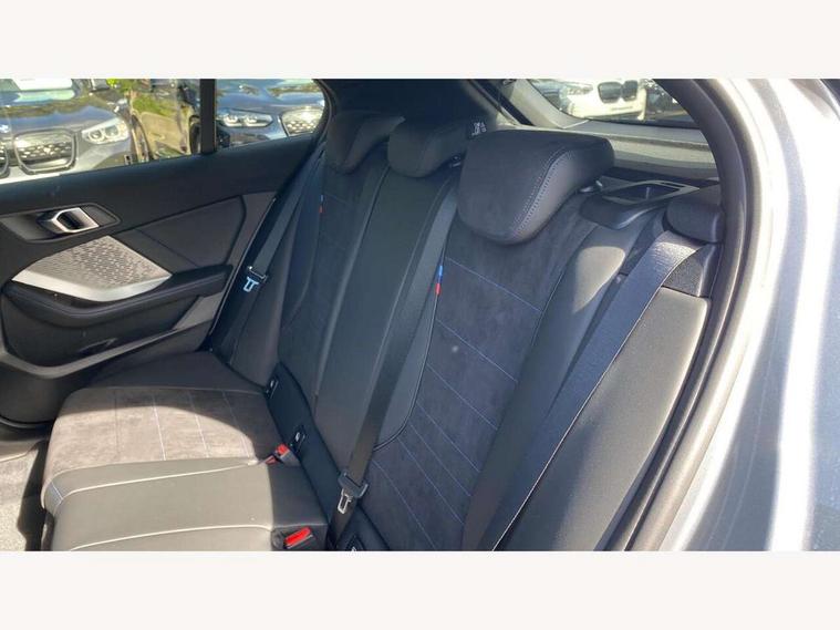 Active guard plus, Attentiveness assist, Bluetooth / WiFi interface for wireless connection of mobile terminal devices and audio streaming, BMW ConnectedDrive online services, BMW Live cockpit plus, BMW Teleservices, Check Control warning system for monitoring of lights and door/luggage compartment open warning, Eco pro mode, Electric power steering with Servotronic steering optimised at all speed ranges, Evasion assistant, Flat airvents in instrument panel with adjustable slats, Front and rear parking sensors, Front axle single joint with specific axle kinematics to minimise drive influences on steering + provide increased rigidity agile driving behaviour, Gearshift time display in manual mode, Integrated owners handbook, Left turn warning with brake function, My modes (Personal / Efficient / Sport), Oil sensor for level and grade, On board computer, Optimum shift indicator, Park assist including reversing assistant, lateral parking aid and reversing assist camera, Personal e-SIM, Personal Profile, Pull away assistant, Rigidly mounted rear subframe - Multi link construction with separate spring / damper configuration and excellent driving characteristics, Speed limit Info including no-overtaking indicator, Speed limiter, 49 litre fuel tank, Aluminium lightweight construction, Anti roll bar front and rear, Balancer shaft, Double VANOS twin scroll turbocharging system, Drive Performance Control, Electronic differential lock, Electronic selector lever, High precision injection, M Adaptive suspension, Petrol Particulate Filter, Steptronic transmission with double clutch, Twin tube gas filled shock absorbers with degressive characteristic curve, VALVETRONIC engine management, DAB Digital radio, Auto dimming rear view mirror, Automatic windscreen wipers and automatic headlight, Body colour door handles, Body colour roof trims, Chrome 'M' logo side designation, Chrome exhaust twin tailpipes round 90mm in left, Chrome kidney grille frame with Satin Aluminium struts, Direction indicator side lights in exterior mirrors, Electrically adjustable exterior mirror with mirror adjustment switch on drivers armrest and aspheric on driver side, convex on passenger side, Exterior M sport design elements, Fading support, Folding side mirrors with auto dimming/folding wing mirrors with auto dimming, Follow me home headlights, Front and rear bumper system with replaceable deformation elements, Front and rear electric windows with open and close fingertip control, anti trap facility and comfort closing, Front bumper panel with M specific design in vehicle colour with inserts in black high gloss, Front door sill finishers in black plastic with M designation in metallic look, Green tinted heat protection glazing, Heated rear window, High gloss black exterior mirrors, High gloss shadowline window frame, Recess cover mirror frames and B/C pillar embelisher trim, High level third brake light, Integrated front windscreen with washer jets, LED daytime running lights, LED eyebrow turn indicators, LED front fog lights, LED Headlights, Lightweight engineering, Matt black air guide grilles, Matt black wheel arch trim, Model badge on tailgate right, Nearside reverse light in rear light cluster, Preparation for high beam assistant, Rain sensor, Rear bumper panel with M-specific design in vehicle colour with inserts in black high gloss, Rear fog lights, Rear side wing doors, Rear window wiper, Shark fin antenna, Side sill covers with M specific design in body colour, Trailer stabilisation logic, Visible VIN plate, Welcome lighting, 12V power socket in front centre console with blanking plug, 3 rear seat head restraints, 3 seat bench in 2nd row, 3 spoke sports leather steering wheel with black leather and stitching, pearl chrome decorative finish, specific M Badge, Anthracite front and rear floor mats, Anthracite headlining, Black boot net with lashing eyes, Cargo function on 2nd seat row, Child seat ISOFIX attachment for two outer rear seats and front passenger seat with anchorage points, Conditioned based service, Driver and front passenger backrest net on rear, Driver and front passenger seat heating, Driver side folding compartment in instrument panel, Folding rear clothes hook, Footrest and pedals in black plastic, Four grab handles integrated in roof lining, Front and rear door pockets with bottle holders, Front and rear side armrest integrated into door trim, Front armrest with storage compartment, Gearshift paddles on steering wheel, Glove compartment, Height adjustable front head restraints, Luggage compartment for bag hooks on left and right, foldable luggage compartment liner and four lashing eyelets, Manual adjust steering wheel, Multi-function controls for steering wheel, Rear seat backrest with manual 60:40 split folding with 3 top tether clips integrated on rear of seat panels, Single front passenger seat, Storage compartment in centre console, Storage compartment in luggage compartment, Stowage of the parcel shelf in luggage compartment trim, Sun visors with vanity mirrors and insert tab, Two front centre console cupholders, Type C two USB ports in rear centre console, Upper retaining strap integrated into backrest rear panels, Connected pack professional - 1 Series, Interior lights pack - 1 Series, M Sport exterior styling aerodynamics pack - 1 Series, 2 tone horn, 3 point seatbelts on all seats, front pyrotechnic belt tensioners, stopper and belt force limiters, rear coded belt buckles, Airbags - Front driver/passenger, front and rear curtain head protection, front side, manual deactivation of front passenger airbag, Anti lock braking system (ABS) with brake assist, BMW emergency call, Brake drying, Braking readiness, Child proof locking system in rear door, Comfort modes, Cornering brake control, Crash sensor activating of airbags, Unlocking doors, hazard warning lights, interior light, safety battery terminal, Driver and front passenger seat belt security check, Dynamic stability control + (DSC+), Dynamic