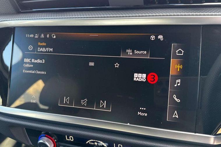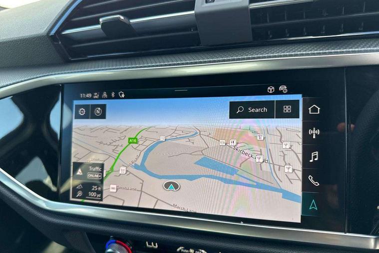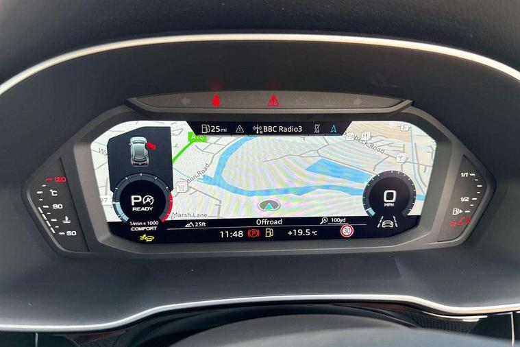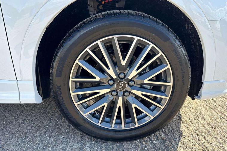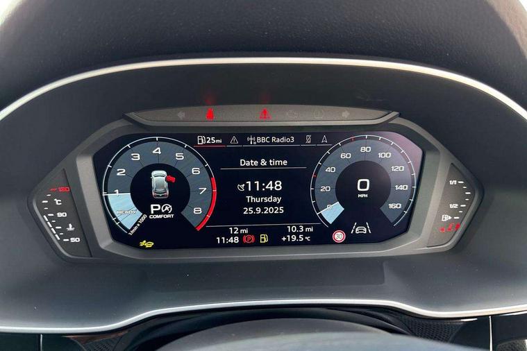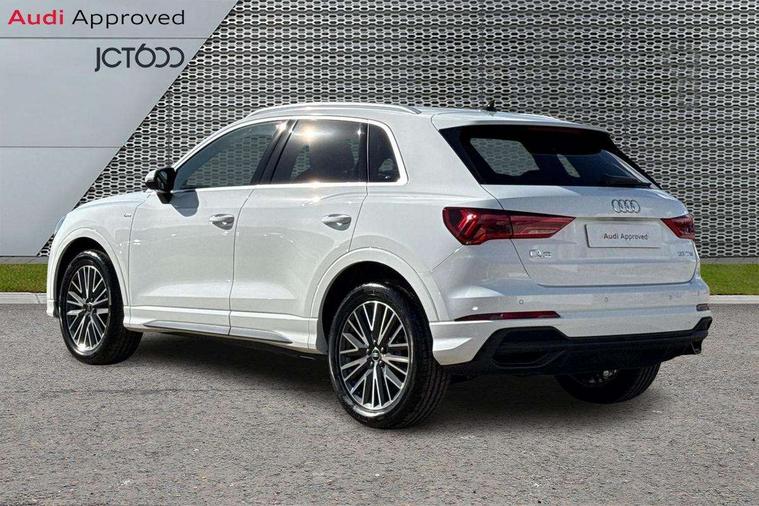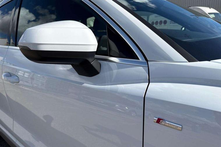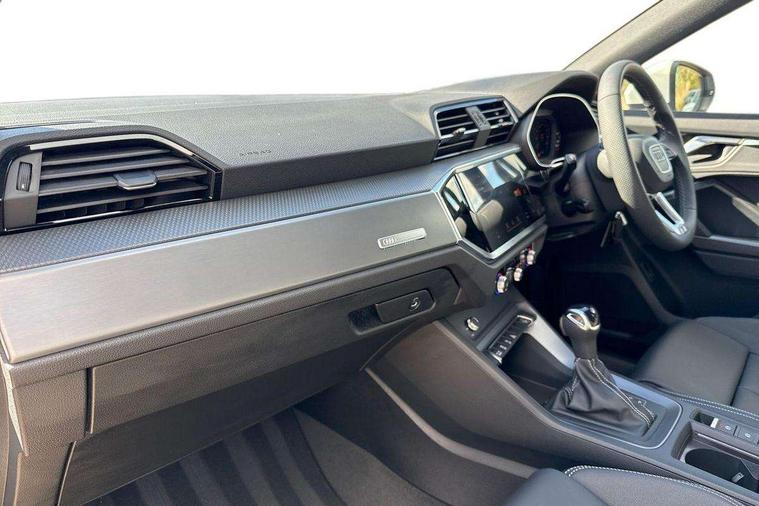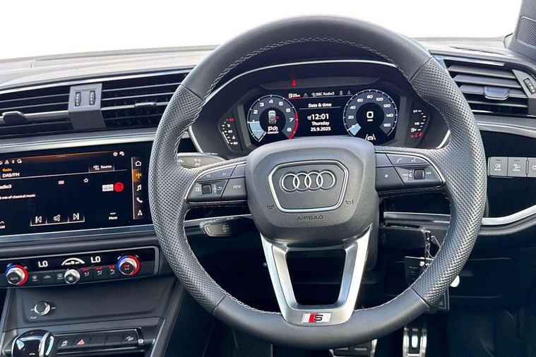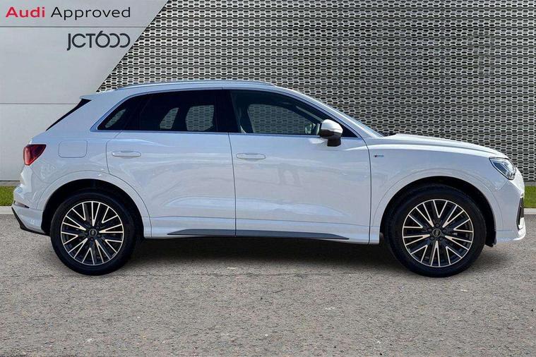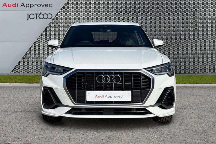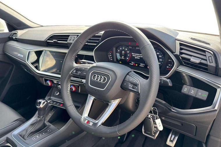 Amazon alexa Integration, Audi connect safety and service, Audi drive select, Audi lane departure warning, Audi Virtual Cockpit - 10.25" display, Bluetooth interface, Camera based traffic sign recognition, Distraction and Fatigue warning, Legal emergency call, MMI Navigation Plus with high resolution 10.1 inch touchscreen colour display, Power operated tailgate, Progressive steering, Service interval indicator, Smartphone interface includes wireless Apple carplay/Android Auto, Start stop system with recuperation, Voice control system with natural language interaction, Sports suspension, 2 USB-C ports with charge and data functions, 6 passive loudspeakers, DAB digital radio module, Acoustic windscreen, Aluminium roof rails, Aluminium window trim, Anthracite black radiator grille, Auto dimming door mirrors, Auto dimming frameless rear view mirror, Body colour front spoiler blade, Electrically folding, adjustable and heated door mirrors with integrated LED side indicators and kerb view function for passenger side, Front and rear electric windows, Front fog lights, Front side air inlets in matt platinum grey, Grille vertical bars in aluminium silver/Matt, High gloss black finish B and C pillars, LED Dynamic rear indicators, LED headlights with LED daytime running lights, LED rear lights, LED third brake light, Privacy glass dark tinted rear and rear-side windows (from B-pillar backwards), Rain and light sensors, Rear diffuser grille in grained matt black, Rear diffuser strip in matt anthracite black, Rear side wing doors, Rear wiper, S line badges on front wings, S Line front and rear bumpers and side skirts, Side skirt insert in matt Platinium grey, Variable front intermittent wipers, 12V socket in rear centre console, 3 seat bench in 2nd row, 3 spoke leather multifunction steering wheel features S badging and grips in perforated leather with contrast stitching, 40:20:40 folding with manual adjustment for 60:40 forwards/backwards position and backrest angle, Adjustable rear seat bench/backrest with centre armrest and cupholder, Black carpet mats, Black cloth headlining, Dual zone electronic climate control, Electric lumbar support, Front and rear black floor mats with contrast stitching in rock grey, Front and rear headrests, Front centre armrest, Height and reach adjustable steering wheel, Horizontal trim strip in matt platinum grey, Illuminated door sill trims with S logo, ISOFIX child seat mounting for front passenger with airbag deactivation and outer rear seat including top tether attachment point for outer rear seats, Luggage compartment sill protection in stainless steel, Manual front seats with height adjustment, Perforated leather gearknob, Single front passenger seat, Stainless steel pedals, Twin leather upholstery with front sport seats + S embossing, Non smoking pack - Q3, 3x3 point rear seatbelts, 6 airbags - Driver, front passenger, curtain and side windows, Audi pre-sense front with pedestrain and cyclist recognition, Electrically operated child locks on rear doors, Electromechanical parking brake, Electronic stabilisation control including ABS, ASR and EDL, Front seatbelt reminder, Hill descent control, Hill hold assist, Pre sense basic, Seatbelt monitoring, Tyre pressure warning, Warning triangle and first aid kit, Anti theft wheel bolts, Immobiliser, Remote central locking, Thatcham approved category 1 anti theft alarm, Aluminium look interior elements, Dark matt brushed aluminium inlay, Detail dashboard around MMI touch colour display in glass look, black with surround in aluminium look, Leatherette door armrest,