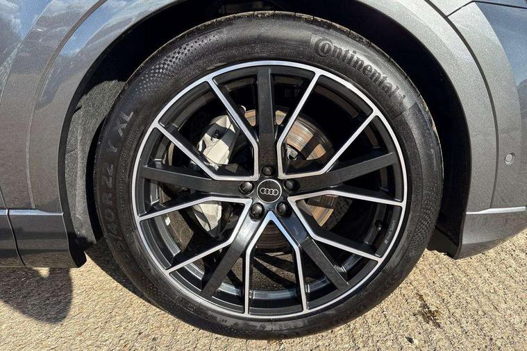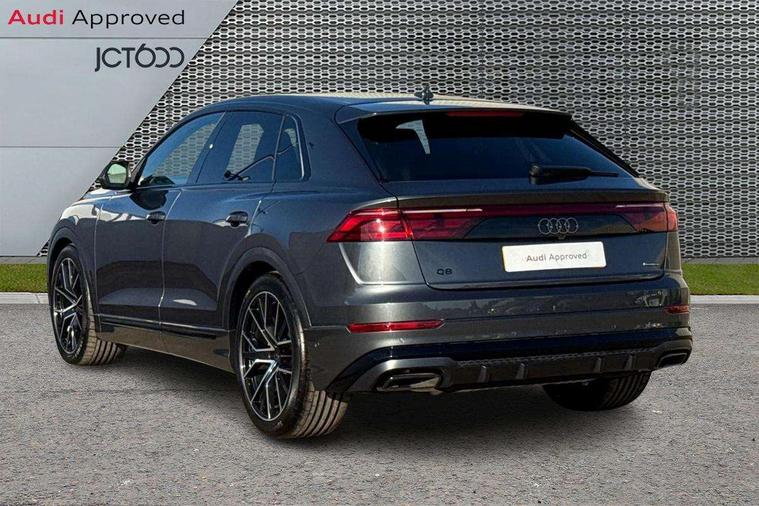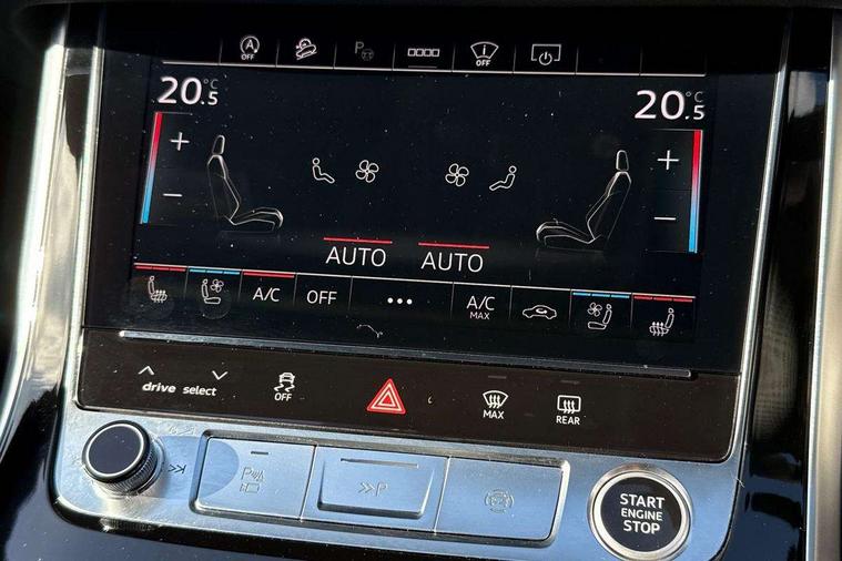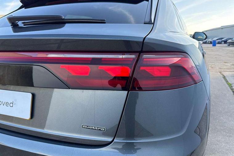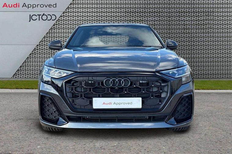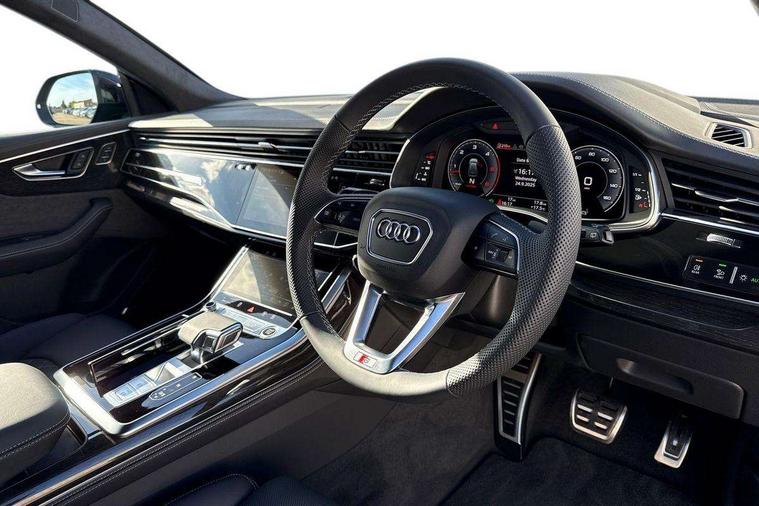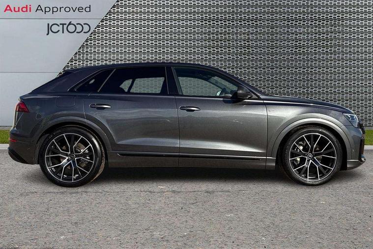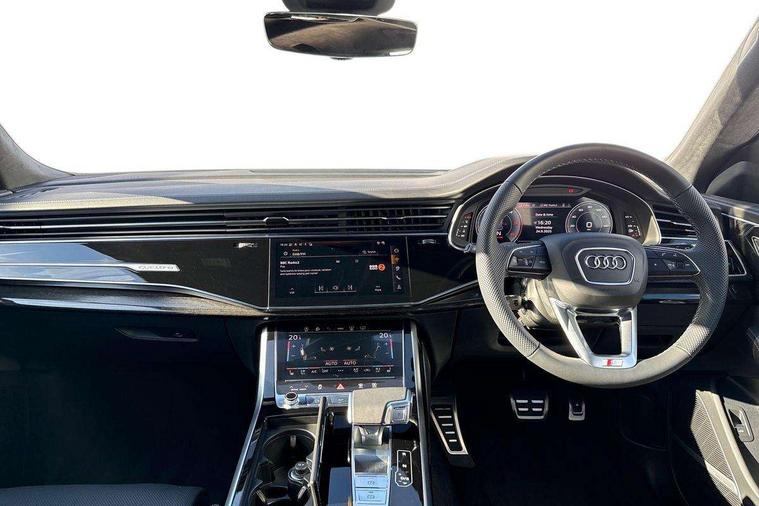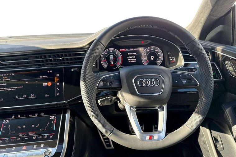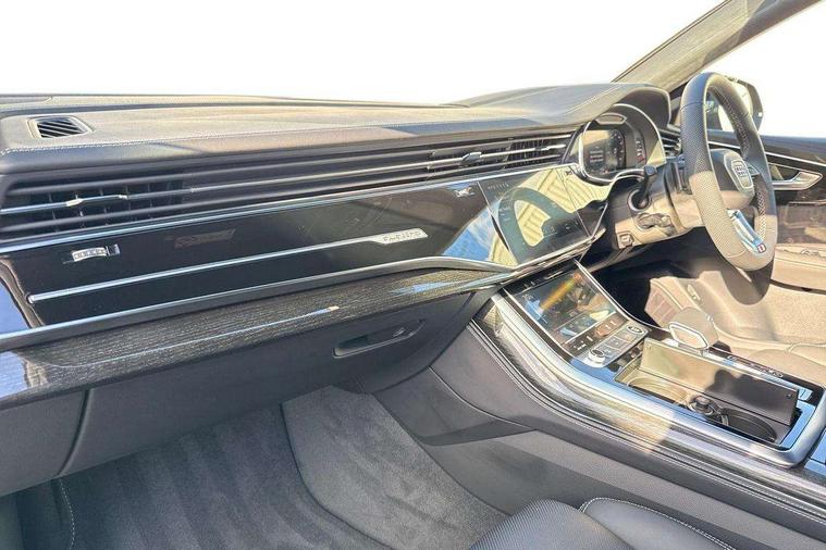 10.1" and 8.6" Dual colour touchscreens, 2 USB C ports with charging functionality in the rear, 360 degree camera with top view, All wheel steering, Audi application store, Audi connect safety and service (e-call), Audi connect with Amazon Alexa Integration, Audi drive select, Audi phone box light with wireless charging, Audi virtual cockpit plus, Automatic start/stop system, Bluetooth, Electro-mechanical PAS, Head up Display, Low washer fluid indicator, MMI navigation plus with MMI touch, Natural voice recognition, On board computer, Operating buttons in black, glass look with haptic feedback, Power door closure, Power operated tailgate, Remote park assist plus, Service interval indicator, Smartphone interface includes wireless Apple carplay/Android Auto, 48V Mild hybrid technology, Adaptive sport air suspension, Diesel particulate filter, Quattro all wheel drive with self locking centre differential, Audi music interface with 2 USB ports with charge and data functions, Aux-in socket, Bang + Olufsen sound system, DAB Digital radio, 3rd brake light, Adaptive windscreen wipers with integrated washer jets, Audi beam, Auto dimming frameless rear view mirror, Black exhaust tailpipes, Black single frame mask, Coming/leaving home lighting function, Digital OLED rear combination lamps, Electric front+rear windows, Electric panoramic glass sunroof, Electrically folding auto dimming/adjustable/heated door mirrors with memory function, LED side indicators and kerb view function for passenger side, HD Matrix LED headlights with Audi laser light, Headlight washers, Heat insulating glass in windshield, LED rear lights, LED signature daytime running lights, Loading edge protection in stainless steel, Platinum grey front spoiler lip and diffuser insert with honeycomb grille in black, Privacy glass - dark tinted rear and rear side windows from B-pillar backwards, Rain and light sensors, Rear side wing doors, Rear wiper, Singleframe grille surround in matte platinum grey, 3 bench rear seats in 2nd row, 3 spoke heated leather multi-function sport steering including paddle shift, 4 zone deluxe automatic climate control, 4-way lumbar support for front seats, 40:20:40 split folding rear bench seat, Black dinamica headlining, Comfort front centre armrest, Double sun visor with illuminated vanity mirror on driver and passenger side extendable, Driver and front passenger seat memory function for electrically adjustable front seats, Electric luggage compartment cover, Electric sunblind for the rear side windows and manual sunblind for the rear window, Front head restraints, Front/rear floor mats, Heated front and outer rear seats, ISOFIX child seat mounting for front passenger seat and 2 outer rear seats with top tether child seat mounting for all 3 rear seats, Luggage compartment sill protection in stainless steel, Massage and ventilation function for front seats, Power adjustable steering wheel, Rear centre armrest with 2 cupholders, Rear headrests, Seat cushion displaceable by 100mm in the ratio 60:40, Single front passenger seat, Stainless steel pedals, Valcona leather upholstery + front super sport seats with S embossed logo, Ambient lighting package plus - Q8, Black styling pack plus - Q8, City assist pack - Q8, Extended leather pack - Q8, Multi coloured extended LED Interior lighting pack - Q8, Tour pack - Q8 Vorsprung, 3 point seatbelts on all seats, Audi pre sense front, Convenience key with safelock, Driver and front passenger, front side and curtain airbags, Electromechanical parking brake, Electronic Stability Control (ESC) including ABS, ASR and EDL, Front passenger airbag deactivation, Hill descent control, Hill hold assist, Predictive pedestrian protection, Seatbelt monitoring, Traction control, Tyre pressure loss indicator, Warning triangle and first aid kit, Anti theft alarm with tow away protection, Anti-theft wheel bolts and wheel loosening detection, Electronically operated child lock, Immobiliser, Keyless go with remote central locking, Polished oak trim with grey finish inlay, Tool kit, Tyre repair kit,