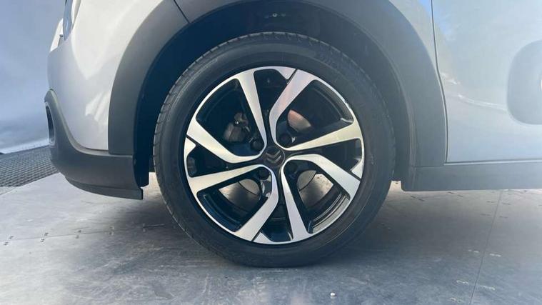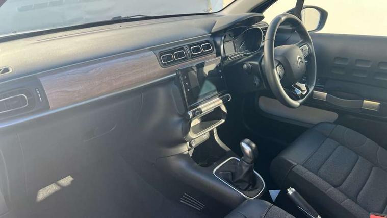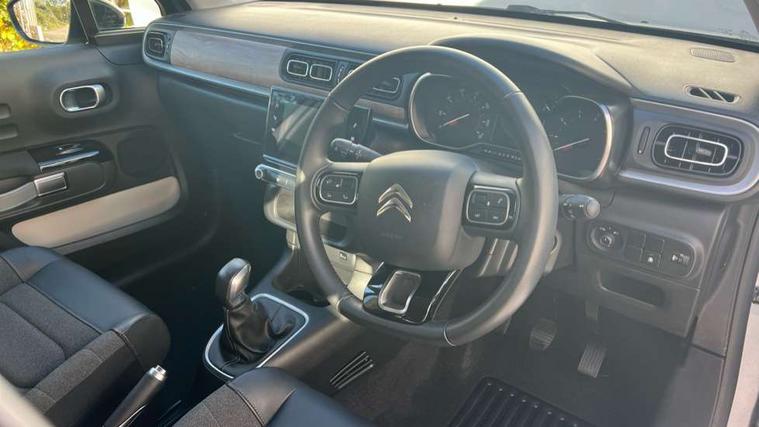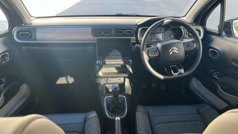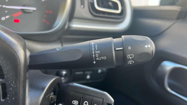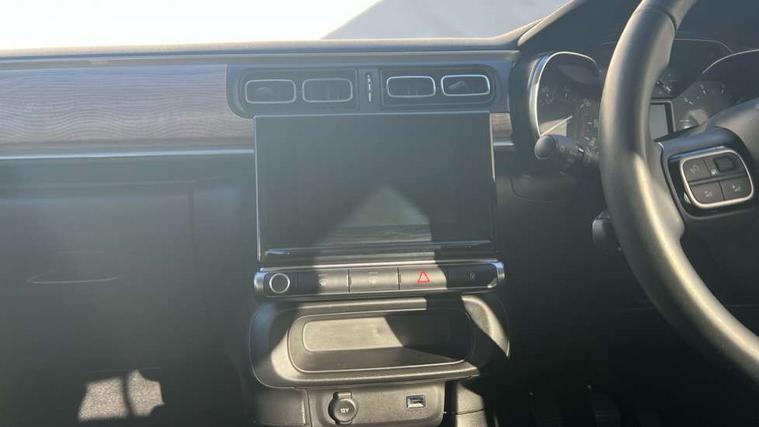 Citroen connect box emergency and assistance system, Coffee Break Alert, Cruise control + speed limiter, Exterior temperature display, Multi function trip computer, Rear parking sensors, Reversing camera, Satin chrome surround instrument cluster with white LCD and analogue gauges, Variable assistance power steering, USB connection, 3D rear light signature, Automatic activation of hazard warning lights, Body colour bumpers, Body colour door handles, Chrome decoration on front face, under chevrons and around daytime running lights, Citroen illuminated signature in LED headlights and LED daytime running lights, Dark tinted tailgate and rear side windows, Electric folding and heated door mirrors, Electrochrome auto dimming interior rear view mirror, Fog lights integrated into front bumper, Front sequential electric windows with one-touch open/close and anti-pinch system, Gloss black finish B pillar, LED Headlights, Rear sequential electric windows with one-touch open/close and anti-pinch system, Rear windscreen wiper with intermittent mode linked to vehicle speed and automatic activation when reverse gear selected, Roof colour rear view mirror caps, 1/3 to 2/3 split folding rear seat, 12V socket, Automatic air conditioning, Boot light, Cloth/leather effect upholstery, Driver and passenger's sun visor with courtesy mirror, Driver's central armrest, Driver's seat height adjustment, Front lighting panel with map reading lights, Front seats adjustable with forward back slide and adjustable backrest, Height adjustable front head restraints, Height/reach adjust steering wheel, ISOFIX mounting on outer rear seats with top tether and labels indicating fixing points, Leather steering wheel with gloss black + satin chrome elements and audio/telephone controls, Leather trimmed gear lever with leather effect gaiter and overstitching, Map pockets in back of driver and front passenger seats, Parcel shelf, Seatbelt unfastened on the move audible and visual alert for front and rear seats, Storage space under touchscreen with rubber mat, Three rear seats with head restraints, Upholstered armrest in front and rear doors, Safety pack 1 - C3, Safety Pack 2 - C3 Shine Plus, Shine Technology Pack - C3 Shine Plus, Visibility pack with automatic lights - C3, ABS with Electronic brakeforce distribution and Emergency braking assistance, Driver and front passenger seatbelts with pyrotechnic pretensioners and force limiters, Driver's airbag, Electric child locks, ESP with anti skid system, Front passenger airbag, Front passenger airbag deactivation, Front side airbags + front/rear curtain airbags, Hill start assist, Manual parking brake with leather handle and chrome finish button, Mono-tone horn, Outer rear seats with pretensioners and force limiters, Three rear 3-point seatbelts, Tyre pressure monitoring system, Anti theft alarm, Automatic door and boot locking when moving off with automatic unlocking in case of impact, Central locking with locked indicator and interior one touch lock button, Immobiliser, Remote control central locking with two plip keys, 17" Vector diamond cut alloy wheels, Tyre puncture repair kit,