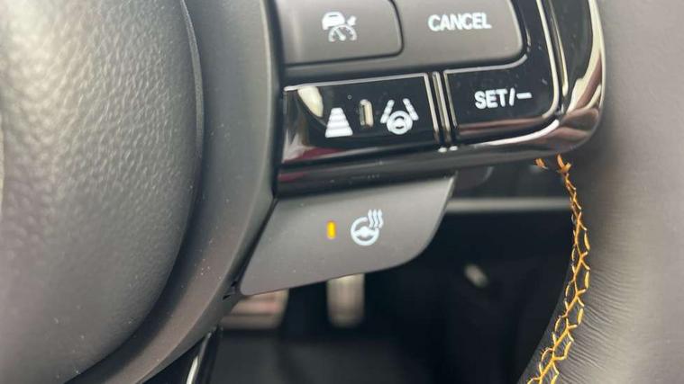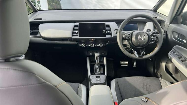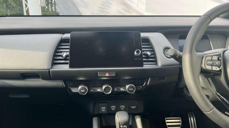 Adaptive cruise control, Adjustable speed limiter, Agile handling assist, BLIS (Blind Spot Information System) with Cross Traffic Monitor, Bluetooth hands free telephone connection, Drive mode (Econ, Sport, Normal), Driver attention monitoring system, eCall emergency call system - ecall functionality is subject to 2G/3G network availability, Electric power steering wheel with variable gear ratio steering, Emergency stop signalling system, Forward collision warning, Front and rear parking sensors, Honda CONNECT with Navigation 9" touchscreen, AM/FM/DAB, Apple Carplay and Android Auto, live traffic info, Idle stop, Intelligent speed limiter, Lane departure warning system, Lane keep assist system, Low speed following, Multi-information display, Rear view camera, Road departure mitigation, Tailgate, Traffic jam assist, Traffic sign recognition, Wireless apple carplay, Vehicle stability assist, 'Shark fin' mobile antenna, 180w Power audio system with 4 speakers, 2 USB-C connectors rear, 2x USB Front socket (1 data & 1 charge), Remote audio controls on steering wheel, Aspheric door mirrors, Auto wipers, Automatic headlights with on/off timer, Coming/leaving home function, Black headlight extension, Body colour door handles, eHEV emblem, Electric adjustable door mirrors, Electrically folding door mirrors, Exclusive styling includes front and rear bumper in gloss black finish, Front and rear electric windows, Heated door mirrors, High beam assist, LED 3rd brake light, LED daytime running lights, LED Headlights, LED rear lights, Manual headlight levelling, Privacy glass, Rear side wing doors, Rear wiper, Single exhaust tailpipe with finisher, Sport grille, 3 seat bench in 2nd row, 60/40 split rear bench seat, Cargo net hooks, Climate control air conditioning, Driver and front passenger seat armrests, Driver and passenger front seat pockets, Driver's seat height adjustment, Fabric/suede leather upholstery, Front accessory power socket, Front head restraints, Front map lights, Front/rear courtesy lights, Heated front seats, Heated steering wheel, Isofix points, Leather 3-spoke steering wheel, Leather gearshift knob, Magic seat flexibility system, Plating interior door handles, Rear head restraints, Single front passenger seat, Sport pedals, Sunvisors with vanity mirrors, Tilt/telescopic adjustable steering wheel, Tonneau cover, Trunk light, Vanity mirror illumination, 3x3 point rear seatbelts, Anti-lock braking system (ABS), Brake assist function, Brake hold function, Child locks on rear doors, Collision mitigation braking system, Deflation warning system, Driver knee airbag, Driver SRS airbag (single stage inflation), Driver/Front Passenger airbags, Electronic parking brake with auto hold, Front and rear seat belt with emergency locking retractor, Front and rear side curtain airbag, Front centre airbag, Front side airbags, Hill start assist, Paddle deceleration control, Passenger SRS airbag cut-off device, Rear side airbags, Regenerative braking system, Whiplash lessening front headrests, Honda super locks, Immobiliser, Mirrors and windows key fob operation, Remote central locking with 2 remote folding keys, Security alarm, Smart entry + Smart start, Soft pad leather interior panels, Tyre repair kit,