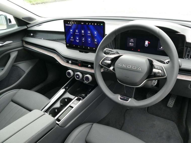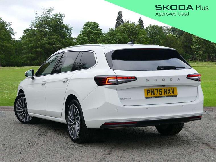 13" touchscreen display with satellite navigation, 4x USB-C ports (2x in front centre console and 2x in rear) (45W), Adaptive cruise control with speed assist, lane assist plus and traffic tram assist, Blind spot detection with door exit warning, Bluetooth system, CareConnect and Emergency Call, ChatGPT functionality, Driver fatigue sensor, Front assist with extended predictive pedestrian protection, Front cross traffic assist, PAS, Quick start all heating software functionality, Stop/start engine system, Traffic sign recognition, Turn assist with evasive assistance, Virtual Cockpit - 10.25" digital display, Voice control system, Washer for rear camera, Wireless charging for one smartphone (15W) with cooling function, Wireless smartlink apple carplay, SmartLink+ android auto, Dynamic chassis control plus with progressive dynamic steering, Canton sound system - 14+1 speaker, DAB Digital radio, Display cleaner, FM radio connection, Web radio connection, Acoustic side windows and interior noise suppression, Backdrop lighting, Body colour door handles, Body coloured door mirrors, Chrome roof rails, Chrome window surround, Dynamic range control with poor weather light and integrated fog light, Electrically adjustable, heated, folding and driver side auto-dimming door mirrors with memory function, integrated indicators and logo projection, Frameless auto-dimming rear view mirror with USB-C, Ice scraper in fuel tank cap, LED 3rd brake light, Light assist with High beam control, Light assistant (coming/leaving home/tunnel light), Privacy glass, Rear fog lights (x2), Rear roof spoiler, Rear side wing doors, Rear windscreen wiper, Unique dark chrome design logo on alloy wheels, Unique dark chrome grille surround with dark chrome rib elements, plus dark chrome rear diffuser strip, Windscreen wipers with rain sensor, 12V socket 1x centre console 1x boot, 14-way electrically adjustable, memory, front seats with 4-way pneumatic lumbar support, and extendable thigh support with smart comfort entry aid, 2x cargo elements in boot, 2x light in boot, 3 seat bench in 2nd row, 4x foldable bag hooks in boot, 60:40 Split folding rear seats, Advanced massage function for front seats, Bottle holders in the front doors 1.5 litre bottle and rear 1.5 litre bottle, Cup holder in front with easy open mat, Front armrest with storage box, Front sports comfort seats, Heated and ventilated front seats, Height adjustable front and rear head restraints, Illuminated glovebox, Interior lights with control switches, Isofix child seat fittings in outer rear and front passenger seats, LED front and rear reading lights, Single front passenger seat, Skoda lettering on steering wheel, Storage compartment with cover, Storage pockets on back of front seats, Sun visors with illuminated vanity mirrors, Ticket holder on A Pillar, Tri zone climate control, Umbrella in driver's door, Light and view package - Superb, Parking package - Superb, Transport package - Superb Estate, Winter package - Superb, 3 rear seatbelts, 8 Airbags - Front driver and passenger, front side driver and passenger, centre, curtain front and rear, drivers knee, Crew protect assist, Driver and passenger seatbelts with warning light, Electronic parking brake, ESC including ABS, EBV, MSR, ASR, EDS, HBA, DSR, RBS, CBC, multi-collision brake (MKB) and Auto hold, Hill hold assist, Power operated child lock in rear doors, Alarm with interior monitoring tilt sensor and back up horn, Backrest remote release from trunk, Electronic engine immobiliser, Keyless start/stop, Remote central locking with SAFE system, Third key, Walk away locking, Decorative front door sills, 18" Steel space saving spare wheel,