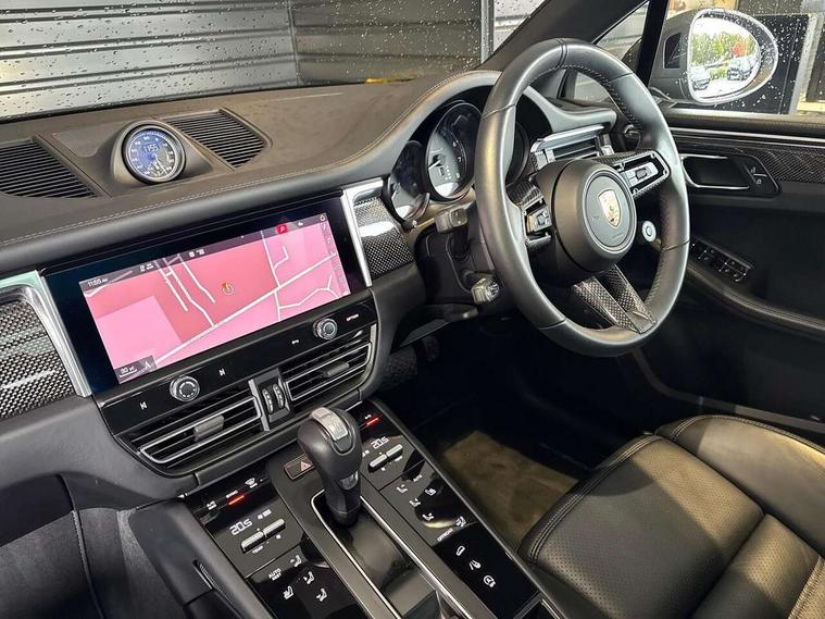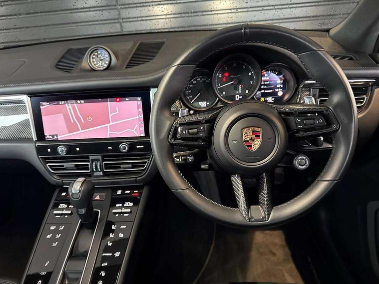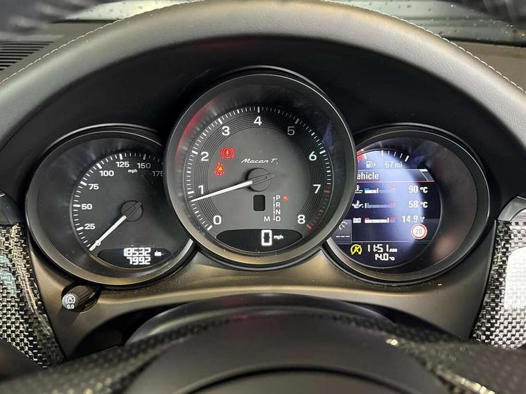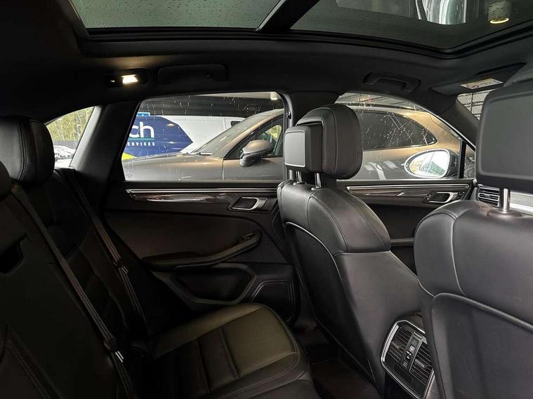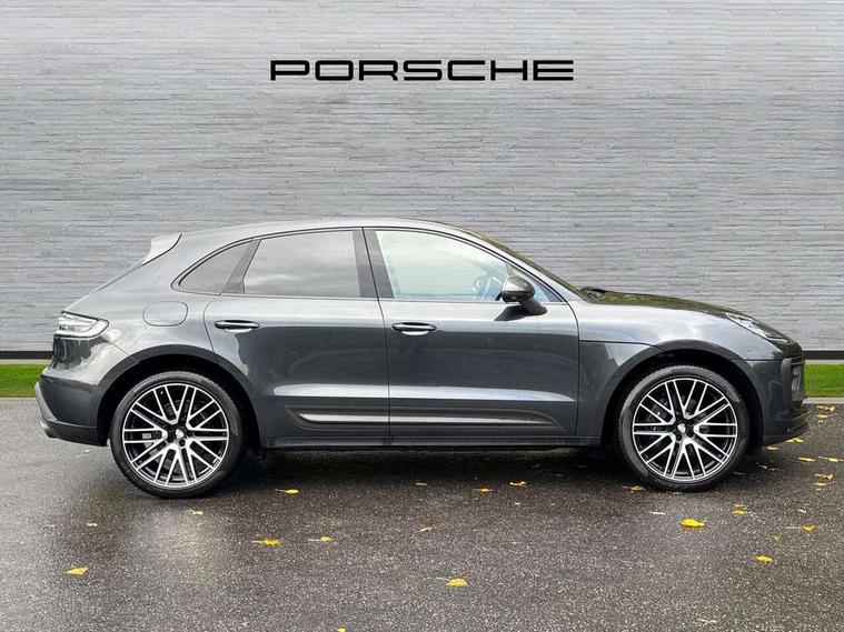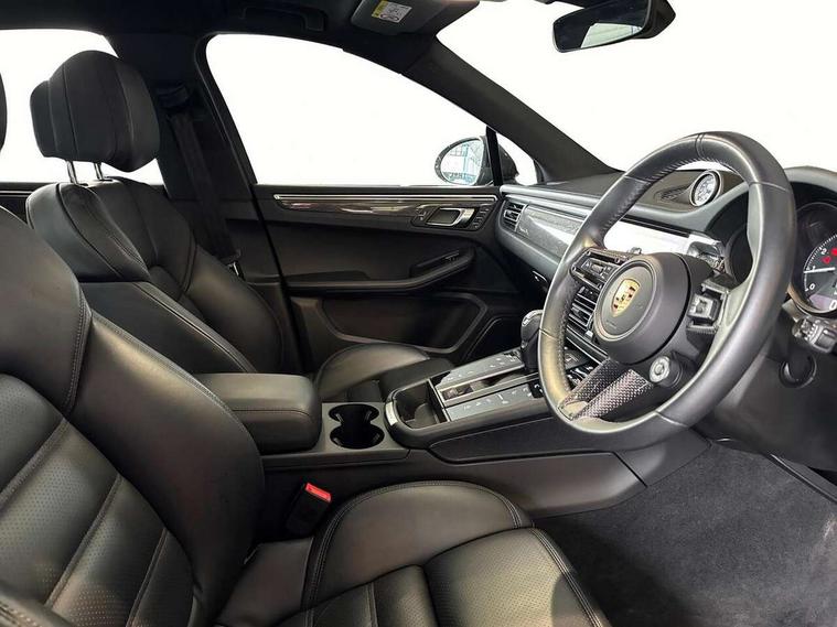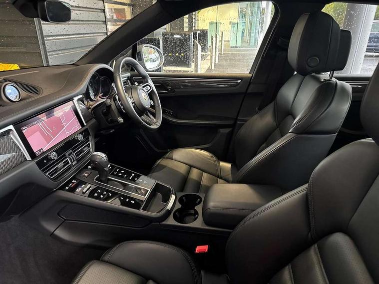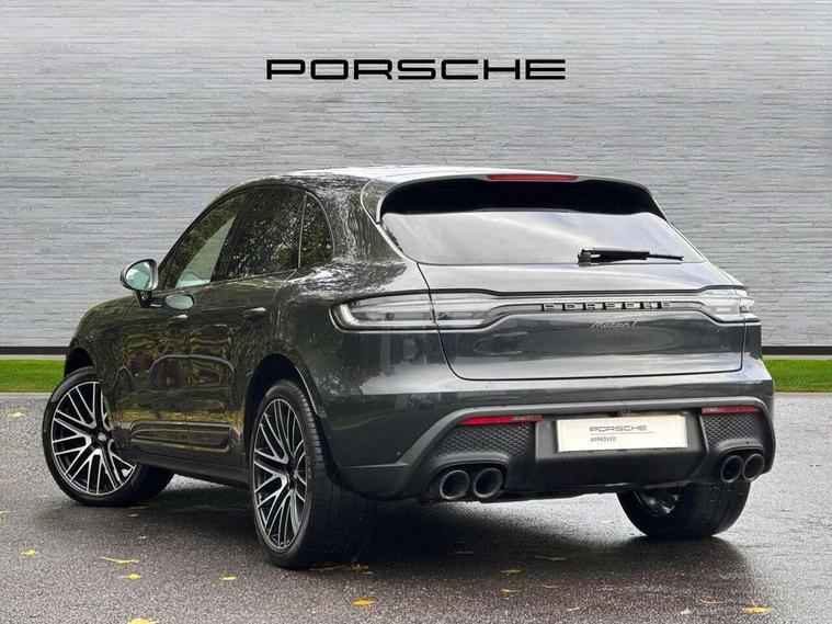 Analogue clock on dashboard, Automatic start/stop system, Automatic tailgate, eCall emergency call system, Instrument cluster with high resolution 4.8-inch TFT display, gear indicator for PDK, service interval display, external temperature indicator, fuel gauge, Off-road button, On board computer, Porsche Communication Management (PCM) including online navigation module, mobile phone preparation, audio interfaces and voice control system, 7-Speed Porsche Doppelkupplung (PDK) with automatic mode and manual controls (gearshift paddles) on steering wheel, Direct fuel injection (DFI), Gasoline particulate filter, VarioCam camshaft control for inlet and exhaust valves, 2 USB sockets in rear centre console, Apple CarPlay with Siri voice recognition, Connect Plus including online navigation, LTE communication module with SIM card reader, wireless internet access, Porsche Car Connect services, DAB Digital radio, Porsche Vehicle Traking System Plus (PVTS Plus), Smartphone compartment with wireless charging, Two USB C charging and connectivity ports in the front centre console storage compartment, Active radiator grille shutters, Automatic headlight activation including welcome home lighting, Bumper system with high strength cross members and two deformation elements + One threaded fixture point for towing eye contained in onboard tool kit, Dynamic cornering lights, speed-sensitive headlight and dynamic range control, adverse weather function, four-point LED daytime running lights, Electric front and rear windows with remote closing function + anti trap + one touch, Electrically folding and heated exterior mirrors, Front light modules with LED position lights and direction indicators, Front windscreen wipers with two speeds, intermittent wipe and rain sensor, Front with integrated cooling air intakes, Fully galvanised body, Heated rear window with automatic switch off, High gloss black side window trims, High level 3rd LED brake light integrated into roof spoiler, Loading edge protection in aluminium, Rear side wing doors, Rear window wiper with intermittent function and washer jet, Roof spoiler in agate grey metallic, Towbar preparation, 3 adjustable rear headrests, 3 rear seats, 40:20:40 split folding rear bench seat, Cloth hook b-pillar, Floor mats with Porsche logo, Fold up centre console armrest with fore/aft adjustment, Front and rear bottle holders in door panels, Front headrests, Front passenger seat, Glove compartment, Isofix fastening system for child seats on outer rear seats, Luggage compartment cover, Particle/pollen filter with active carbon filter, Rear armrest with 2 cupholders, Storage bin in centre console, Storage compartment in side of luggage compartment and storage compartment in spare wheel recess, Storage pocket in front and rear doors, Two integrated cup holders in front with variable diameter, Two socket 12V power outlets in front console and luggage compartment, Uncovered storage compartment in centre console, Ambient comfort lighting pack - Macan, Lower exterior trim package in black - Macan, Sport chrono package including mode switch - Macan T, 3-point automatic seatbelts with front and outer rear seats pretensioners and force limiter + manually height adjustable seatbelt + reminder warning, Auto hold function, Black painted brake calipers, Child locks on rear doors, Curtain airbags along entire roof frame and side windows from A pillar to the C pillar, Electronic parking brake, Front passenger airbag deactivation facility for installation of child seats indicator in overhead console, Front side airbags integrated into seat, Full size driver and passenger airbags, Internally vented brake discs with diameter of 350mm at front and 330mm at rear, Multi-Collision braking, Porsche hill control (PHC), PTM(Porsche Traction Management) and All-wheel drive with map-controlled multi-plate clutch, Roll over sensor for curtain airbag and seatbelt pretensioners, Side impact protection in doors, Tyre pressure monitoring system, Vehicle stability system, Porsche stability management (PSM) including ABS, ASR, ABD, MSR and trailer stability management, Vented discs brake with 4 piston aluminium monobloc fixed caliper at front, Vented discs brake with combination floating calipers at rear, Alarm system with ultrasonic interior surveillance, Dashcam prep, Engine immobiliser with key transponder, Remote control central locking, Accent trims with silver coloured finish, Tyre repair kit,