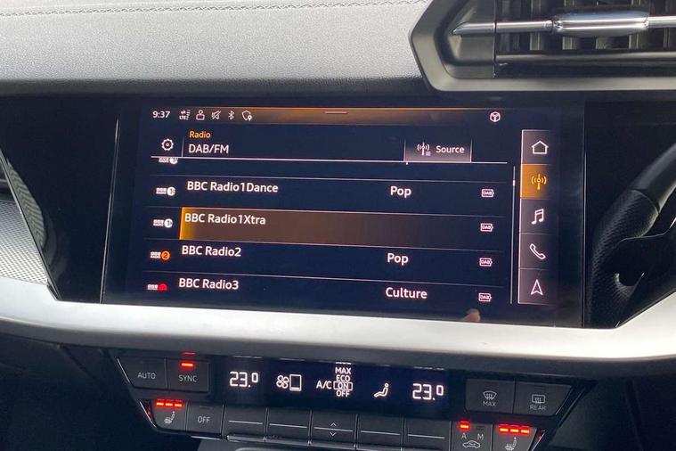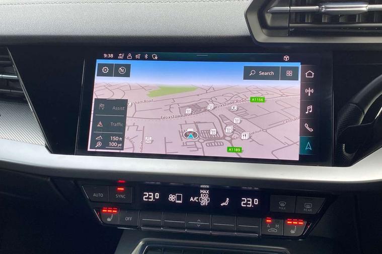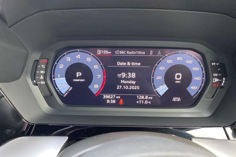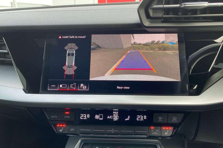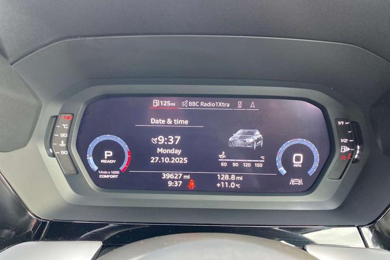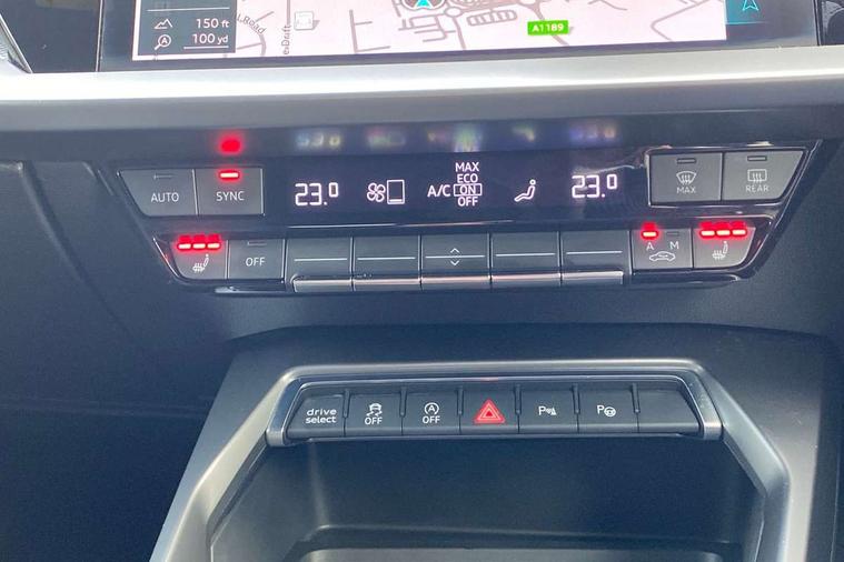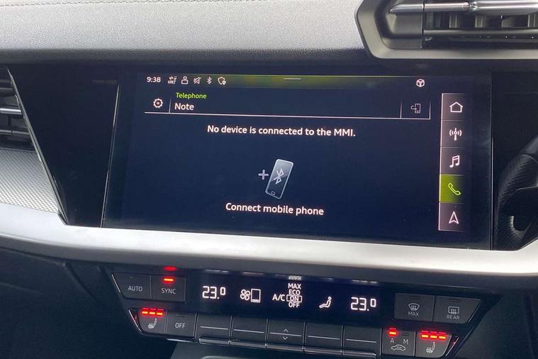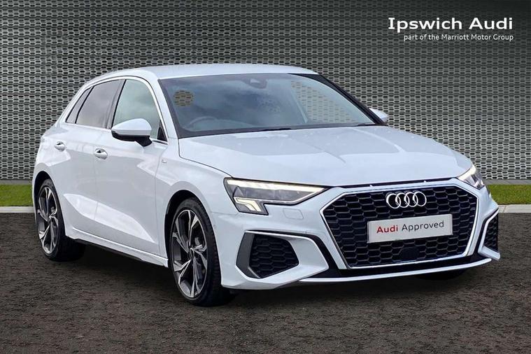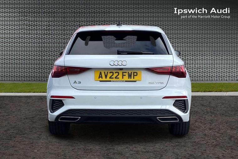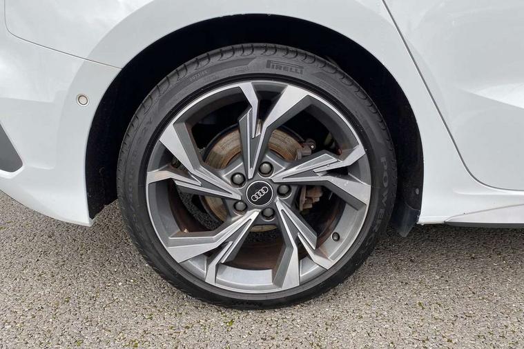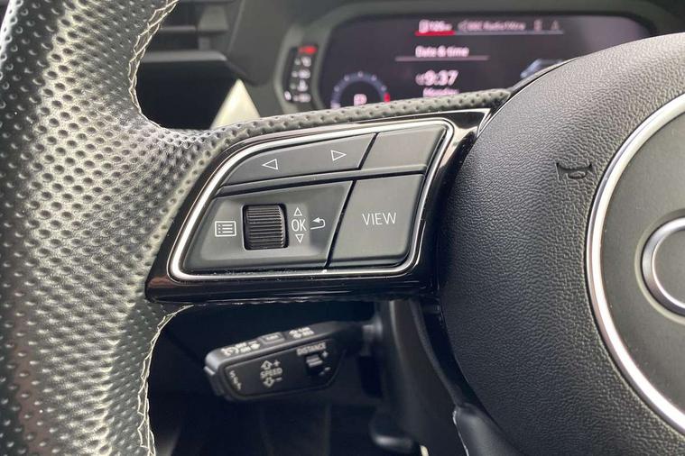 Audi connect emergency call and service, Audi drive select (Auto, Comfort, Dynamic, Efficiency and Individual), Audi smartphone interface, Audi Virtual Cockpit - 10.25" digital and colour instrument cluster, Automatic start/stop system with recuperation, Bluetooth interface, Collision avoidance assistant, Electromechanical power speed sensitive steering, Lane departure warning system, MMI Navigation Plus with high resolution 10.1" colour touch screen display, Service indicator, Trip computer, Voice control system with natural language interaction, 2xUSB-C connection with data and charging functions, 6 passive loudspeakers, DAB Digital radio, 3rd brake light, Acoustic glass windscreen, Aluminium window trim, Auto dimming frameless rear view mirror, Electrically adjustable/heated/folding/auto dimming door mirrors with integrated LED indications + kerb view function for passenger side, Front electric windows, Illuminated aluminium inserts front door sills with S logo, LED daytime running lights, LED headlights with LED rear lights and dynamic rear indicators, Light and rain sensors, Privacy glass - dark tinted rear window, rear door and side windows, Rear electric windows, Rear side air outlets in grained matt black, Rear side wing doors, Rear wiper, S line bumpers, S roof spoiler, 12V socket and storage compartment in front centre console, 3 seat bench in 2nd row, 40/20/40 split folding rear seat bench with cupholder, Black cloth headlining, Dual zone electronic climate control, Front and rear centre armrest in leather, Front and rear headrests, Front/rear floor mats, Height and reach adjustable steering wheel, Illuminated vanity mirror, Interior lighting - glove compartment light and right hand side, Luggage compartment floor covering, Manual boot compartment lid, Manually adjustable front seats, Seat side bolsters, Single front passenger seat, Stainless steel pedals and front footrest in black, Twin leather upholstery with front sports seats S embossed logo, Aluminium interior elements pack - A3 Sportback, S line styling pack - A3 Sportback, 3x3 point rear seat belts, Driver and front passenger airbag with passenger airbag deactivation, Electronic Stabilisation Control (ESC) including ABS, ASR and EDL, First aid kit with warning triangle and 2 safety vests, Front side airbags with head airbags and interaction airbag, Pre-sense front with pedestrian and cyclist detection, Seatbelt monitoring, Tyre pressure loss indicator, Anti theft alarm, Anti-theft wheel bolts, Immobiliser, Manual child locks, Remote control central locking, Accent surfaces in the dashboard and centre console in platinum grey silk effect paint finish, Dark spectrum aluminium inlays,