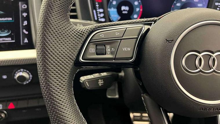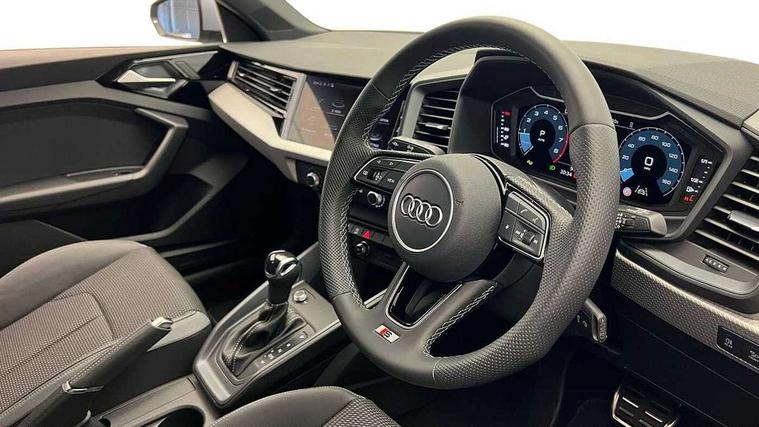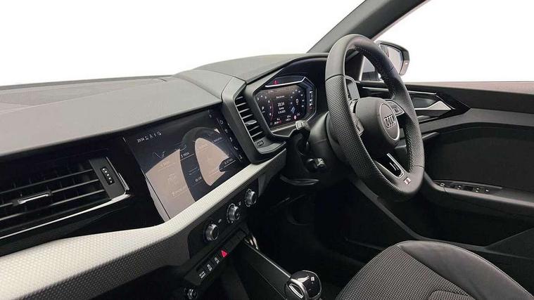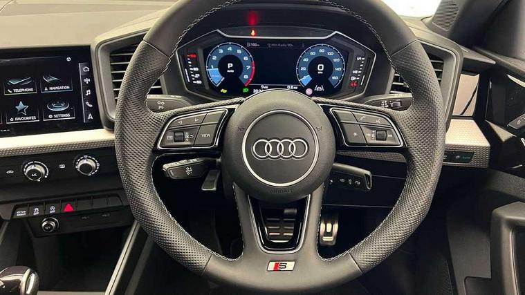 10.25" Digital instrument cluster display classis style instrument dials + speed, odometer, time, outside temperature, telephone menu + fuel level warning, Advanced driver attention and drowsiness monitor, Audi connect emergency call and service, Audi drive select, Audi remote connect and control, Audi smartphone interface, Bluetooth interface, Camera based traffic sign recognition, Cruise control, Driver's information system, Electromechanical power steering, Lane departure warning system, Rear parking sensor, Service interval indicator, Speed limiter, Start stop system with recuperation, Voice control system, Washer fluid level indicator, Sports suspension, 2 x USB type C connection points, 6 loudspeakers, DAB Digital radio, MMI radio plus with 10.1" colour MMI display screen and MMI touch, Auto dimming rear view mirror, Body coloured door mirrors, Door sill trims with aluminium inlays and S line logo in front, Electric front and rear windows, Electrically adjustable, heated, folding door mirrors with integrated LED side indicator, Front side air inlets in grained matt black and C frame in anthracite black, Headlight cleaning system, Heat insulating glass windscreen and side windows, Heated rear windscreen, High level LED brake light, LED daytime running lights, LED headlights with range control LED rear lights + dynamic rear indicators, Light and rain sensors, Privacy glass, Radiator grille and rear diffuser in matt anthracite black, Radiator protective grille frame in matt aluminium silver, Rear fog lights, Rear side wing doors, Rear wiper, S line badges on front wings, Side front spoiler lips in grained matt black, 12V socket in centre console with two cup holders, 3 rear seats with headrests, 3 seat bench in 2nd row, 3 spoke leather multi-function plus steering wheel features S badging and grips in perforated leather with contrast stitching, 40:60 Split folding rear seat or fully collapsed, Black cloth headlining, Front and rear velour black floor mats with contrast stitching in fine silver, Front head restraints, Front passenger seat, Height and reach adjustable steering wheel, Interior lighting includes roof module, front and rear reading lights and right luggage compartment lighting, ISOFIX child seat mounting for front passenger and outer rear seats including top tether attachment point of outer rear seats, Leather gear knob with aluminium trim, Leather handbrake grip, Manual air conditioning, Manual height adjustable for driver and front passenger seat, Manually adjustable lumbar support in front seats, Stainless steel pedals, Ambient lighting package - A1, Luggage compartment pack - A1, S line exterior styling pack - A1 Sportback, 3x3 point rear seatbelts, Audi pre-sense front with pedestrain and cyclist recognition, Brake assist function, Driver and front passenger airbag with front side and head airbags, Electronic Stability Control including ABS, EBD, ASR and EDL, Front passenger airbag deactivation switch, Hill hold assist, Manual rear child locks, Seatbelt height adjustment for front seats, Seatbelt monitoring, Tyre pressure loss indicator, Warning triangle and first aid kit, Anti theft alarm, Anti theft wheel bolts, Immobiliser, Remote control key with safelock, Aluminium trim for control switches, air vents and digital instrument cluster, Black dashboard, Silver grey inlays polygon structure in diamond paint finish, Structured grey accent surfaces insert of air vents, interior door handle recesses and centre console in quartz paint finish,