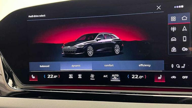 Audi application store, Audi assistant, Audi connect emergency call and service, Audi connect with Amazon Alexa Integration, Audi digital key, Audi drive select, Audi phone box with wireless charging, Audi virtual cockpit, Automatic start/stop system with coasting functionality, Bluetooth interface, Luggage compartment lid with Electric opening / closing, MMI navigation plus with high resolution 14.5" OLED touchscreen colour display, Power assisted steering, Service interval indicator, Smartphone interface includes wireless Apple carplay/Android Auto, Voice control system, Sports suspension, Audi sound system impressive sound with 10 loudspeakers including centre speaker and subwoofer, 6-channel amplifier with a total output of 180 watts, DAB Digital radio, USB ports with charging function, Aluminium roof rails, Audi Matrix LED technology, Auto dimming rear view mirror, Automatic-dynamic headlight range control, Body colour door mirrors, Body coloured door handles, Dipped beam, main beam, position light, dynamic indicator and cornering light, Door mirrors - electrically adjustable, heated, folding and auto dimming on both sides, Dynamic light scenarios of the coming home/leaving home function when stationary, Electric front/rear windows, Frameless auto dimming interior rear view mirror, Front illuminated door sill trims with aluminium inlay, Headlight cleaning system, LED headlights Plus incl. digital daytime running lights, turning light, all-weather light, motorway light, manouevring light and intersection light, LED rear lights pro incl. brake lights, tail lights, rear number plate lights, reversing lights, continuous light strip, LED third brake light, Privacy glass, Rain and light sensors, Rear and side windows with heat insulating glass, Rear side wing doors, Rear wiper, Roof spoiler, S line exterior styling, Sport exterior inc Radiator grille, air inlets and diffuser in scandium grey as well as inlay in diffuser in selenite silver, Towbar preparation, White rhombus logo projection light in exterior mirrors, Window trim strips in aluminium look, Windscreen with heat insulating and acoustic glazing, 3 seat bench in 2nd row, 3-spoke Sport leather steering wheel flat top and bottom with multifunction and shift paddles, 4 way electric lumbar support for driver and front passenger, 4 zone deluxe automatic climate control, 40:20:40 split folding rear seat bench with centre armrest and cup holders, Black front and rear floor mats, Centre armrest, front- adjustable angle with four settings, Electrically adjustable front seats, Front head restraints, Heated front seats, i-Size child seat mounting on the front passenger side and outer rear seats, i-Size and top tether on the outer rear seats, Manual steering wheel adjustment, Net partition, Rear headrests, Single front passenger seat, Sport front seats, Stainless steel pedals and footrest, Steering wheel trim in chrome look, S emblem, steering wheel grips in perforated leather and contrasting stitching, Twin leather/artificial leather upholstery, Ambient lighting package plus - A6, Drive and Park assistance package - A6, Protective warning assistance package - A6, 3x3 point rear seat belts, Black seat belts, Convenience key with safelock, Driver and front passenger airbags, EBD - Electronic brakeforce distribution, Electric rear child safety lock, Electromechanical parking brake, Electronic Stability Control (ESC) including ABS, ASR and EDL, First aid kit with warning triangle and vests, Front passenger airbag deactivation, Seatbelt monitoring, Side airbags front with head airbag system and interaction airbag, Standard 18"steel disc brakes front and rear, Tyre pressure monitoring system, Anti theft alarm, Anti-theft wheel bolts, Immobiliser, Keyless Go, Remote central locking, Inlays in matt brushed aluminium with linear embossing, anthracite, Upper and lower interior elements in leatherette with contrasting stiching, Wraparound interior elements in artificial leather, Tyre repair kit,