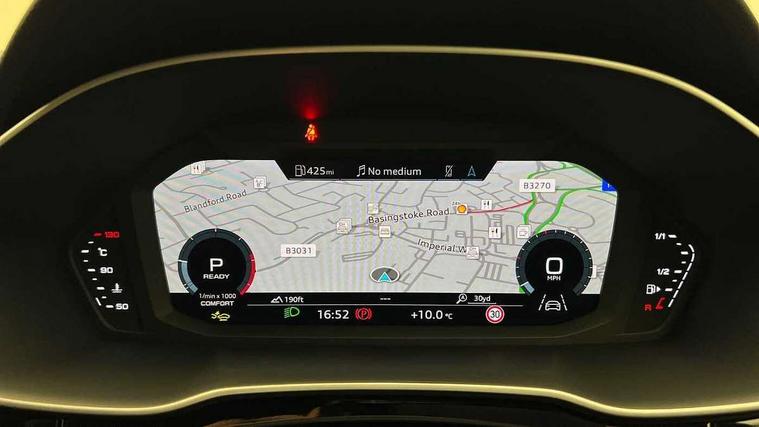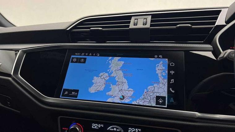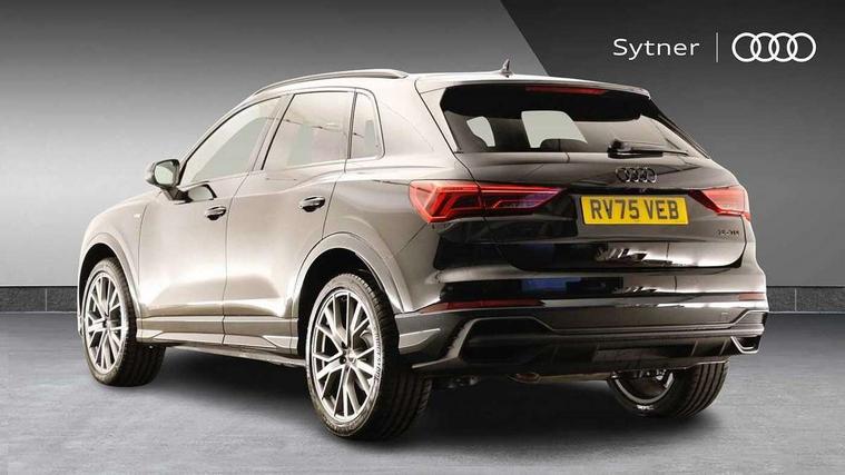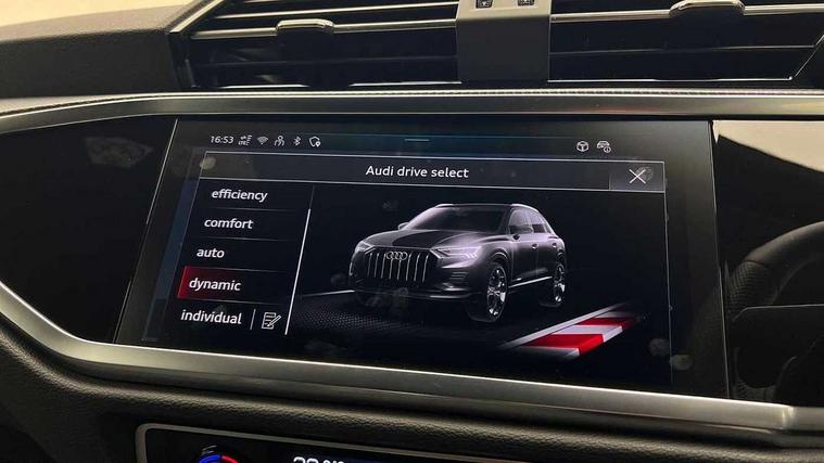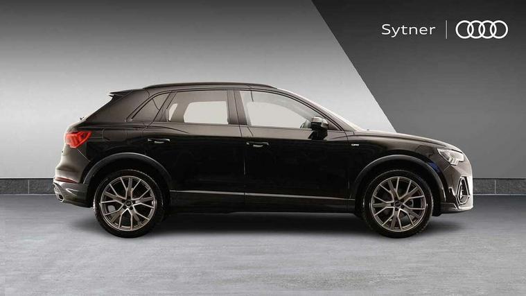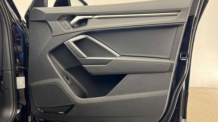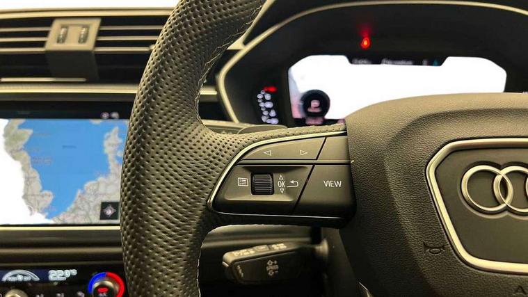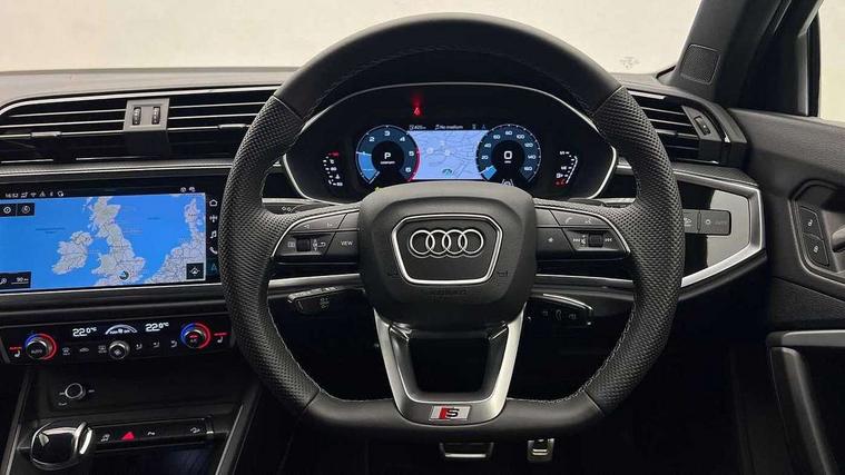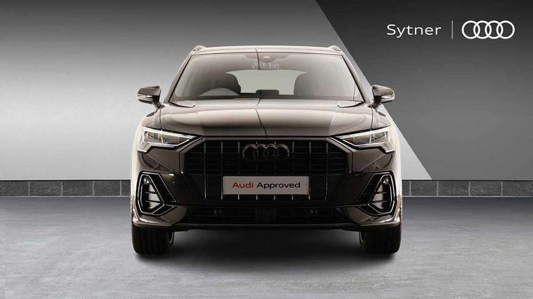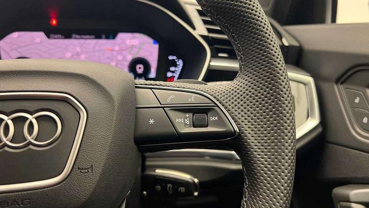 Amazon alexa Integration, Audi connect safety and service, Audi drive select, Audi lane departure warning, Audi Virtual Cockpit - 10.25" display, Bluetooth interface, Camera based traffic sign recognition, Distraction and Fatigue warning, Legal emergency call, MMI Navigation Plus with high resolution 10.1 inch touchscreen colour display, Power operated tailgate, Progressive steering, Service interval indicator, Smartphone interface includes wireless Apple carplay/Android Auto, Start stop system with recuperation, Voice control system with natural language interaction, Diesel particulate filter, Sports suspension, 2 USB-C ports with charge and data functions, 6 passive loudspeakers, DAB digital radio module, Acoustic windscreen, Anthracite black radiator grille, Audi Beam uses LEDs to project the Audi logo onto the ground as you exit your Q3, Auto dimming door mirrors, Auto dimming frameless rear view mirror, Black roof rails, Electrically folding, adjustable and heated door mirrors with integrated LED side indicators and kerb view function for passenger side, Front and rear electric windows, Front fog lights, Grille vertical bars in aluminium silver/Matt, High gloss black finish B and C pillars, LED Dynamic rear indicators, LED headlights with LED daytime running lights, LED rear lights, LED third brake light, Privacy glass dark tinted rear and rear-side windows (from B-pillar backwards), Rain and light sensors, Rear diffuser grille in grained matt black, Rear diffuser strip in matt anthracite black, Rear side wing doors, Rear wiper, S line bumpers in contrasting Manhattan grey, Variable front intermittent wipers, 12V socket in rear centre console, 3 seat bench in 2nd row, 40:20:40 folding with manual adjustment for 60:40 forwards/backwards position and backrest angle, Adjustable rear seat bench/backrest with centre armrest and cupholder, Black carpet mats, Black cloth headlining, Dual zone electronic climate control, Electric lumbar support, Front and rear black floor mats with contrast stitching in rock grey, Front and rear headrests, Front centre armrest, Height and reach adjustable steering wheel, Illuminated door sill trims with S logo, ISOFIX child seat mounting for front passenger with airbag deactivation and outer rear seat including top tether attachment point for outer rear seats, Luggage compartment sill protection in stainless steel, Manual front seats with height adjustment, Perforated leather gearknob, Single front passenger seat, Stainless steel pedals, Twin leather upholstery with front sport seats + S embossing, Black styling pack - Q3, Non smoking pack - Q3, 3x3 point rear seatbelts, 6 airbags - Driver, front passenger, curtain and side windows, Audi pre-sense front with pedestrain and cyclist recognition, Electrically operated child locks on rear doors, Electromechanical parking brake, Electronic stabilisation control including ABS, ASR and EDL, Front seatbelt reminder, Hill descent control, Hill hold assist, Pre sense basic, Seatbelt monitoring, Tyre pressure warning, Warning triangle and first aid kit, Anti theft wheel bolts, Immobiliser, Remote central locking, Thatcham approved category 1 anti theft alarm, Aluminium look interior elements, Detail dashboard around MMI touch colour display in glass look, black with surround in aluminium look, Leatherette door armrest, Piano black inlay,