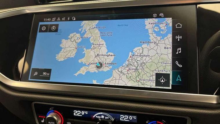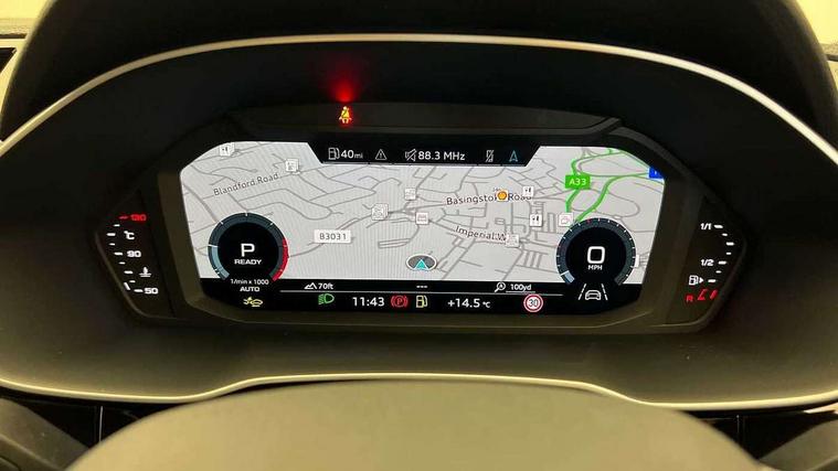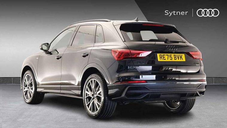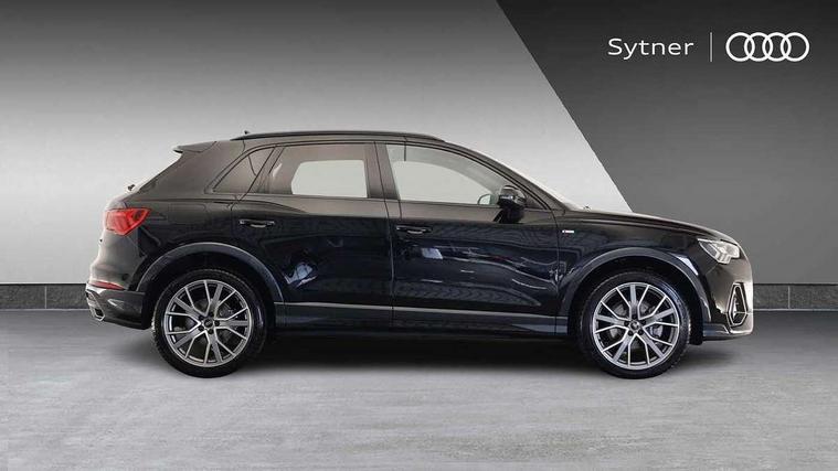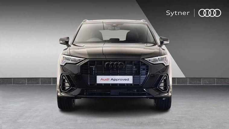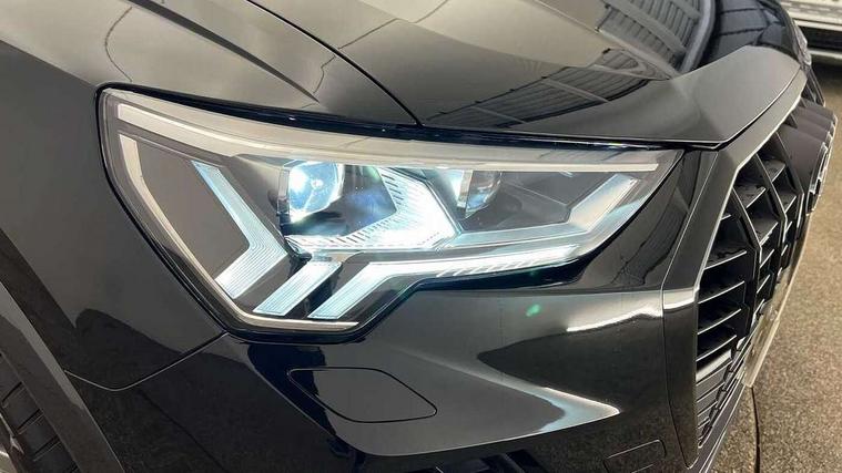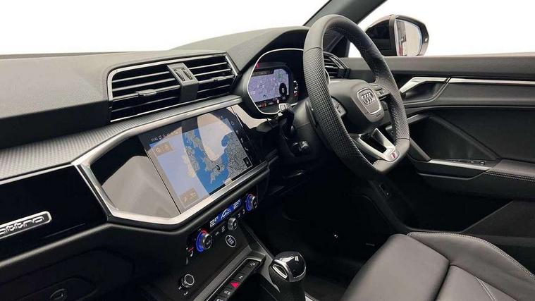 Amazon alexa Integration, Audi connect safety and service, Audi drive select, Audi lane departure warning, Audi Virtual Cockpit - 10.25" display, Bluetooth interface, Camera based traffic sign recognition, Distraction and Fatigue warning, Legal emergency call, MMI Navigation Plus with high resolution 10.1 inch touchscreen colour display, Power operated tailgate, Progressive steering, Service interval indicator, Smartphone interface includes wireless Apple carplay/Android Auto, Start stop system with recuperation, Voice control system with natural language interaction, Diesel particulate filter, Sports suspension, 2 USB-C ports with charge and data functions, 6 passive loudspeakers, DAB digital radio module, Acoustic windscreen, Anthracite black radiator grille, Audi Beam uses LEDs to project the Audi logo onto the ground as you exit your Q3, Auto dimming door mirrors, Auto dimming frameless rear view mirror, Black roof rails, Electrically folding, adjustable and heated door mirrors with integrated LED side indicators and kerb view function for passenger side, Front and rear electric windows, Front fog lights, Grille vertical bars in aluminium silver/Matt, High gloss black finish B and C pillars, LED Dynamic rear indicators, LED headlights with LED daytime running lights, LED rear lights, LED third brake light, Privacy glass dark tinted rear and rear-side windows (from B-pillar backwards), Rain and light sensors, Rear diffuser grille in grained matt black, Rear diffuser strip in matt anthracite black, Rear side wing doors, Rear wiper, S line bumpers in contrasting Manhattan grey, Variable front intermittent wipers, 12V socket in rear centre console, 3 seat bench in 2nd row, 40:20:40 folding with manual adjustment for 60:40 forwards/backwards position and backrest angle, Adjustable rear seat bench/backrest with centre armrest and cupholder, Black carpet mats, Black cloth headlining, Dual zone electronic climate control, Electric lumbar support, Front and rear black floor mats with contrast stitching in rock grey, Front and rear headrests, Front centre armrest, Height and reach adjustable steering wheel, Illuminated door sill trims with S logo, ISOFIX child seat mounting for front passenger with airbag deactivation and outer rear seat including top tether attachment point for outer rear seats, Luggage compartment sill protection in stainless steel, Manual front seats with height adjustment, Perforated leather gearknob, Single front passenger seat, Stainless steel pedals, Twin leather upholstery with front sport seats + S embossing, Black styling pack - Q3, Non smoking pack - Q3, 3x3 point rear seatbelts, 6 airbags - Driver, front passenger, curtain and side windows, Audi pre-sense front with pedestrain and cyclist recognition, Electrically operated child locks on rear doors, Electromechanical parking brake, Electronic stabilisation control including ABS, ASR and EDL, Front seatbelt reminder, Hill descent control, Hill hold assist, Pre sense basic, Seatbelt monitoring, Tyre pressure warning, Warning triangle and first aid kit, Anti theft wheel bolts, Immobiliser, Remote central locking, Thatcham approved category 1 anti theft alarm, Aluminium look interior elements, Detail dashboard around MMI touch colour display in glass look, black with surround in aluminium look, Leatherette door armrest, Piano black inlay,