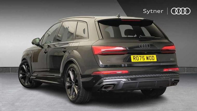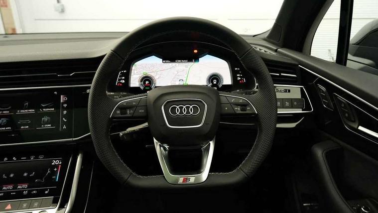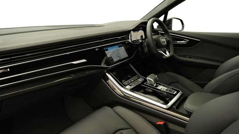 Audi connect safety and service (e-call), Audi connect with Amazon Alexa Integration, Audi drive select (Auto, Comfort, Dynamic, Efficiency, Individual, Off-road and All road), Audi phone box light with wireless charging, Audi virtual cockpit - 12.3" high-resolution classic display with fully customisable instrument cluster, Bluetooth interface, Camera based traffic sign recognition, Electromechanical power steering, MMI navigation plus with MMI touch screens includes 10.1" and 8.6" screens with haptic feedback, Natural voice recognition, Operating buttons in Matte black, Parking system plus with 360 degree display (front, rear and side sensors) - acoustic and visual park assist system, Power operated tailgate, Rear view camera, Smartphone interface includes wireless Apple carplay/Android Auto, Start/stop system, 85 litre fuel tank, Adaptive air sports suspension, Quattro all wheel drive with self locking centre differential, Audi music interface - front 2 USB-C ports with charger and data functions, Audi sound system with 6 channel amplifier, 180 watt amplifying capacity and 10 loudspeakers including subwoofer, DAB digital radio module, Aluminium window trim, Audi Beam uses LEDs to project S emblem with red rhombus onto the ground when opening the side doors (front/rear), Auto dimming frameless rear view mirror, Black exhausts, Black roof rails, Electrically adj heated/folding + automatically dimming exterior mirrors with memory + automatic kerb side function for passenger side exterior mirror, Heat insulating glass in windshield, Integrated LED indications in door mirrors, LED 3rd brake light, LED daytime running lights, LED rear tail lights, Loading edge protection in stainless steel, Matrix LED headlights with dynamic front and rear indicators, Privacy glass - dark tinted rear and rear side windows from B-pillar backwards, Rear side wing doors, Rear wiper, 3 seat bench in 2nd row, 3 zone climate control, Black carpets, Black cloth headlining, Comfort front centre armrest, Electric adjustable front seat with 4 way lumbar support, driver memory functionality, Folding rear seats, Front head restraints, Front/rear floor mats, Heated front seats, Illuminated door sill trims with S logo, ISOFIX child seat mounting for front passenger seat and 2 outer rear seats with top tether child seat mounting for all 3 rear seats, LED interior ambient lighting, Luggage compartment cover, Luggage compartment sill protection in stainless steel, Rear head restraints, Single front passenger seat, Sunvisors with illuminated vanity mirrors, Black styling pack plus - Q7, 3 point seatbelts on all rear seats, Audi pre sense basic, Audi pre sense front, Child locks on rear doors, Convenience key with safelock and gesture tailgate, Driver and front passenger, front side and curtain airbags, Electromechanical parking brake, Electronic Stabilisation Control (ESC) including ABS, ASR and EDL, Extended pedestrian protection measures, Hill hold assist, Seatbelt reminder, Tyre pressure loss indicator, Warning triangle and first aid kit, Anti theft alarm with tow away protection, Anti-theft wheel bolts and wheel loosening detection, Keyless Go, Remote central locking, Black dashboard, Polished oak trim with grey finish inlay, Tool kit, Tyre repair kit,