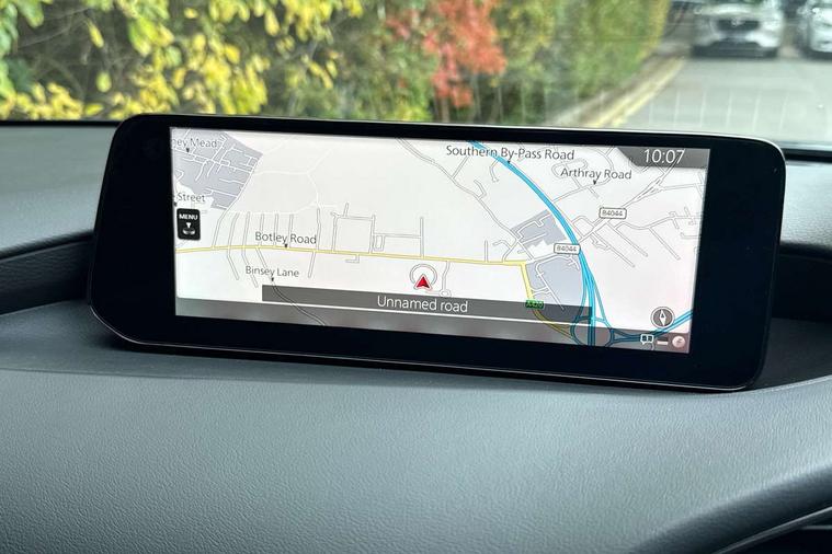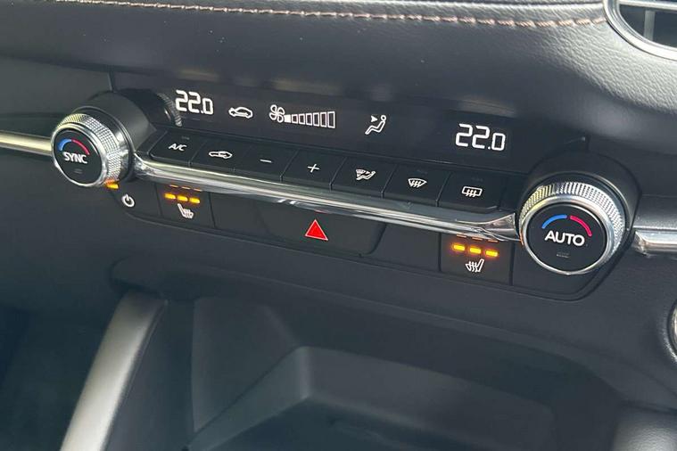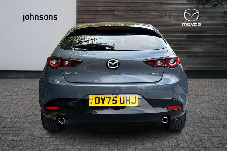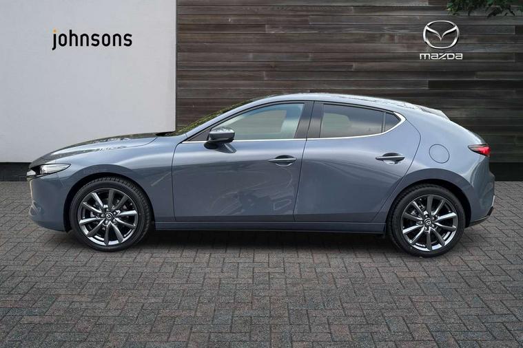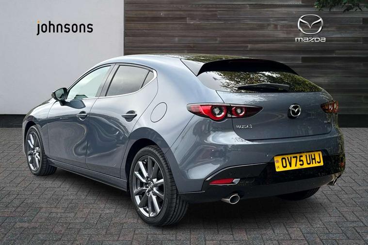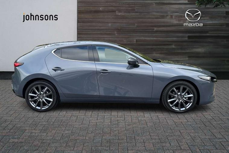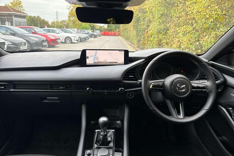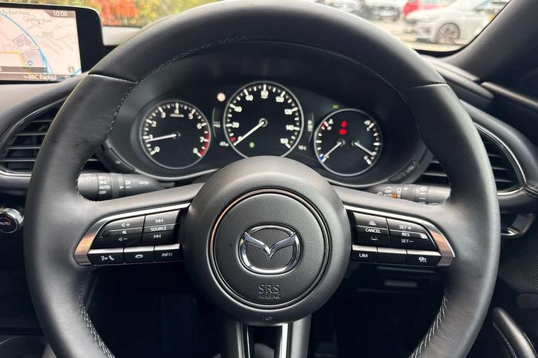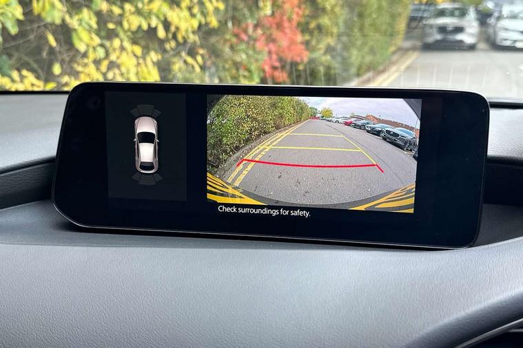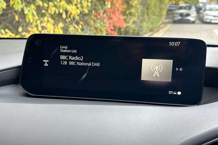 10.25" display with Mazda Connect infotainment, 7" colour TFT display, Adjustable speed limiter, Advanced E-call with GPS, Alexa in-car voice assistant, Audio transfer from bluetooth devices, Blind spot monitoring with rear cross traffic alert, Car finder, Colour active driving display inc Windscreen projected, Traffic Sign Recognition, turn-by- turn navigation and Mazda Radar Cruise Control information, Digital instrument cluster, Driver attention alert system, Emergency stop signalling system, Engine start/stop button, Front and rear parking sensor with audible and visual warning, Head up Display, Integrated bluetooth with steering wheel mounted controls, Intelligent speed assist, Lane keep assist system (LAS) with Lane departure warning system (LDWS), Mazda connected services, Mazda Navigation System with european mapping, Mazda Radar Cruise Control, Mobile App interface, Multimedia Commander, PAS, Qi wireless charging, Reversing camera, Service indicator, Tailgate, Traffic sign recognition (TSR), Trip computer, Wireless Apple CarPlay/Android Auto, Cylinder Deactivation, i-stop, 2 USB-C ports in the front, Mazda Multimedia System with AM / FM / DAB radio with 12 Speaker Bose sound system, bose centerpoint, bassmatch+audiopilot technology, Adaptive LED Headlights, Auto dimming driver's door mirrors, B-pillar garnish in piano black, Body coloured door mirrors, Coming/leaving home lighting function, Dark metallic finish signature wing, Dual chrome tailpipes tip, Dusk sensing headlights, Electric front/rear windows with one touch/auto up/down, Electrically adjustable, heated auto power folding door mirrors, Frameless auto dimming interior rear view mirror, Front body coloured bumper with black lower bezel, Front kodo turn signal, Gloss black finish front grille, Gloss black rear roof spoiler, LED auto headlight levelling, LED indicator lights, LED third brake light, Privacy glass with dark tinting on rear side windows and rear window, Rain sensing front wipers with adjustable sensitivity and speed, Rear colour coded bumper with gloss black lower moulding, Rear fog lights, Rear side wing doors, Signature LED daytime running lights, Signature LED rear combination lights, Speed adjustable rear wash wiper with intermittent wipe, 12v electrical power outlet, 3 seat bench in 2nd row, 60/40 split fold down rear seats, Chrome interior trim accents with steering wheel centre bezel, surround of engine start / stop button and glove box handle, Cloth upholstery, Dark cloth door panel inserts, Dark roof headlining, ceiling and pillars, Driver seat manual slide, recline, height and seat tilt adjust, Driver, front passenger and two rear door pockets, Driver, Front passenger and two rear grab handles with coathooks, Driver/passenger sunvisors + vanity mirrors (drivers side with ticket holder), Dual zone climate control air conditioning, Folding rear centre armrest with two cup holders, Front and rear courtesy lamps, Front armrest, Front centre storage with two cupholders, Front head restraints, Front passenger seatback pocket, Front passengers seat manual slide, recline and height adjustment, Gear shift indicator, Heated front seats with 3 stage setting, Illuminated glovebox, Interior colouration dashboard and doorcards in black with dark stitching, ISOFIX child seat anchorage points attached on outer rear seats, Leather wrapped gear shift knob, Leather wrapped steering wheel, LED interior light, LED light in luggage compartment, Power outlet in luggage compartment, Roof mounted sunglasses holder, Single front passenger seat, Three height adjustable rear head restraints, Tilt/height adjustable steering wheel, 3 point ELR front seatbelts with pretensioners, 3 rear 3 point seatbelts with ELR, Anti-lock braking system (ABS), Drivers knee airbag, DSC - Dynamic Stability Control, Dual stage driver and single stage passenger airbags, EBD - Electronic brakeforce distribution, Electronic parking brake with auto disengage function and auto hold function, Front and rear curtain airbags, Front passenger airbag cut-off switch, Front side airbags, Front smart city brake support, G-Vectoring control plus, Hill launch assist, Intelligent Traction Control system, Manual child lock in rear doors, Mild Hybrid system with regenerative braking, Seatbelt reminder audible warning for driver, passenger and rear seats, Tyre pressure monitoring system (TPMS), Auto door lock when driving, Remote central locking + deadlocks, Smart keyless entry, Thatcham accredited alarm and immobiliser, 18" Grey alloy wheels, Emergency tyre repair kit,