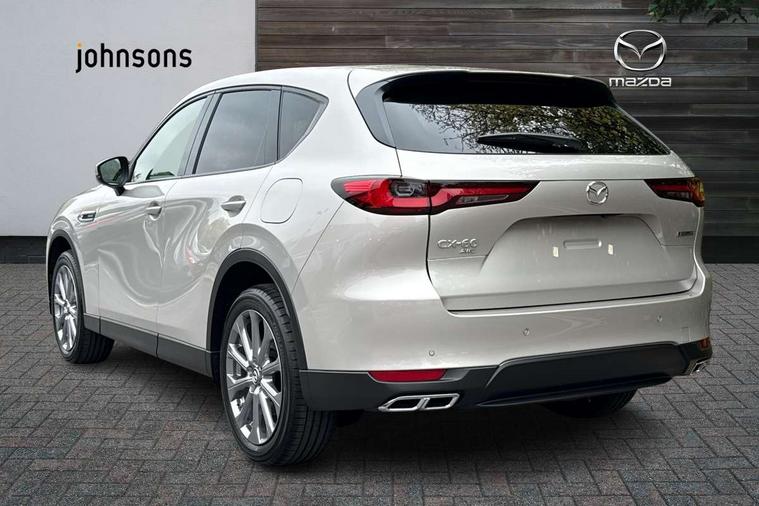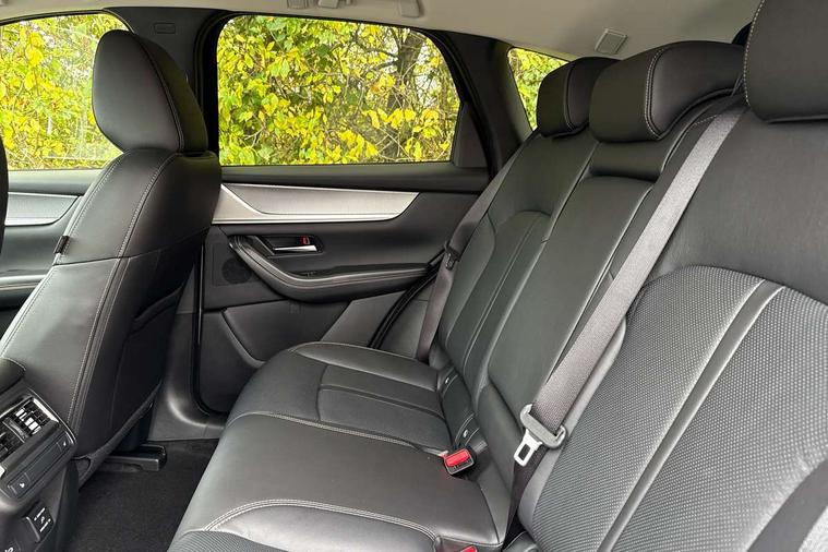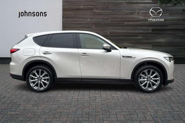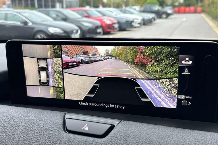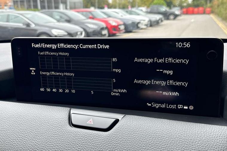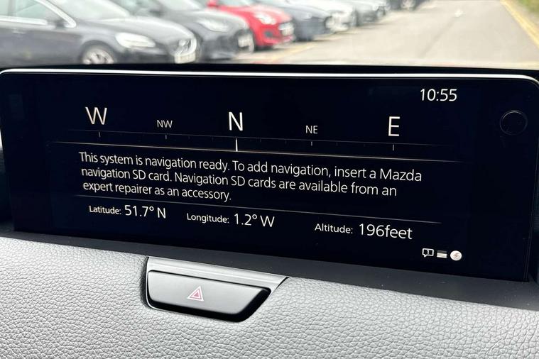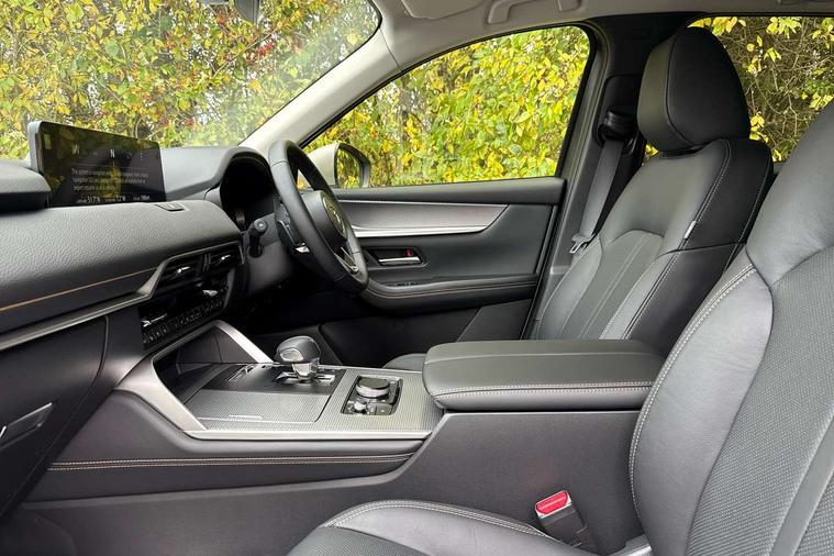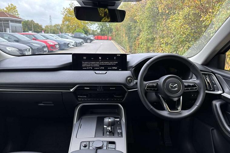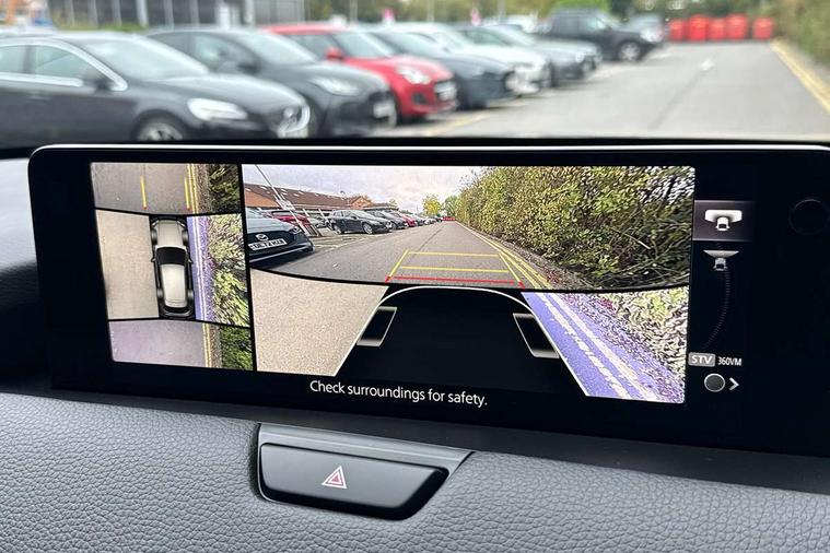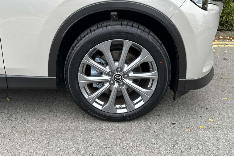 Emergency lane keeping with blind spot assist, Low washer fluid warning light, 12.3" Colour entertainment centre display with mazda connect infotainment, 12.3" TFT Colour display, Adjustable speed limiter, Blind spot assist, Blind spot monitoring with rear cross traffic alert, Cruise control, Distance alert system, Driver attention alert system, E-call with GPS, Emergency stop signalling system, Exit warning function, Front and rear parking sensors, Integrated bluetooth, Intelligent speed assist, Kinematic posture control, Lane keep assist system (LAS) with Lane departure warning system (LDWS), Mazda hybrid navigation system with european mapping, Multimedia Commander, PAS, Power lift gate with handsfree function, Power liftgate, Power start/stop button, Reversing camera with static guide lines, Speed alert, Traffic sign recognition enhanced with mandated excessive speed warning, Trip computer, Windscreen projected colour active driving display, Wireless apple car play/android Auto, Type 2 Mode 2 cable for AC charging via UK 3-pin plug, 7.2 kw On board Charger, Mi-Drive (Normal, Sport, Off-road, Towing and EV mode), Paddle shift, Type 2 Mode 3 cable for AC charging via home or public charge points, AM / FM / DAB radio with 8 speakers, Steering wheel mounted audio/bluetooth controls, USB-C inputs (x2 front and x2 rear), Auto dimming driver's door mirror, Automatic headlight levelling, B-pillar and C-pillar garnishes in gloss black finish, Body colour roof spoiler, Body coloured bumpers, Body coloured door mirrors, Chrome front side garish, Coming/leaving home lighting function, Dark plated headlight lense, Dusk sensing headlights, Electric front/rear windows with one touch auto up/down, Electrically adjustable, heated auto power folding door mirrors, Frameless auto dimming interior rear view mirror, Front kodo turn signal, Front wiper de-icer, Gloss black bar type front grille with bright finish signature wing, Headlight washers, High beam control, LED 3rd brake light, LED headlamps, LED rear signature combination lamps, Piano black window surrounds, Rain sensing front wipers with adjustable sensitivity and speed, Rear side wing doors, Rear wiper, Roof pillars and roof lining finished in lighter colour to soften the overall look, Satin black lower bumper, wheel arch and side mouldings, Signature LED daytime running lights, Silver decoration panel, 12v power outlet - front, 12V socket in boot, 3 height adjustable rear headrests, 3 seat bench in 2nd row, 40/20/40 split folding rear seats with quick levers in the boot, Cargo net, Chrome interior trim accents with steering wheel centre bezel, surround of engine start / stop button and glove box handle, Door panel trim vinyl leather with armrest, Driver and front passenger two rear grab handles with rear coat hooks, Driver and front passenger visors with covered vanity mirror and driver ticket holder, Driver seat manual slide, recline, height and seat tilt adjust, Driver, front passenger and two rear door pockets, Driver/passenger front seatback pockets, Dual zone climate control air conditioning with rear air vents, Featuring black vinyl leather dashboard trim with titanium coloured accents, Folding rear centre armrest with two cup holders, Front and rear signature illumination, Front centre storage with two cupholders, Front down lamp with front and rear foot lamps, Front headrests, Front passengers seat manual slide, recline and height adjustment, Glovebox illumination, Heated front seats with 3 stage setting, Heated leather wrapped steering wheel, ISOFIX child seat anchorage points attached on outer rear seats, Karakuri tonneau cover, Leather upholstery, Leather wrapped gear shift knob, LED illumination luggage compartment, Manual telescopic and tilt adjustment steering wheel, Practical and spacious front centre armrest storage, Rear seat recline function for rear passenger comfort, Remote fold down rear seats, Roof lining (ceiling and pillars) - Grey, Roof mounted sunglasses holder, Single front passenger seat, 3 point ELR front seat belts x2 with pretensioners, 3 point ELR rear seat belts, Active bonnet, Anti-lock braking system (ABS), Drivers knee airbag, DSC - Dynamic Stability Control, Electronic parking brake with auto disengage function and auto hold function, Front and rear curtain airbags, Front dual stage driver and single stage front passenger airbags, Front passenger airbag cut-off switch, Front side airbags, Front smart city brake support, Hill decent control, Hill launch assist, Manual rear child locks, Seatbelt reminder for driver/front passenger and rear seats, Traction control, Tyre pressure monitoring system (TPMS), Remote central locking with deadlocking and automatic door lock when driving, Smart keyless entry, Thatcham accredited alarm and immobiliser, Mesh metal film centre console panel, 18" Grey metallic alloy wheels, Emergency tyre repair kit,