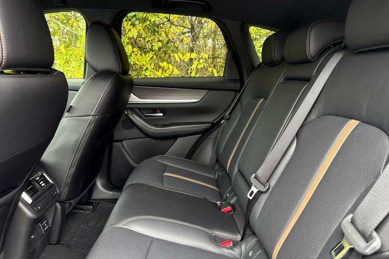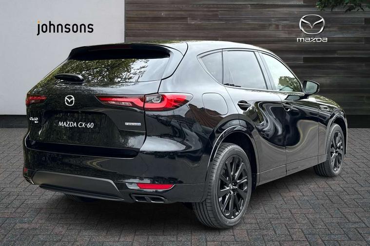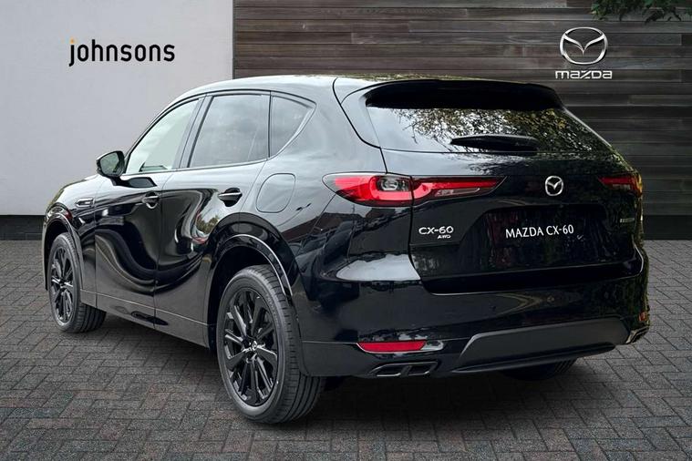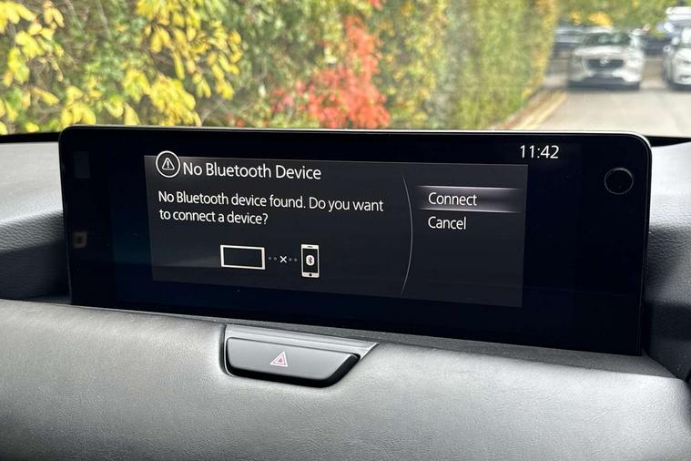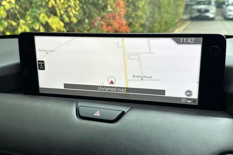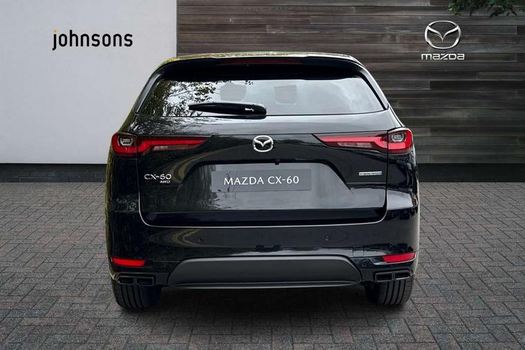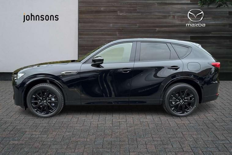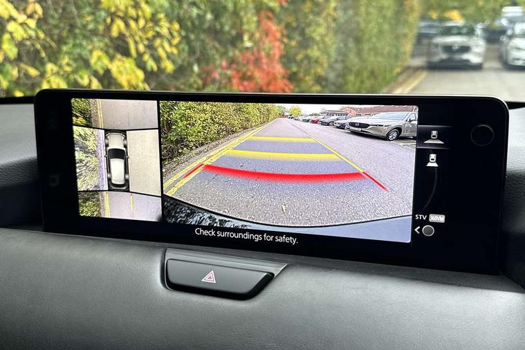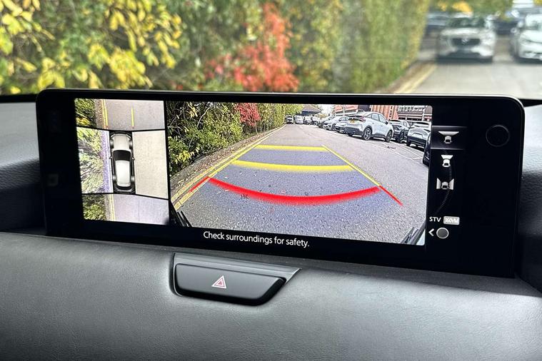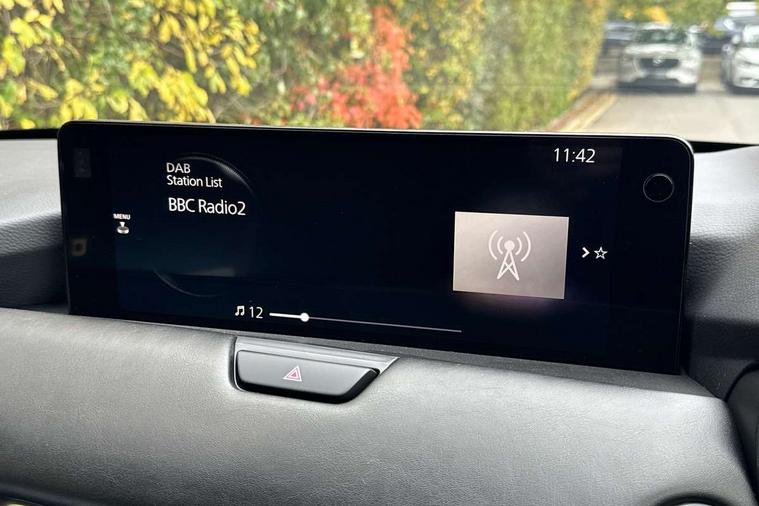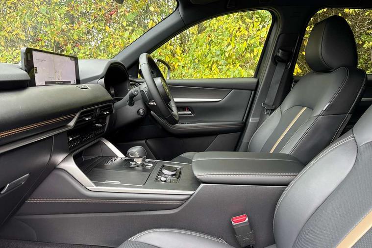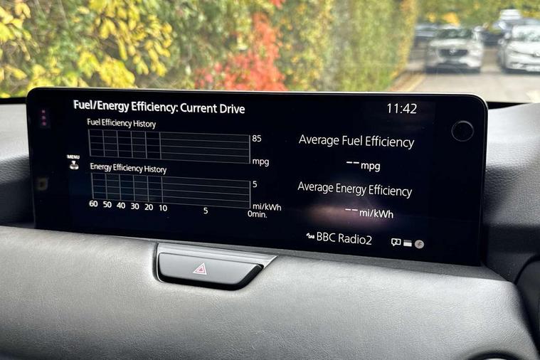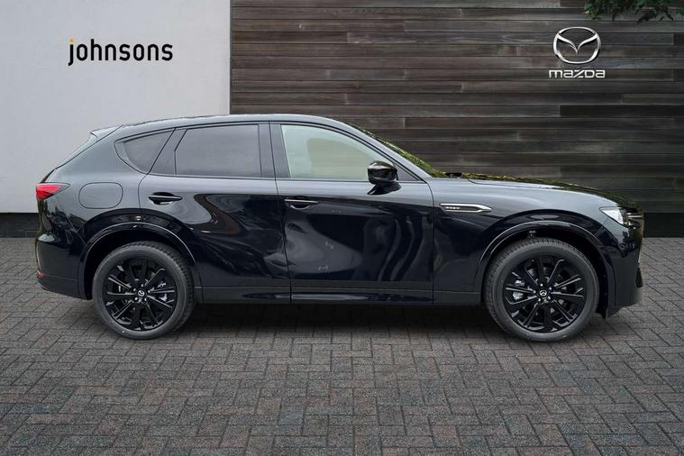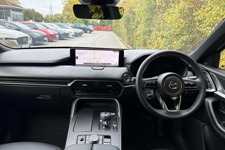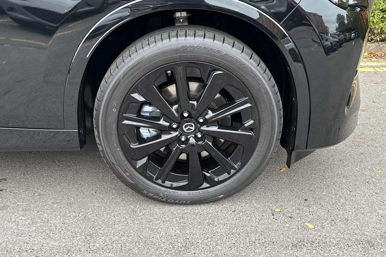 Emergency lane keeping with blind spot assist, Low washer fluid warning light, 12.3" Colour entertainment centre display with mazda connect infotainment, 12.3" TFT Colour display, Adjustable speed limiter, Blind spot assist, Blind spot monitoring with rear cross traffic alert, Cruise control, Distance alert system, Driver attention alert system, Driver Monitoring with personal identification, E-call with GPS, Emergency stop signalling system, Exit warning function, Front and rear parking sensors, Ingress / Egress support and automatic driver position guide, Integrated bluetooth, Intelligent speed assist, Kinematic posture control, Lane keep assist system (LAS) with Lane departure warning system (LDWS), Mazda Driver Personalisation System, Mazda hybrid navigation system with european mapping, Multimedia Commander, PAS, Power lift gate with handsfree function, Power start/stop button, Reversing camera with static guide lines, Speed alert, Traffic sign recognition enhanced with mandated excessive speed warning, Trip computer, Windscreen projected colour active driving display, Wireless apple car play/android Auto, Type 2 Mode 2 cable for AC charging via UK 3-pin plug, 7.2 kw On board Charger, Mi-Drive (Normal, Sport, Off-road, Towing and EV mode), Paddle shift, Type 2 Mode 3 cable for AC charging via home or public charge points, AM/FM and DAB radio, Bose surround sound system with 12 Speaker, Bose center point, Bass match and audio pilot technology, Steering wheel mounted audio/bluetooth controls, USB-C inputs (x2 front and x2 rear), Auto dimming driver's door mirror, Automatic headlight levelling, B-pillar and C-pillar garnishes in gloss black finish, Body colour roof spoiler, Body coloured bumpers, Body coloured lower bumper, wheel arch and side mouldings, Coming/leaving home lighting function, Dark plated headlight lense, Dark plating finish signature wing in front grille, Dark plating front side garnish, Differentiated front bumper design to accentuate the intake, Dusk sensing headlights, Electric front/rear windows with one touch auto up/down, Electrically adjustable, heated auto power folding door mirrors with memory, Frameless auto dimming interior rear view mirror, Front kodo turn signal, Front wiper de-icer, Gloss black door mirrors, Headlight washers, High beam control, Honeycomb radiator grille in piano black, LED 3rd brake light, LED headlamps, LED rear signature combination lamps, Rain sensing front wipers with adjustable sensitivity and speed, Rear side wing doors, Rear wiper, Roof pillars and roof lining finished in lighter colour to soften the overall look, Signature LED daytime running lights, Silver decoration panel, 12v power outlet - front, 12V socket in boot, 3 height adjustable rear headrests, 3 seat bench in 2nd row, 40/20/40 split folding rear seats with quick levers in the boot, Ambient lighting, Cargo net, Chrome interior trim accents with steering wheel centre bezel, surround of engine start / stop button and glove box handle, Door panel trim vinyl leather with armrest, Driver and front passenger two rear grab handles with rear coat hooks, Driver and front passenger visors with covered vanity mirror and driver ticket holder, Driver seat electric tilt, slide, recline, height and lumbar adjustment, Driver, front passenger and two rear door pockets, Driver/passenger front seatback pockets, Dual zone climate control air conditioning with rear air vents, Electric telescopic and tilt adjustment steering wheel, Featuring black vinyl leather dashboard trim with titanium coloured accents, Folding rear centre armrest with two cup holders, Front centre storage with two cupholders, Front down lamp with front and rear foot lamps, Front headrests, Front passengers seat electric slide, recline, height and lumbar adjustment, Front seat ventilation with 3-stage setting, Glovebox illumination, Heated front seats with 3 stage setting, Heated leather wrapped steering wheel, Heated outer rear seats with 3-stage setting, ISOFIX child seat anchorage points attached on outer rear seats, Karakuri tonneau cover, Leather wrapped gear shift knob, LED illumination luggage compartment, Nappa leather upholstery, Practical and spacious front centre armrest storage, Rear seat recline function for rear passenger comfort, Remote fold down rear seats, Roof lining (ceiling and pillars) - Black, Roof mounted sunglasses holder, Single front passenger seat, 3 point ELR front seat belts x2 with pretensioners, 3 point ELR rear seat belts, Active bonnet, Anti-lock braking system (ABS), Drivers knee airbag, DSC - Dynamic Stability Control, Electronic parking brake with auto disengage function and auto hold function, Front and rear curtain airbags, Front dual stage driver and single stage front passenger airbags, Front passenger airbag cut-off switch, Front side airbags, Front smart city brake support, Hill decent control, Hill launch assist, Manual rear child locks, Seatbelt reminder for driver/front passenger and rear seats, Traction control, Tyre pressure monitoring system (TPMS), Remote central locking with deadlocking and automatic door lock when driving, Smart keyless entry, Thatcham accredited alarm and immobiliser, Mesh metal film centre console panel, 20" Black metallic alloy wheels, Emergency tyre repair kit,