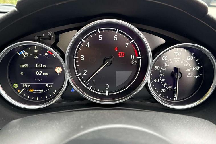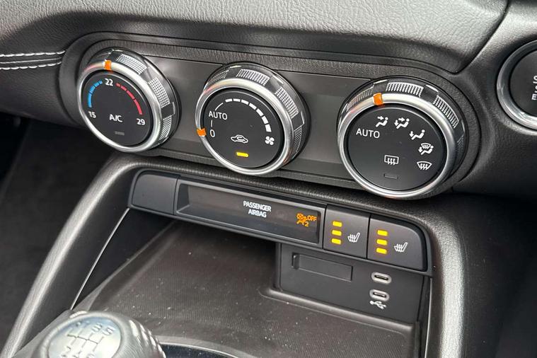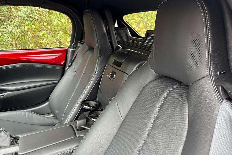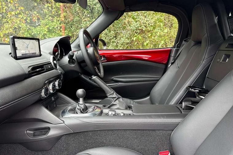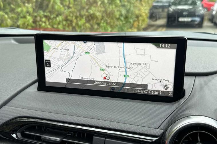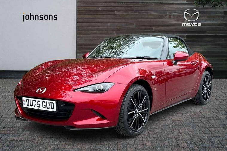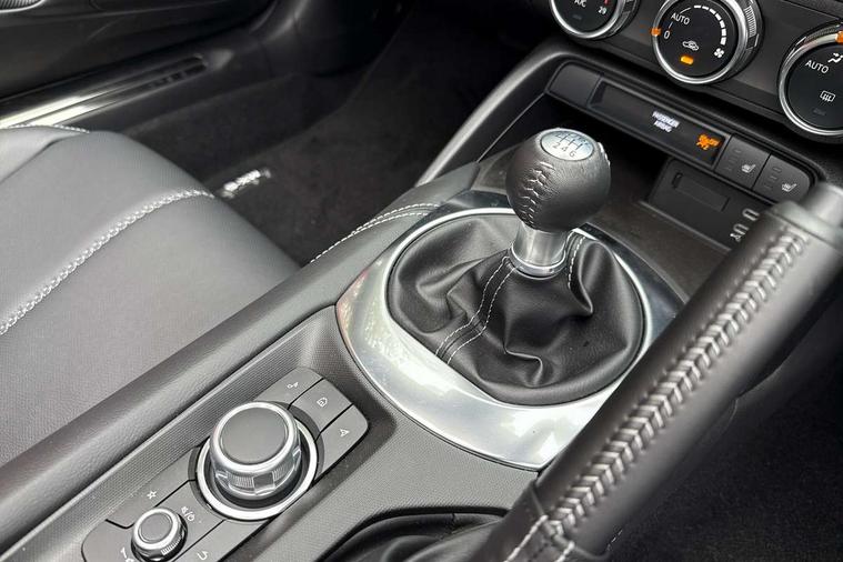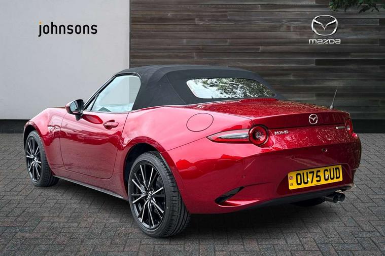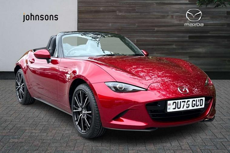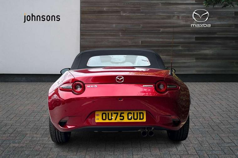 8.8" Colour centre touch screen display with Mazda Connect infotainment, Aha and stitcher app, Analogue speedometer, Apple car play/Android Auto, Blind spot monitoring with rear cross traffic alert, Cruise control with Intelligent speed assist, Driver alert system, eCall emergency call system, Emergency stop signalling system, Engine start/stop button, Hands free phone preparation, Integrated bluetooth with hands-free calling, bluetooth audio and easy access to phone contacts, Integrated navigation system, Kinematic posture control, Lane departure warning system, Lane keep assist, Multi dot display tachometer and electric odometer, PAS, Rear parking sensor, Reversing camera, Service indicator, Traffic sign recognition, Trip computer, Water temperature gauge, Asymmetric limited slip differential, I-ELOOP, i-stop, Sports suspension featuring Bilstein dampers, 2 x USB Type-C inputs, Multimedia Commander including separate volume dial, Premium Bose sound system with 9 speakers with 2 in each front headrest, AM/FM/DAB radio and MP3, Steering wheel mounted audio/bluetooth controls, Adaptive LED Headlights, Automatic headlamp levelling, Black scuff plates with stainless steel insert, Body colour bumpers, Body colour co ordinated interior upper door trim, Body coloured electric/heated door mirrors, Coming/leaving home lighting function, Dual exhaust pipes, Dusk sensitive headlamps, Electric front windows/one touch facility, Exterior body colour co ordinated upper door panel trim with black vinyl and silver stitching, Frameless auto dimming rear view mirror, Front intermittent wipers, LED 3rd brake light, LED daytime running lights, LED indicator lights, LED rear lights, Manually operated black premium cloth soft top with heated rear glass window, Piano Black fashion bars, Rain sensing front wipers, Rear boot, 12V socket, Centre console storage box, Chrome Air conditioning dials, Climate control air conditioning, Coin Box, Driver and front passenger sunvisors with covered vanity mirror and driver ticket holder, Driver seat manual slide, recline and tilt adjustment, Front centre armrest, Front head restraints, Gear shift indicator, Heated front seats, in 3 heat levels, Interior courtesy light, ISOFIX front passenger seat child seat compliance, Leather gear knob, Leather handbrake lever, Leather steering wheel, Lockable rear centre box with lid, Passenger seat + manual slide/recline adjust, Perforated leather upholstery, Single front passenger seat, Strut brace, Tilt/telescopic steering column, Two cupholders, Windblocker, 3 point ELR front seatbelts with pretensioners, ABS+Electronic Brake force Distribution, Deployable Hood System (DHS), Driver and passenger seatbelt reminder audible warning, Dynamic stability control with track mode, Exit warning, Front dual stage driver and single stage front passenger airbags, Front smart city brake support with autonomous emergency braking (SCBS), Hill hold assist, Passenger airbag deactivate switch, Side airbags, Smart city brake support - Rear (SCBS-R), Traction control, Tyre pressure monitor, Remote central locking with deadlocking and remote boot release, Smart keyless entry, Superlocking, Thatcham category 1 alarm + immobiliser, Centre Console - Vinyl leather, Chrome air vent surrounds, Dashboard panel - Black Vinyl, 17" Black machined alloy wheels, Tyre puncture repair kit,