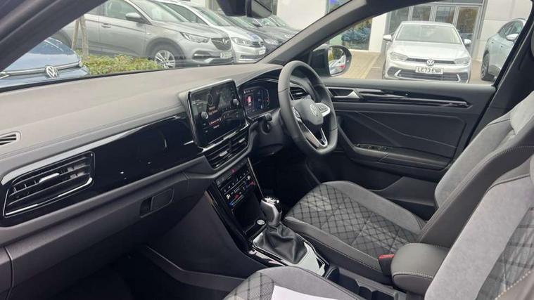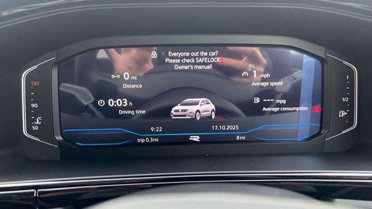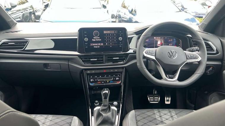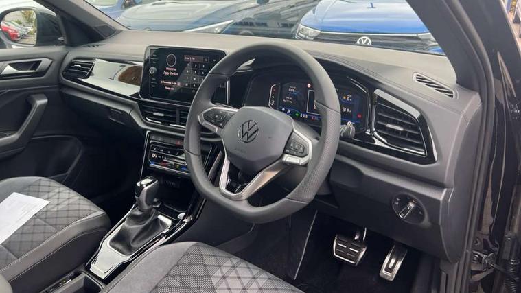 10.25" Digital cockpit pro, Advanced driver attention and drowsiness monitor, Emergency call service, Lane keeping system Lane Assist, Mobile phone interface, Modified key software - reduce switch off time for key status change to Long no motion, Online services, Park assist including front and rear parking sensors, Power assisted speed sensitive steering, Service interval indicator, Tailgate/trunk lid release from outside, Think blue trainer driver tips and journey analysis, Warning sound and light for front seatbelts unfastened, Wireless app connect, Battery regeneration during braking, Rear shock absorption chassis with increased ride height, Start/stop function with battery regeneration, DAB Digital radio, Diversity antenna for FM reception, Front and rear 6 speakers, Music playback - MP3, WMA and AAC files, Premium USB cable in choice of either Apple or Android smartphone compatibility, SD card slot, Simultaneous pairing of 2 compatible mobile devices, Title and cover art display, We Connect and We Connect Plus functionality, Auto dimming interior rear view mirror, Automatic hazard lights activation under emergency braking, Automatic headlight control with LED separate daytime running lights with coming/leaving home function, Dynamic cornering light, Electrically adjustable and heated door mirrors, Extended roof spoiler, Exterior mirrors aspherical on driver side, convex on front passenger side, External USB type C socket and charging sockets, Front windscreen wiper with intermittent wipe and 4 position delay, Heated rear window, Illuminated front grille, IQ LED matrix headlights, LED 3rd brake light, LED rear number plate lights, LED rear tail lights with dynamic turn signal, Light mode for poor weather, rain, fog or snow, Power windows with comfort operation and circuit breaker, R-Line design body coloured bumpers, Rain sensor, Rear exhaust tailpipe, Rear fog light on one side and reversing lights on both sides, Rear side wing doors, Rear wash/wipe with intermittent wipe setting, Remote electrically foldable door mirrors, puddle lights and reverse activated passenger's door mirror, 12V power socket in centre console, 3 rear head restraints, 3 seat bench in 2nd row, 4 load lashing points in luggage compartment, Air care climatronic air conditoning system with active combination filter and 2-zone temperature control, Artvelours cloth upholstery, Black roof lining, Chrome plated radiator grille inserts, air vent surrounds and light switch surrounds, Door and side trim panel with leatherette insert, Drawer under drivers seat, Driver seat height adjust, Driver's seat lumbar support, Front + rear carpet mats, Front centre armrest, Front comfort sports seats, Front cupholders x 2, Front footwell illumination, Front reading light, Front scuff plates with R Line logo, Front seat back storage pockets, Glove compartment door with light, Instrument lighting, white adjustable panel illumination, Interior ambient lighting and surround lighting, Interior light delay, Isofix child seat preparation, Leather gearshift handle, Leather wrapped multifunction steering wheel with paddle shift, Load-through provision with cup holder when folded down ('Unsplit rear seat bench, split folding backrest, with centre armrest), Luggage compartment lighting, Non-folding front passenger seat backrest, Passenger seat height adjuster, Passenger seat lumbar support, Single front passenger seat, Stainless steel pedals, Storage compartment in left and right luggage area, Storage compartment in rear doors, Storage compartments in driver and front passenger doors, Sunvisors with illuminated vanity mirrors, Variable boot floor, height adjustable and removable, Winter pack without heated windscreen washer jets - T-Roc, 3 point height adj front seatbelts + pretensioners, 3 point seatbelts in outer rear with ECE label, ABS, Child locks on rear doors, City emergency braking and pedestrian monitoring, Driver and front passenger airbag with front passenger airbag deactivation, Driver and front passenger safety-optimised head restraints, Drivers seatbelt reminder, Electronic parking brake, Electronic Stability Control (ESC) inc EDL (Electronic Differential Lock) and ASR (Traction Control), Front and rear passengers curtain airbag system including front side airbags, Front disc brakes, Hill start assist, Predictive pedestrian protection, Rear disc brakes, Two tone horn, Tyre pressure loss indicator, Volkswagen roadside assistance, Tool kit, Trims for alloy wheels, Tyre mobility kit including compressor and sealing foam,